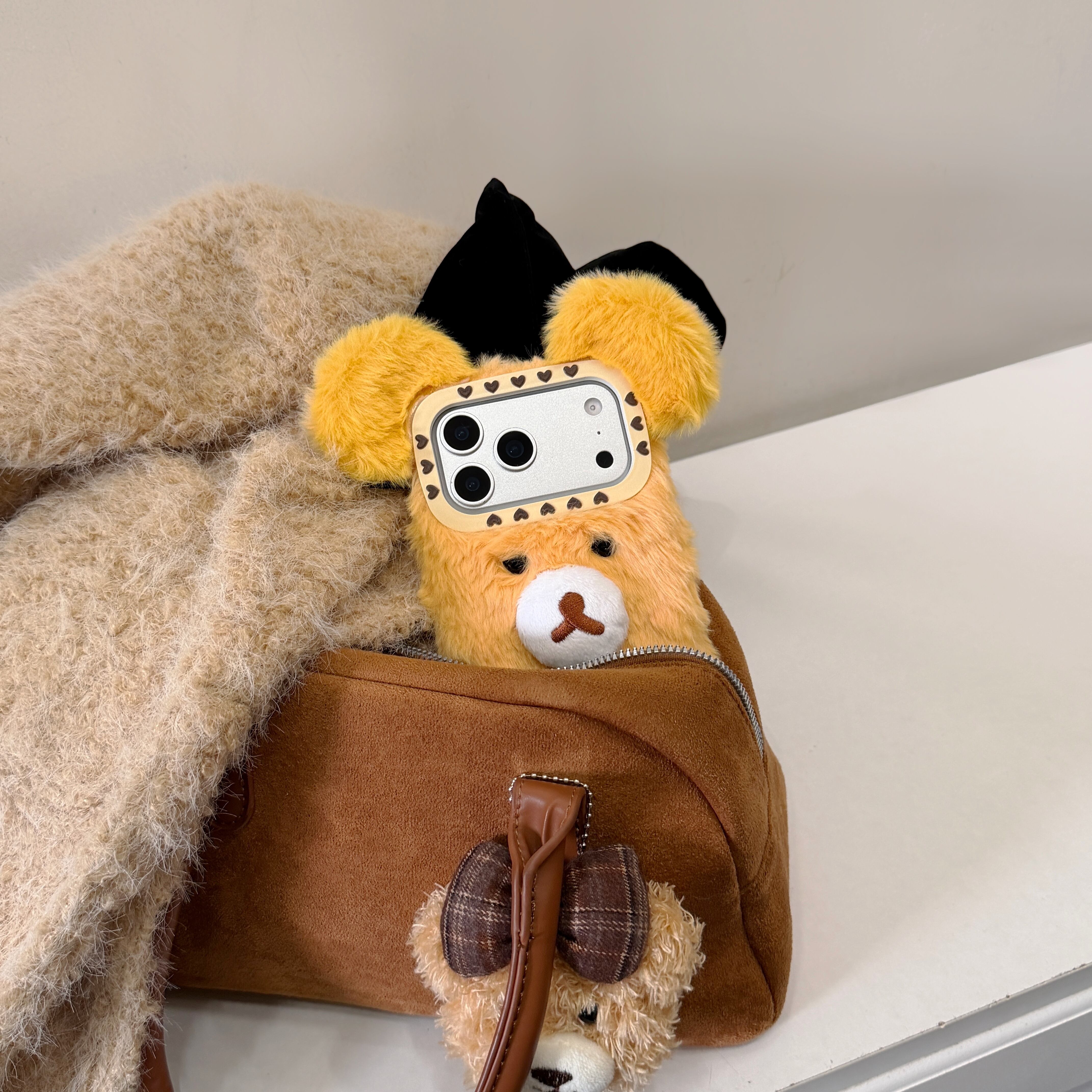 もこもこ 悲しいくま iPhone 17 16 15 14 ケース かわいい ベア ふわふわ スマホケース