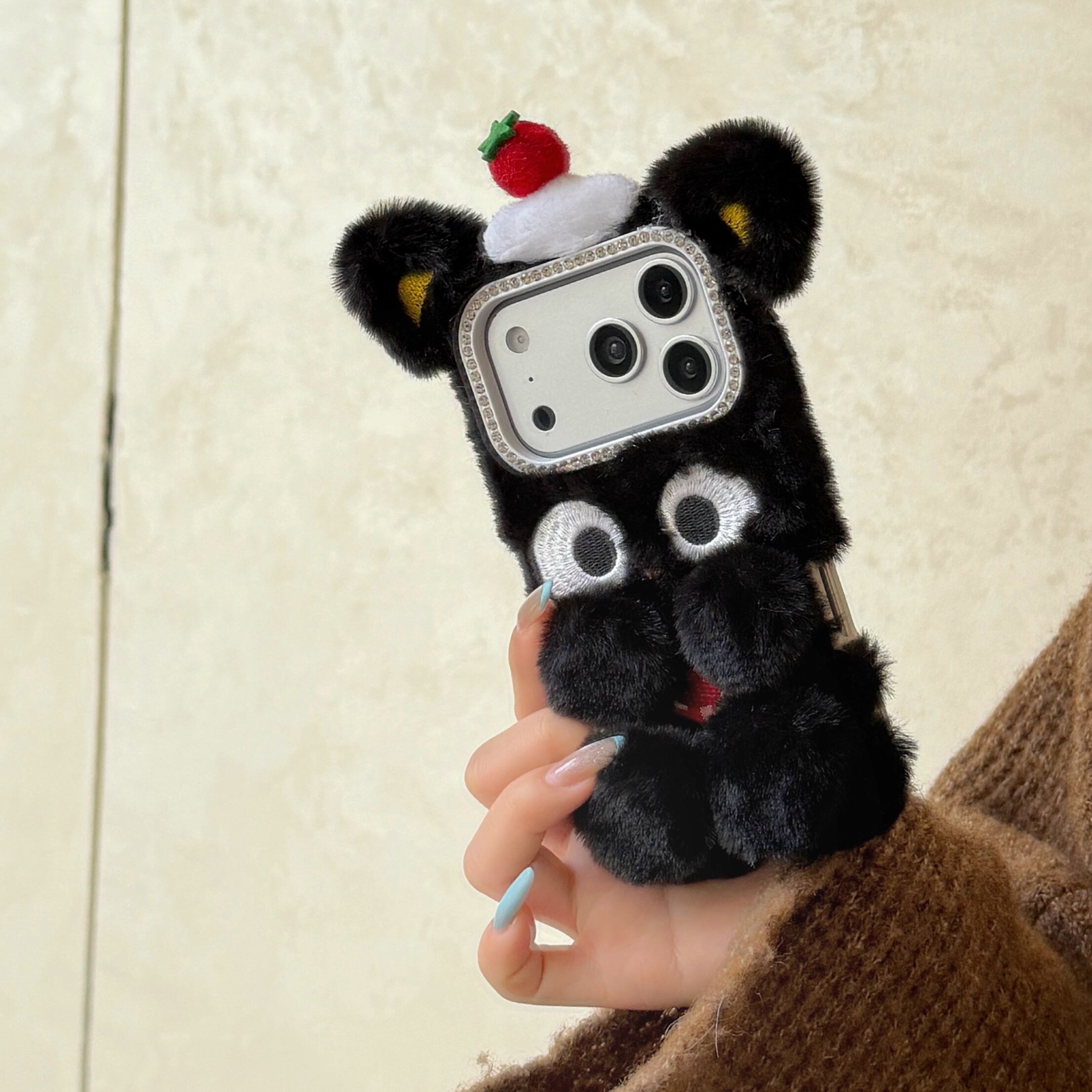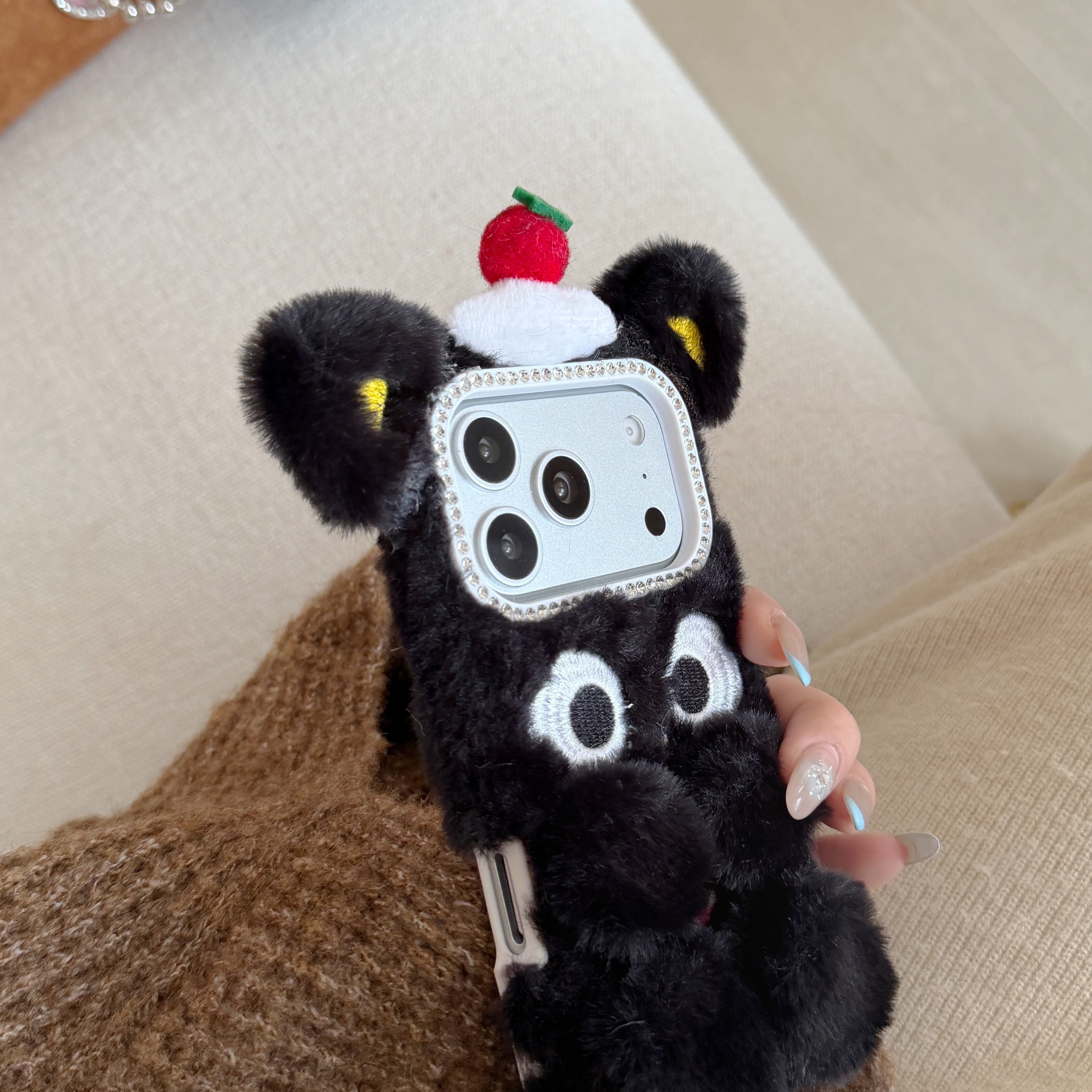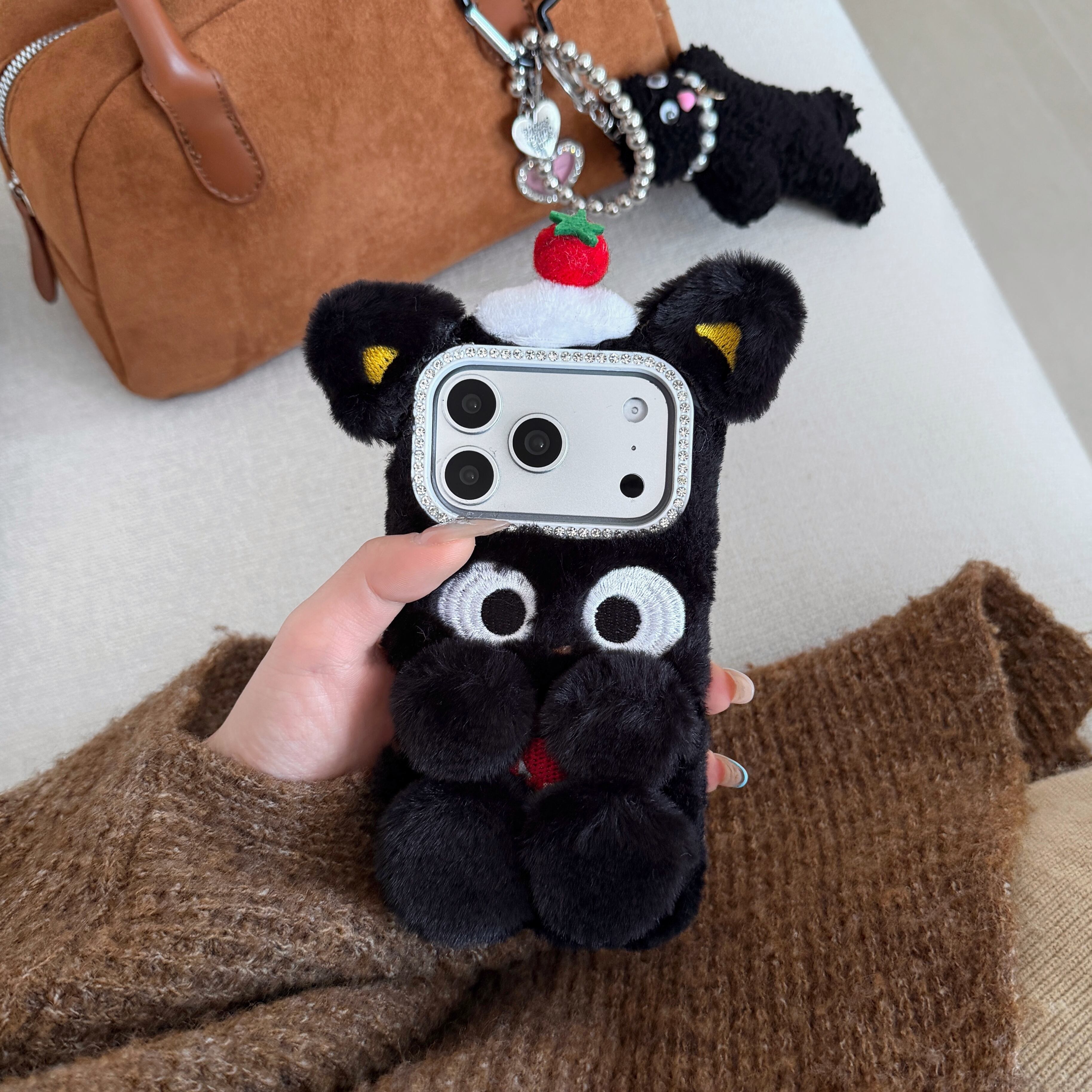 もこもこ 黒い犬 iPhone 17 16 15 14 ケース かわいい ワンちゃん ふわふわ スマホケース
