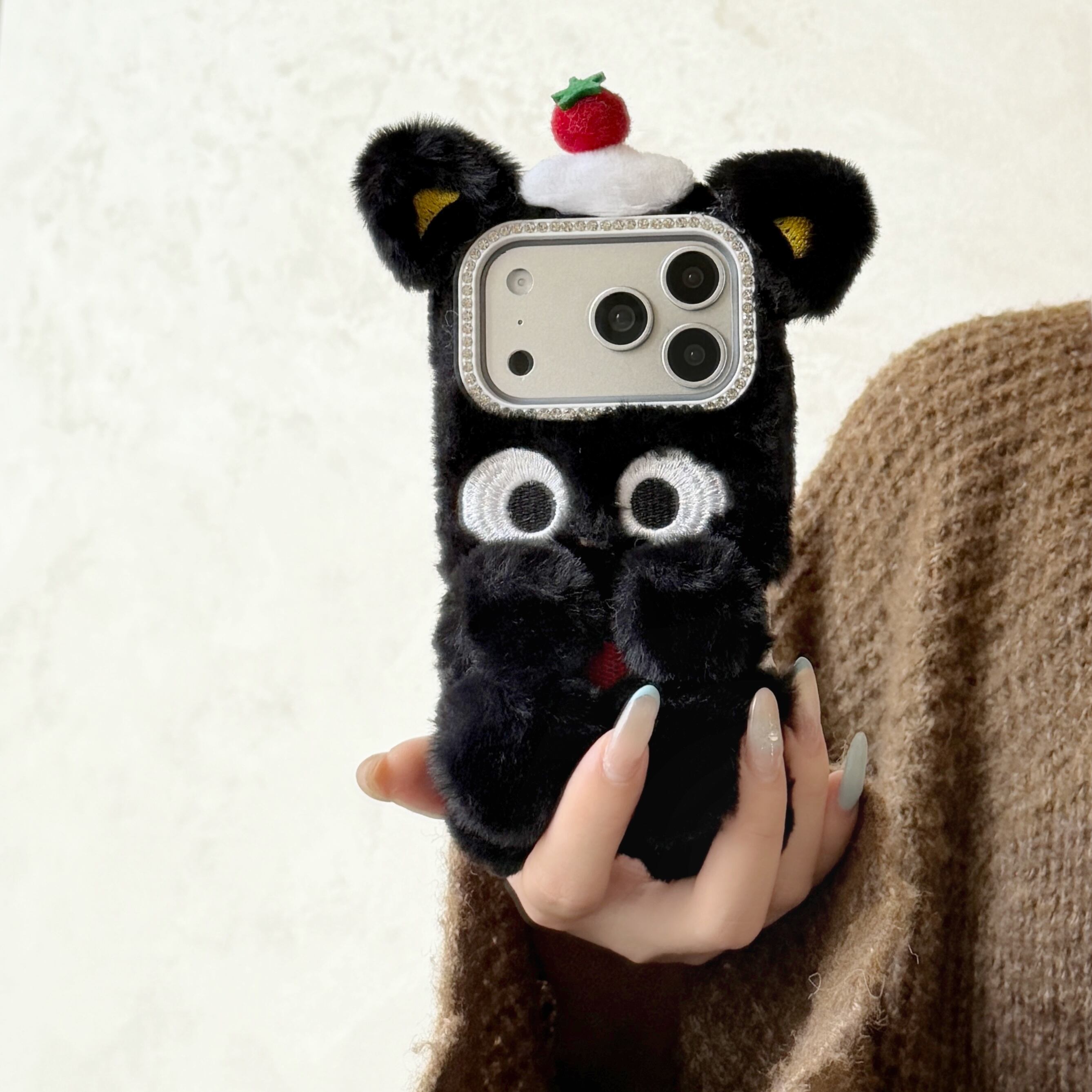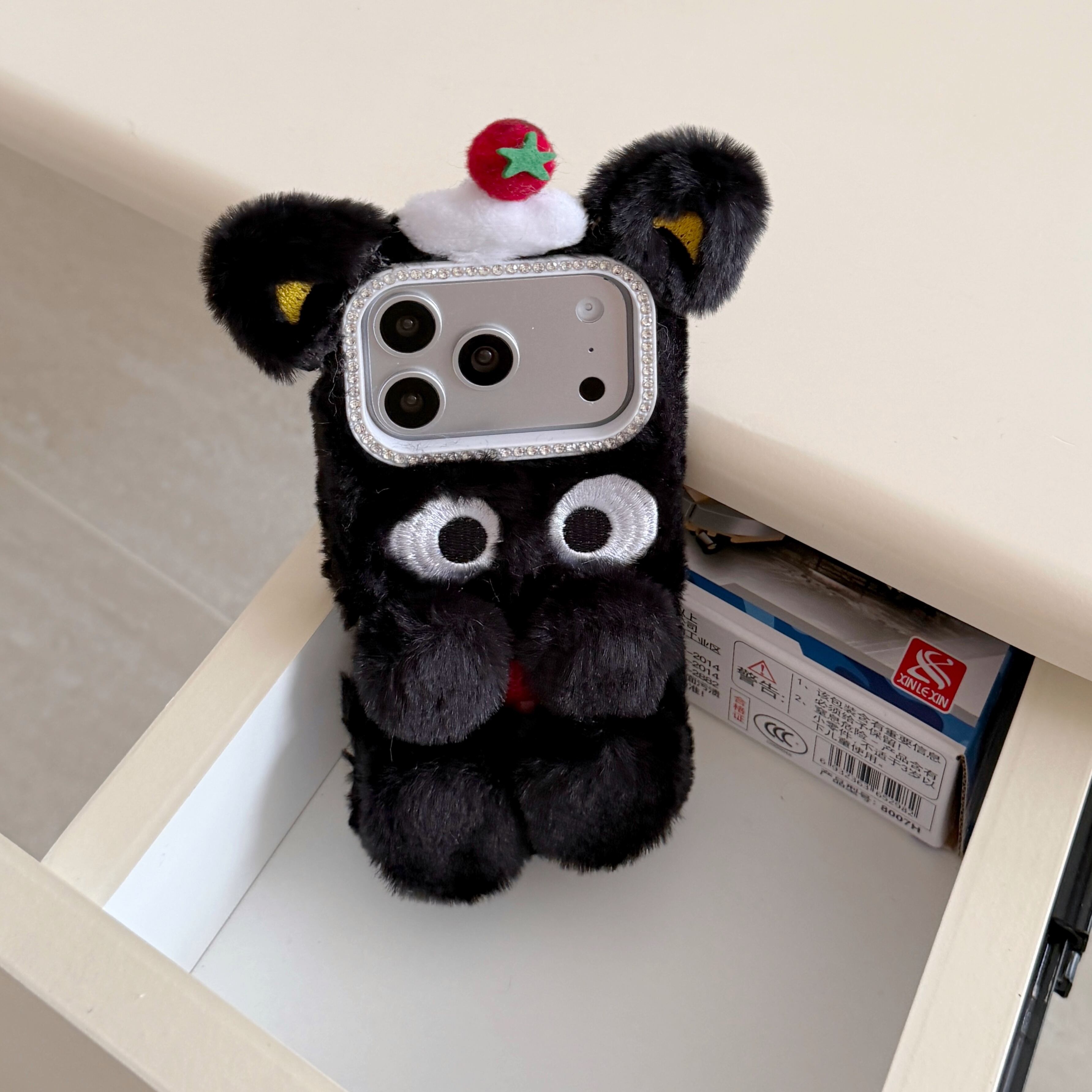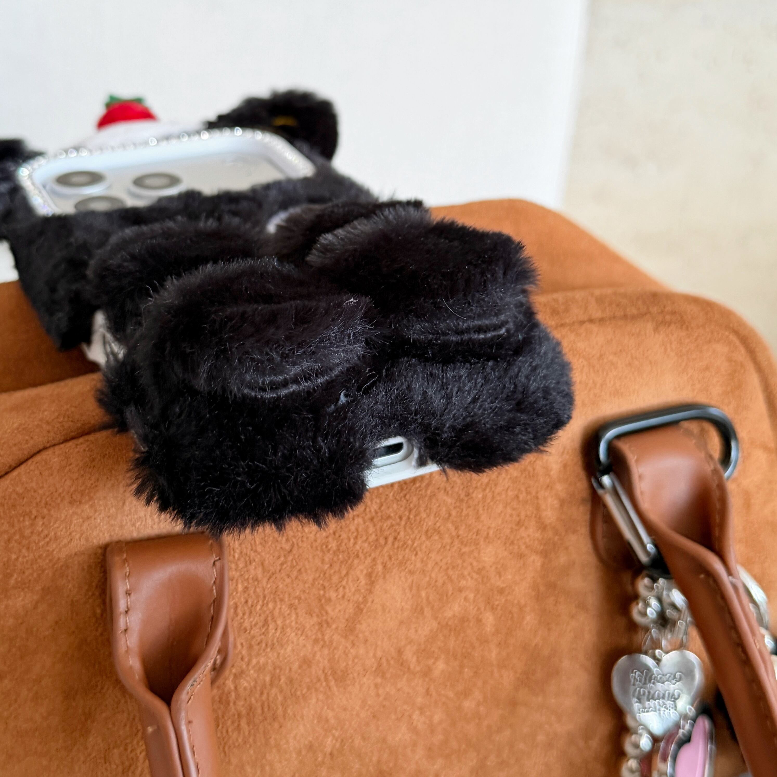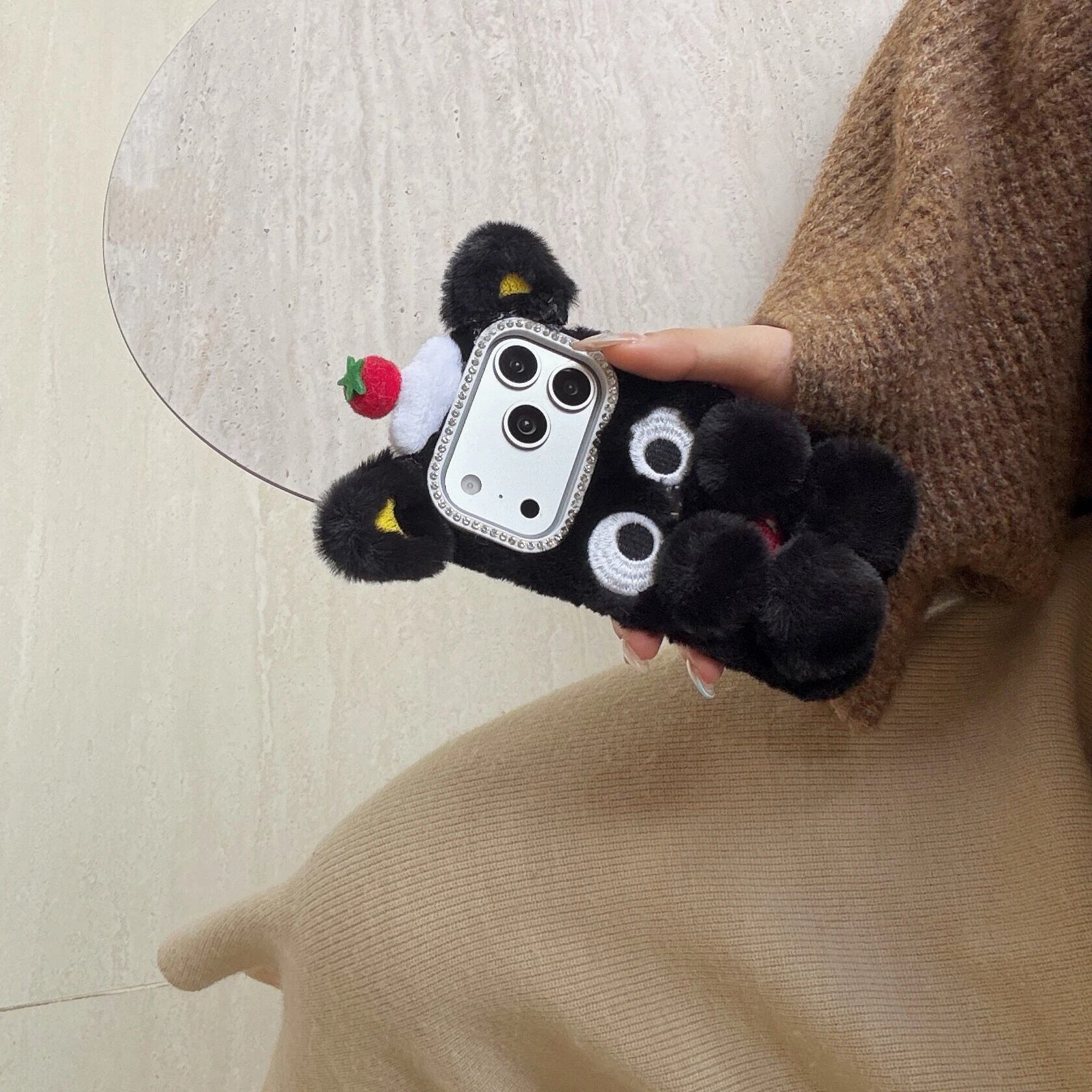 もこもこ 黒い犬 iPhone 17 16 15 14 ケース かわいい ワンちゃん ふわふわ スマホケース