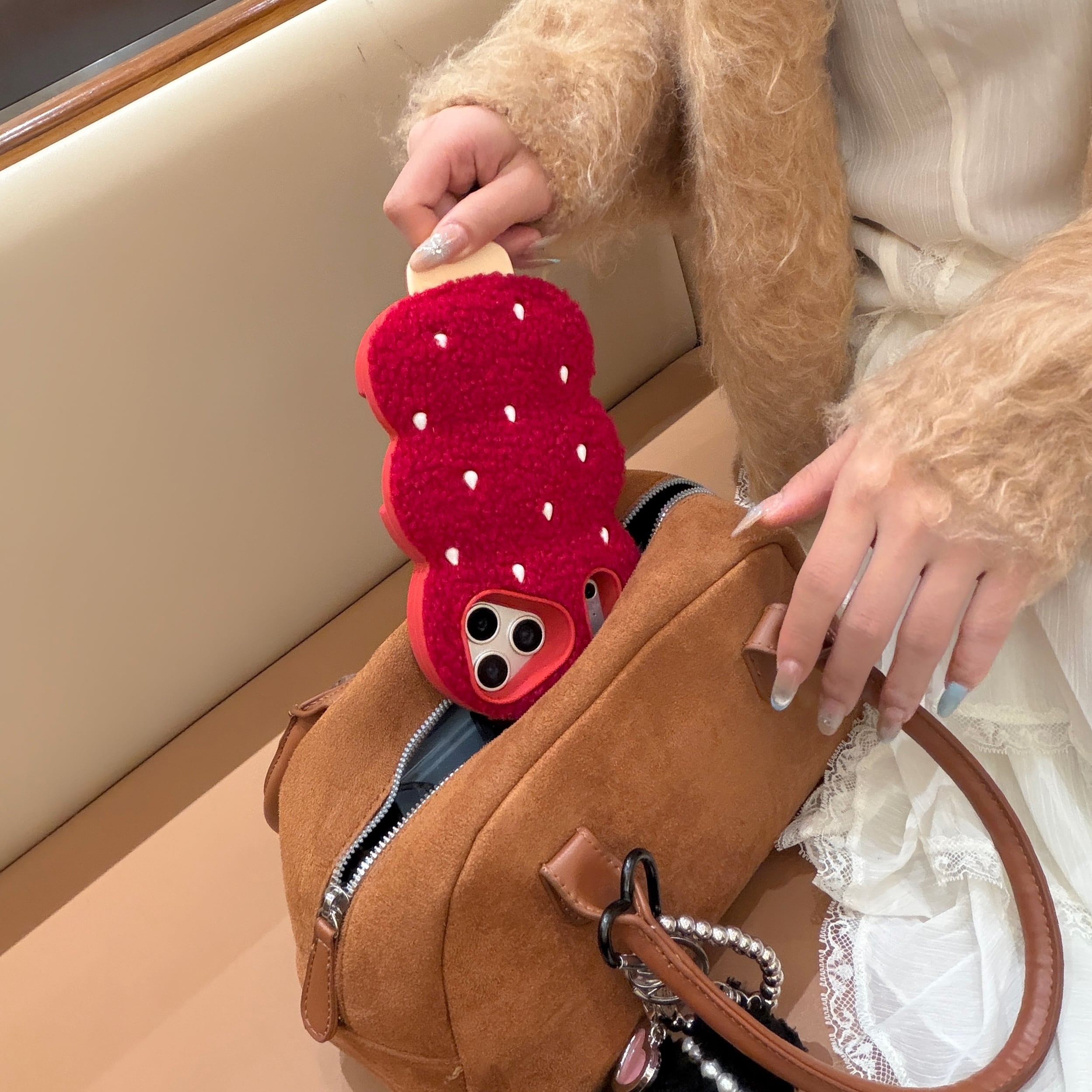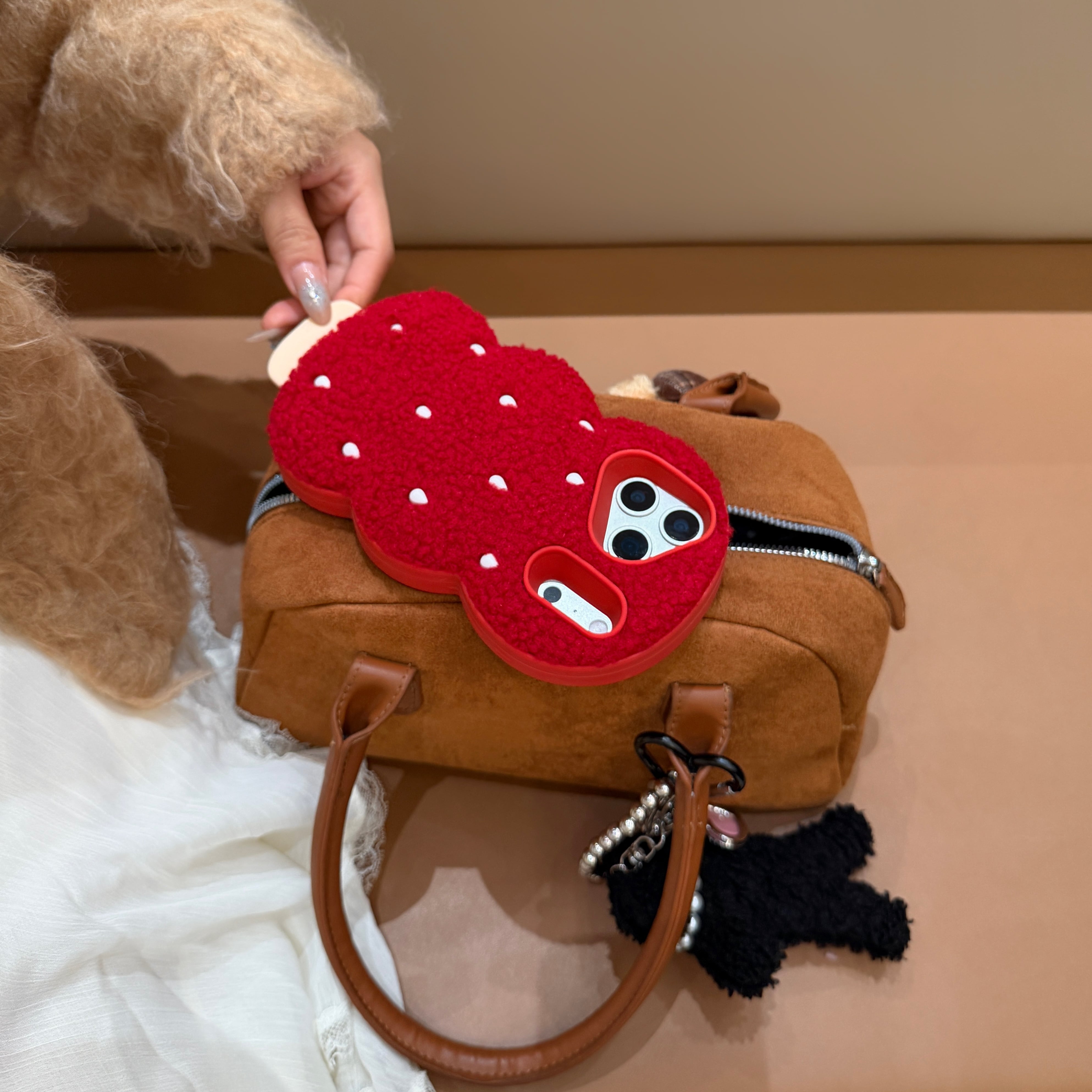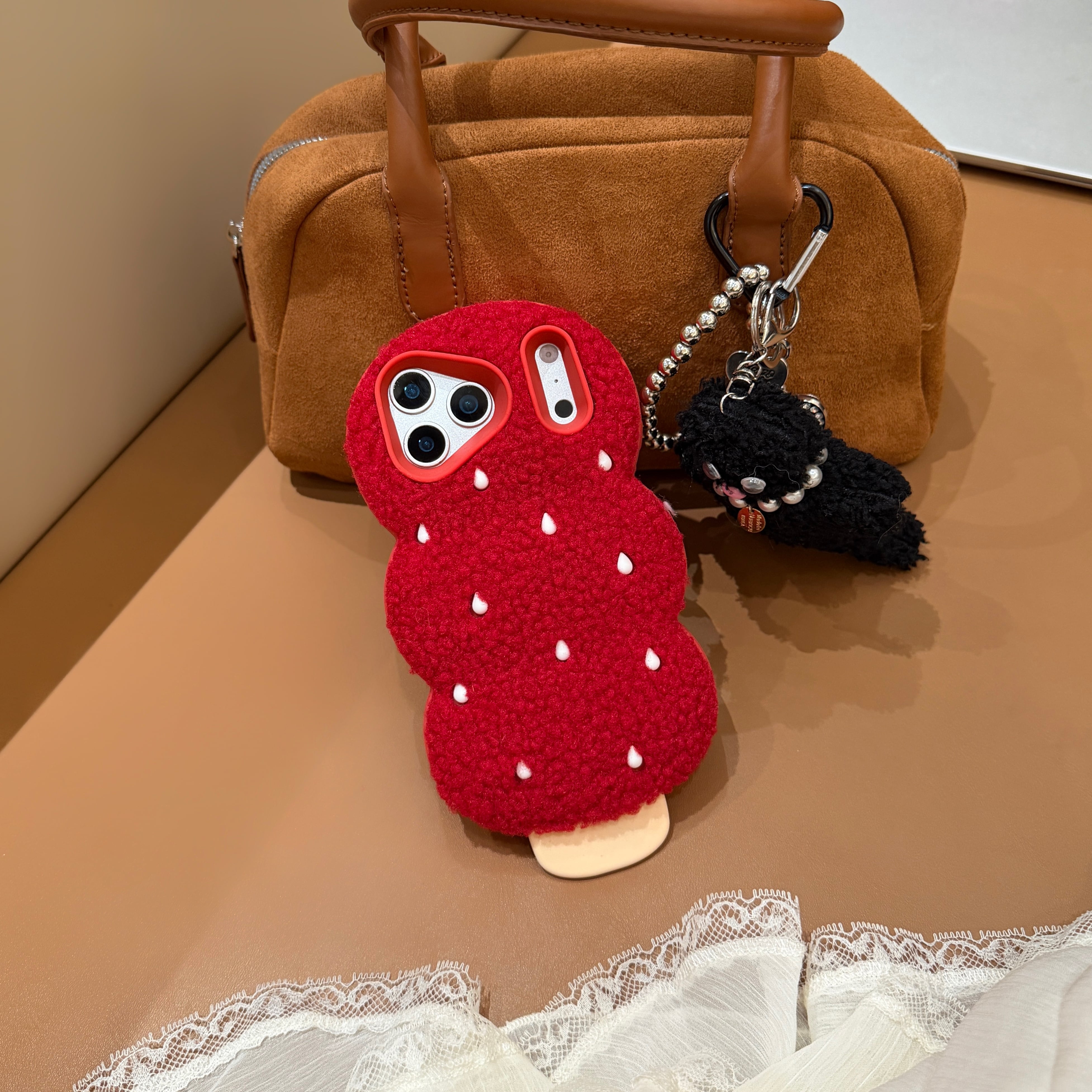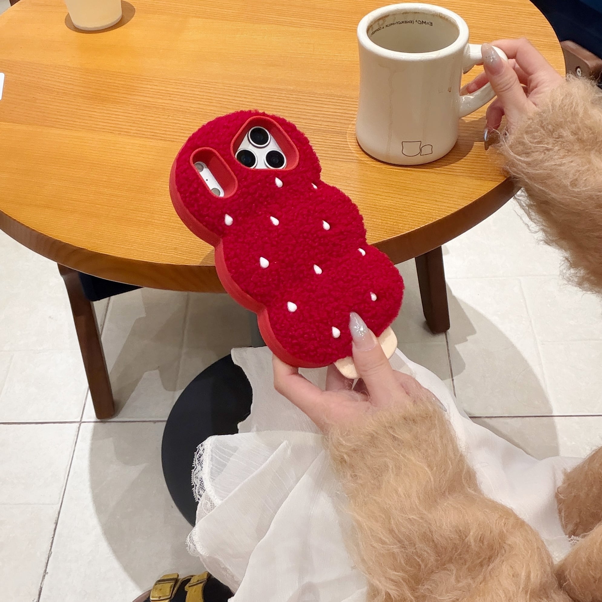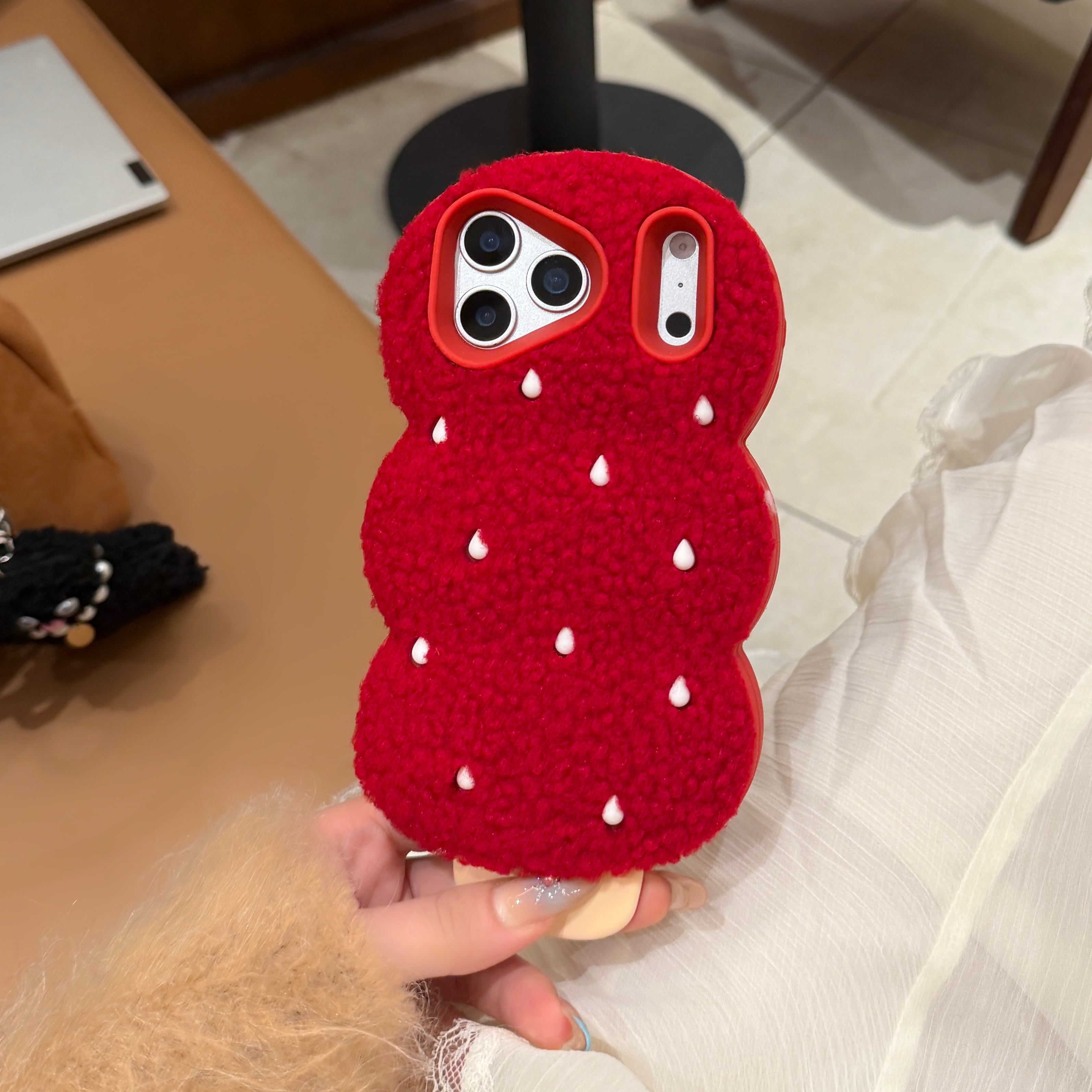 ユニークなもこもこだんごデザインのiPhoneケース。