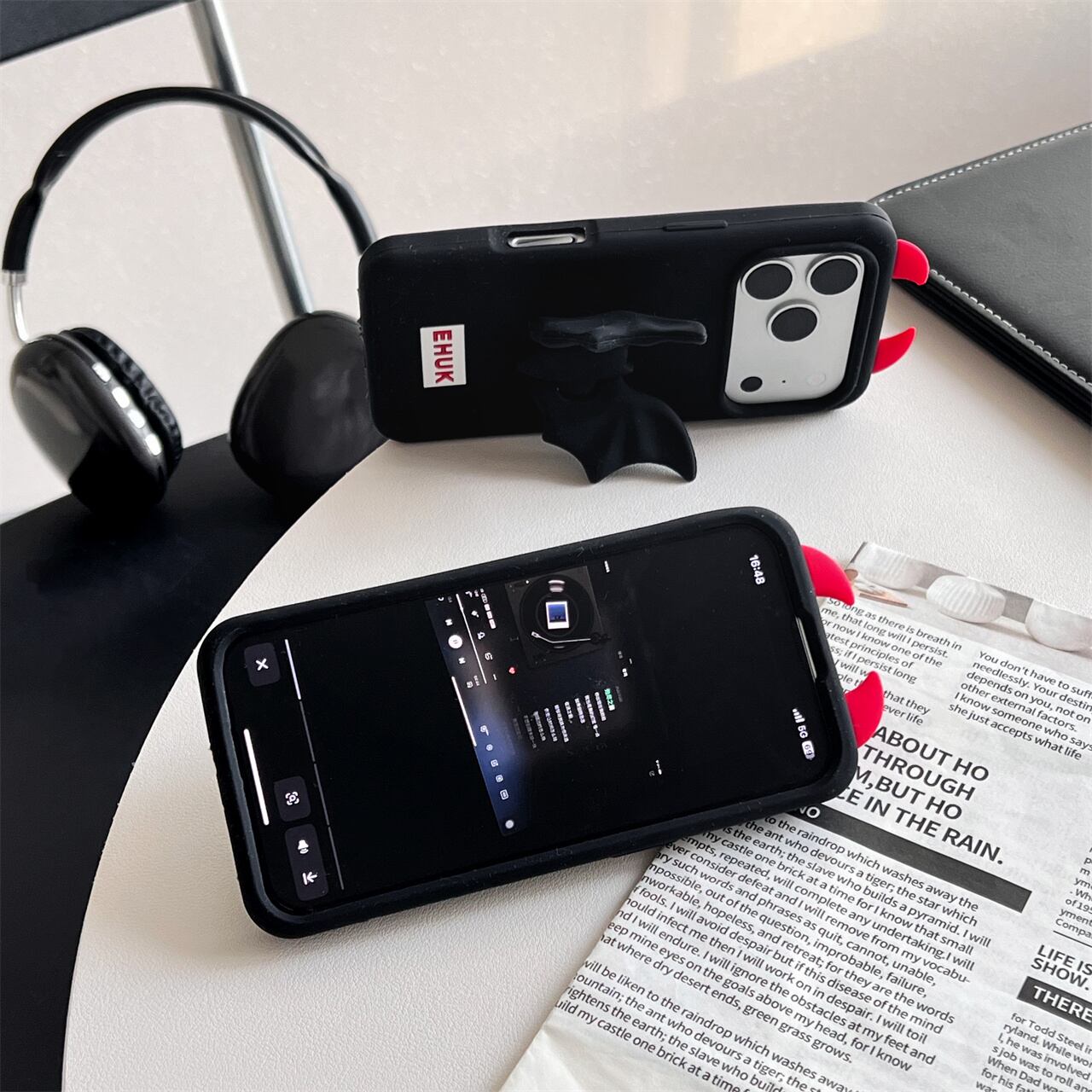 バットの翼 iPhone 17 16 15 14 13 ケース 可愛い 立体 コウモリ シリコン スタンド機能 耐衝撃 スマホケース