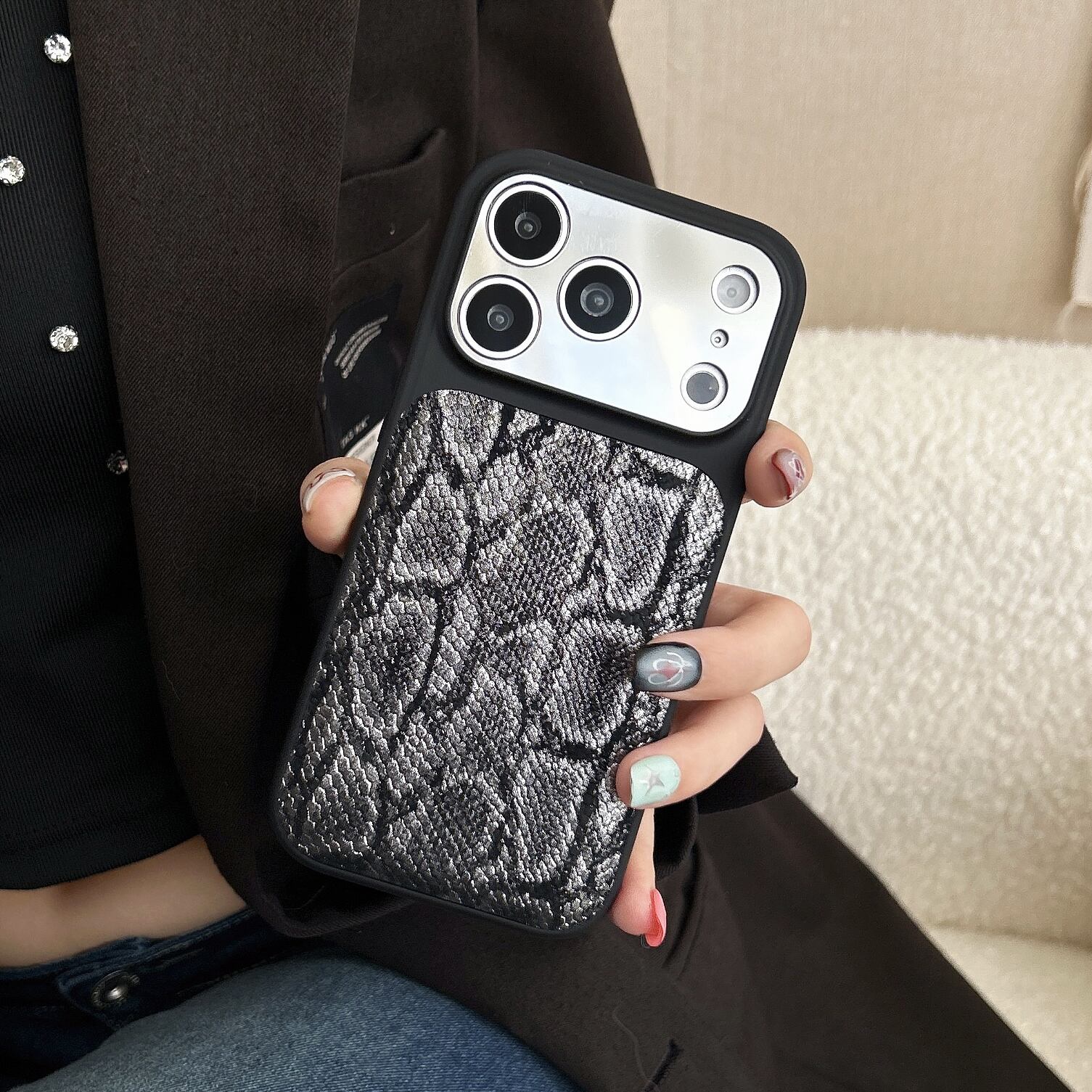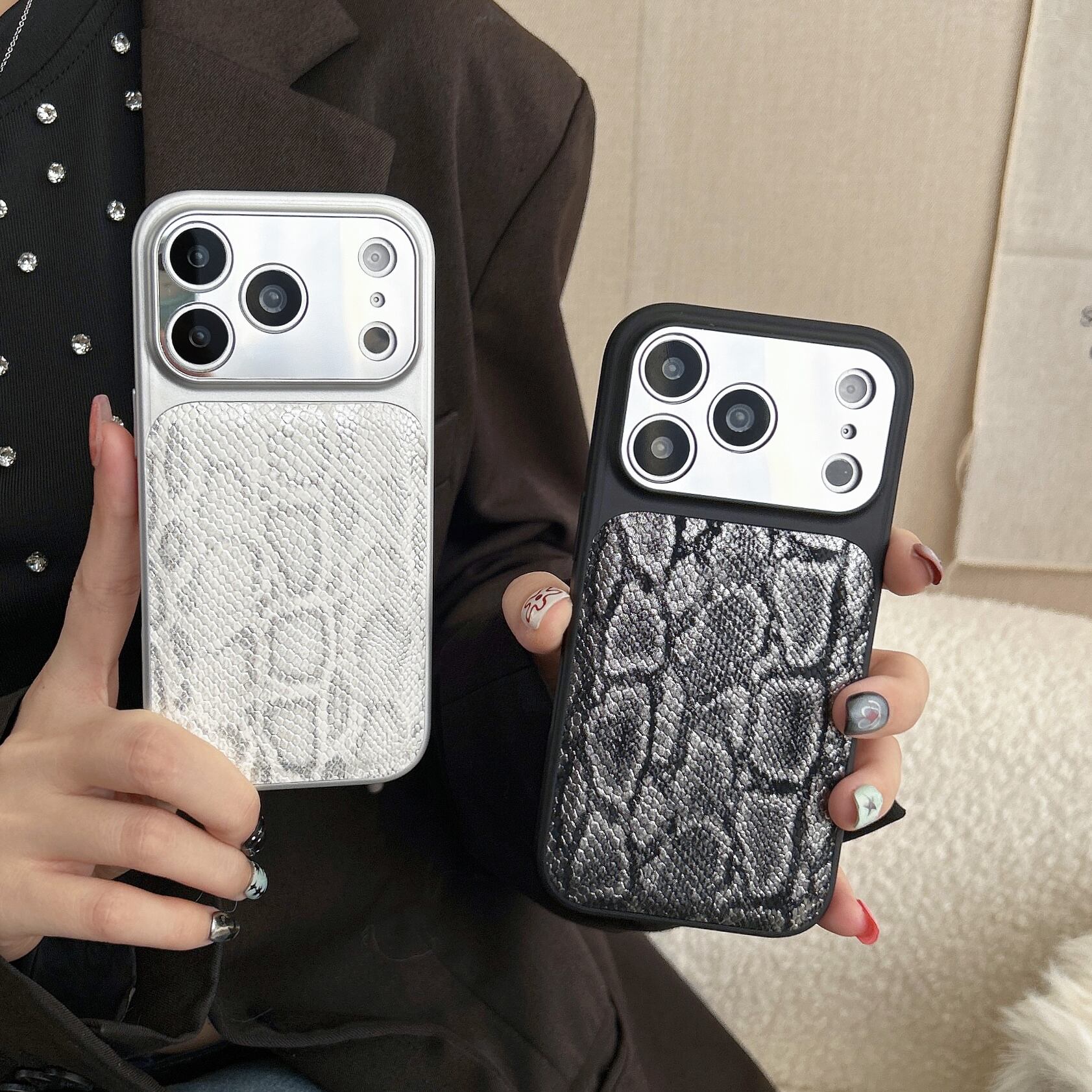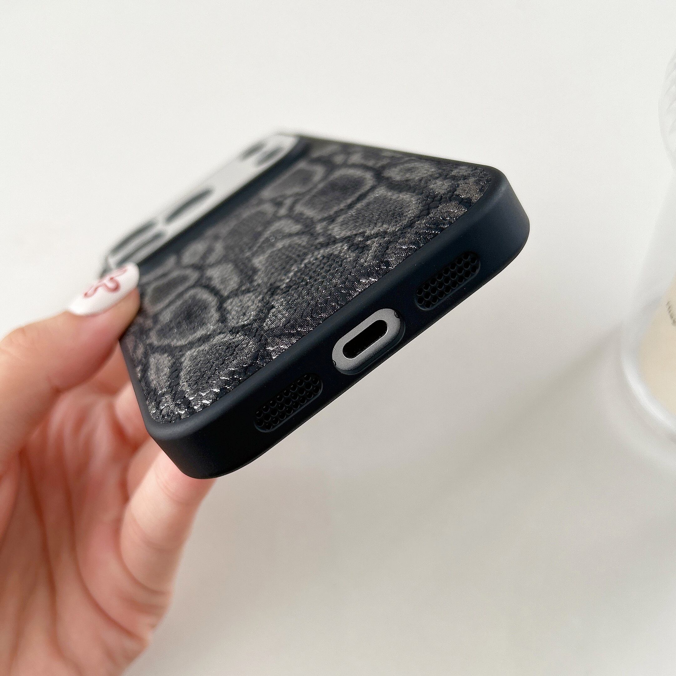 ヘビ柄デザインのiPhoneケース。