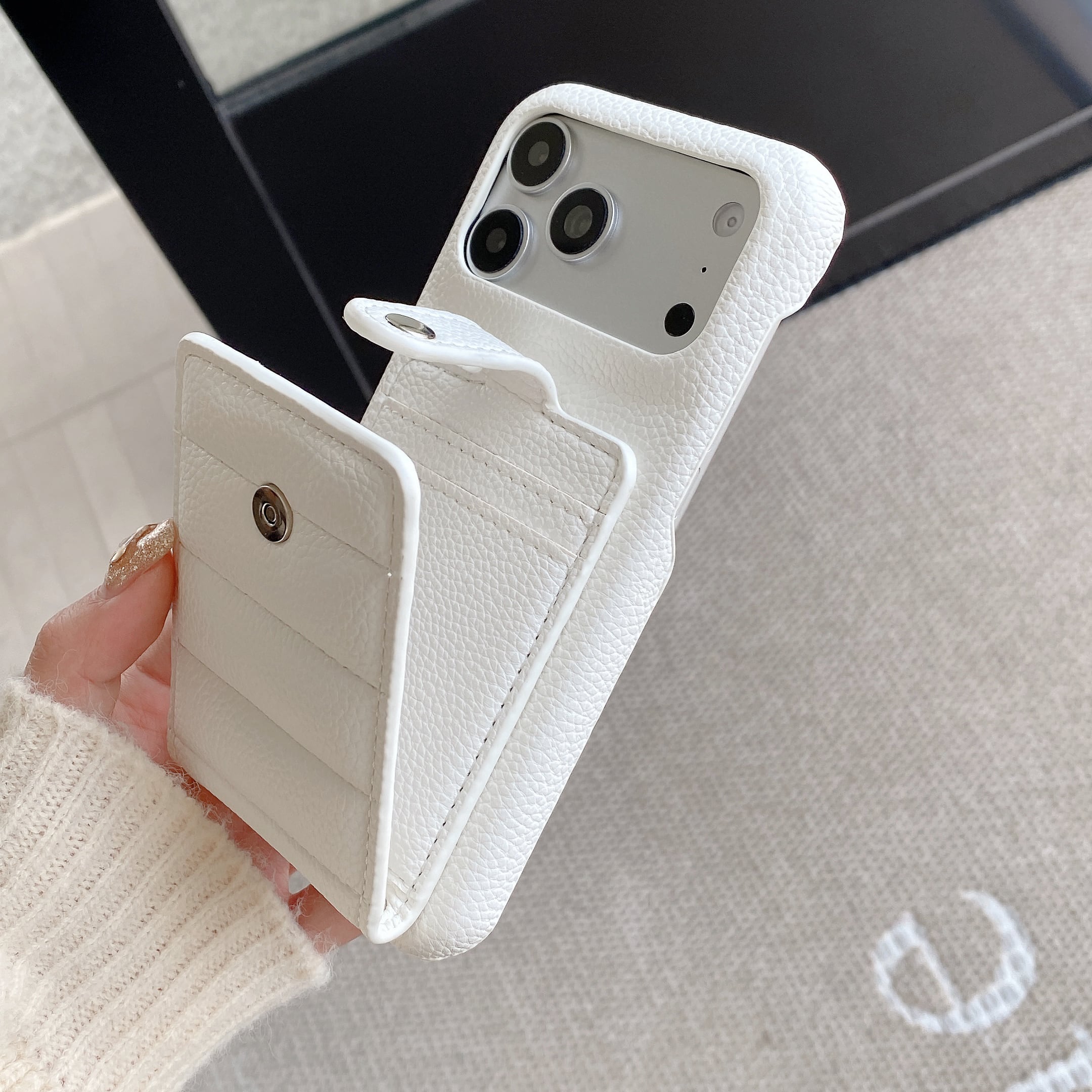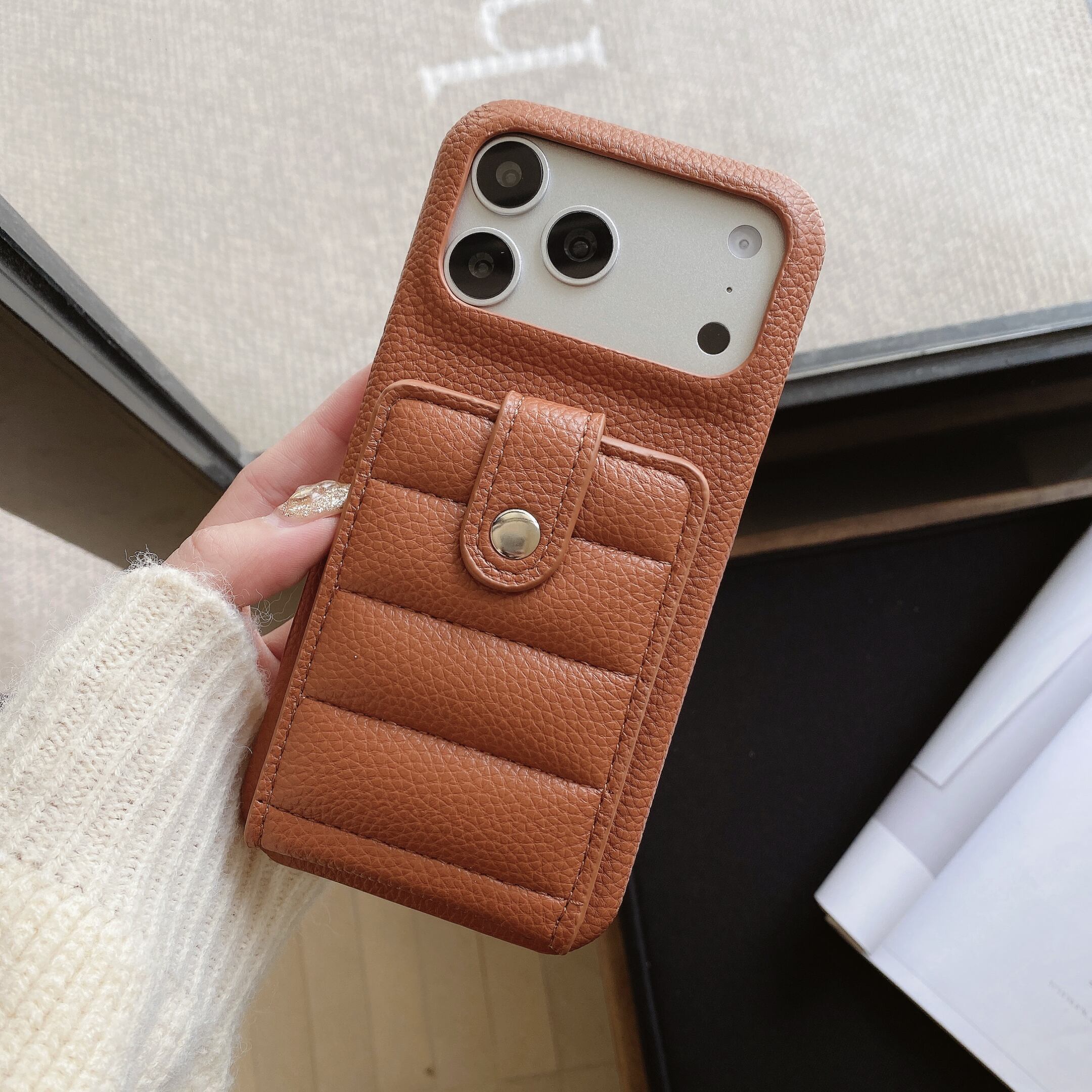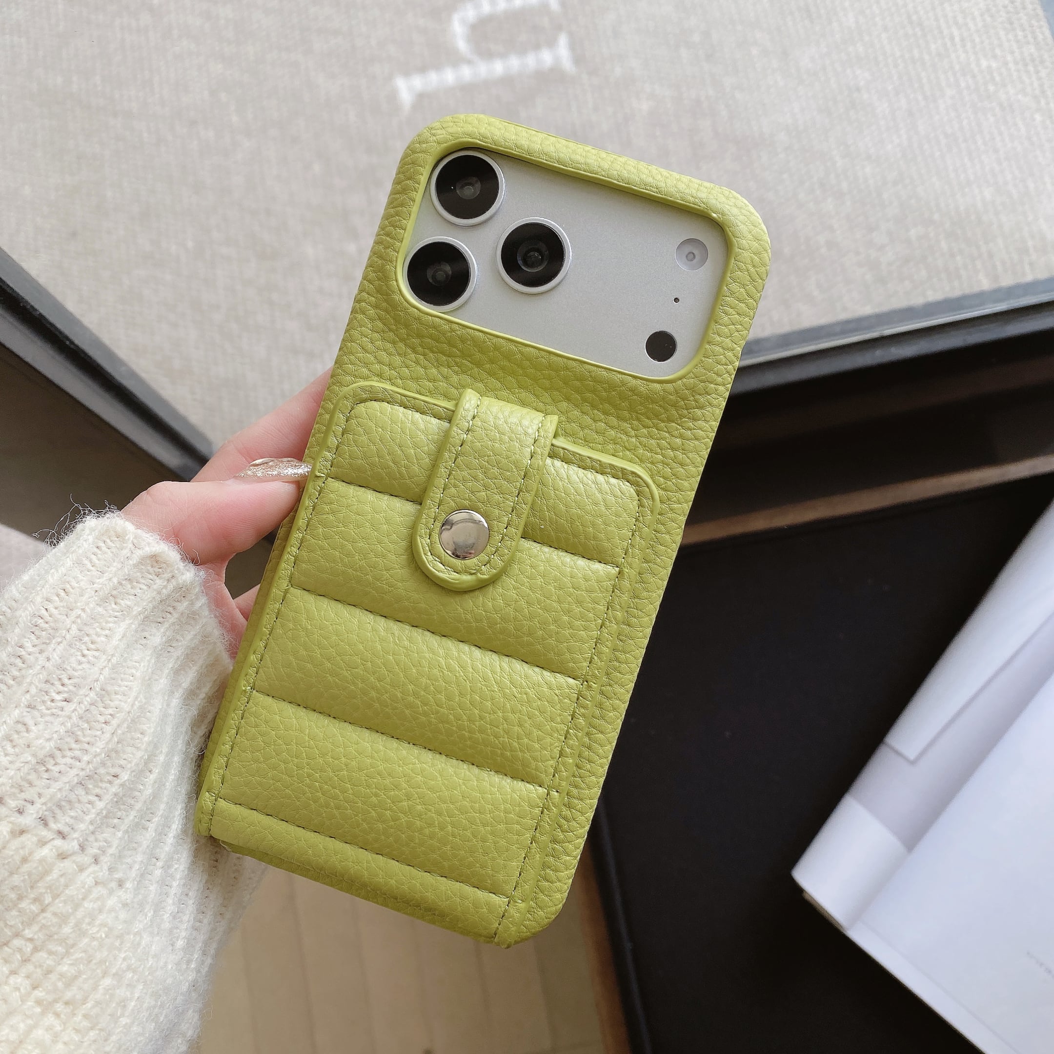 ダウン風キルティングカードケース付きiPhoneケースです。