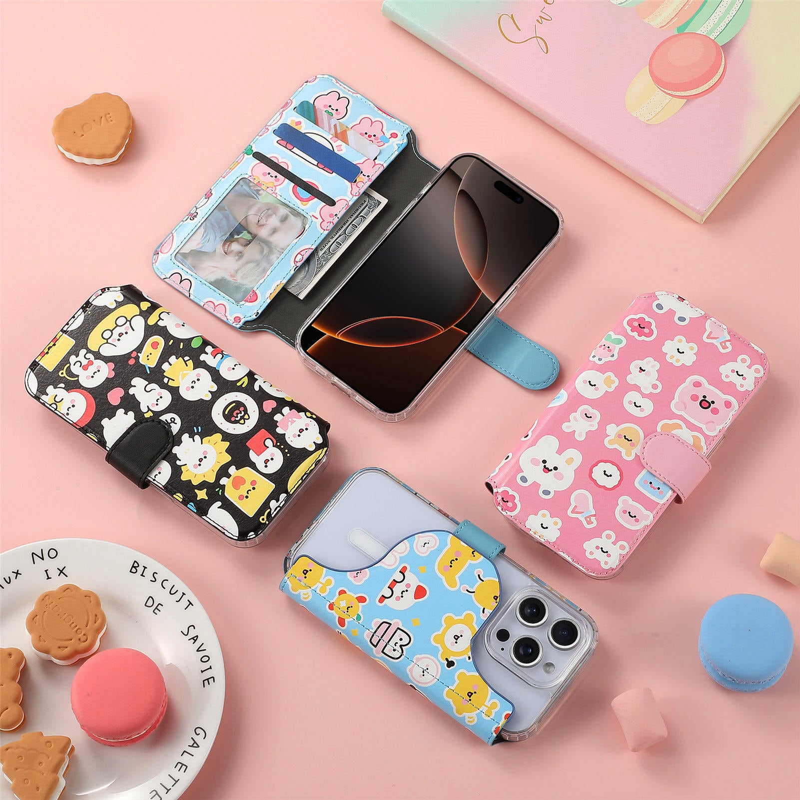 可愛い iPhone 17 16 15 14 13 12 手帳型ケース マグネット式 2WAY クリアケース MagSafe対応