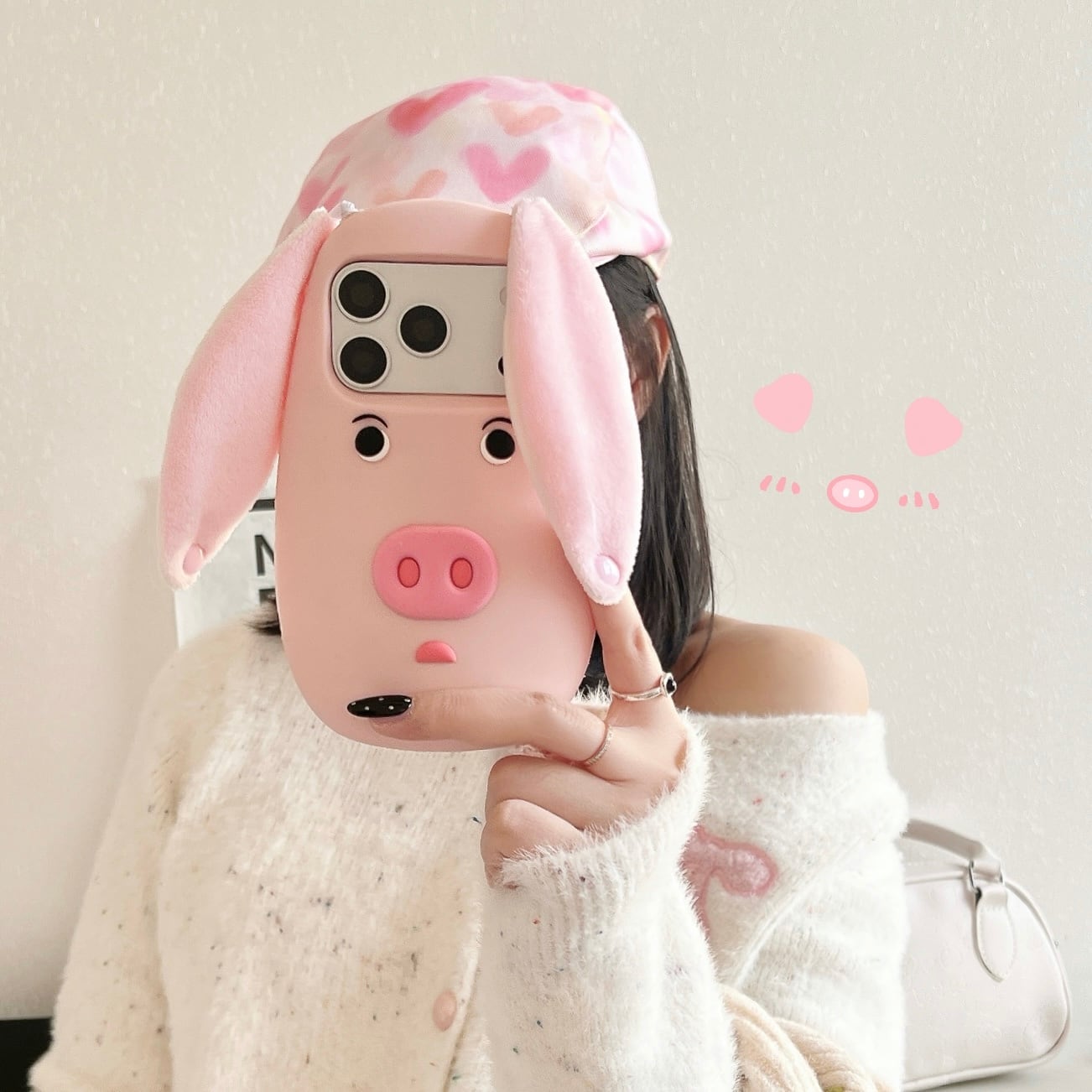 耳付きブタさん iPhone 17 16 15 14 13 ケース 可愛い シリコン 韓国風 スマホカバー おもしろ 耐衝撃