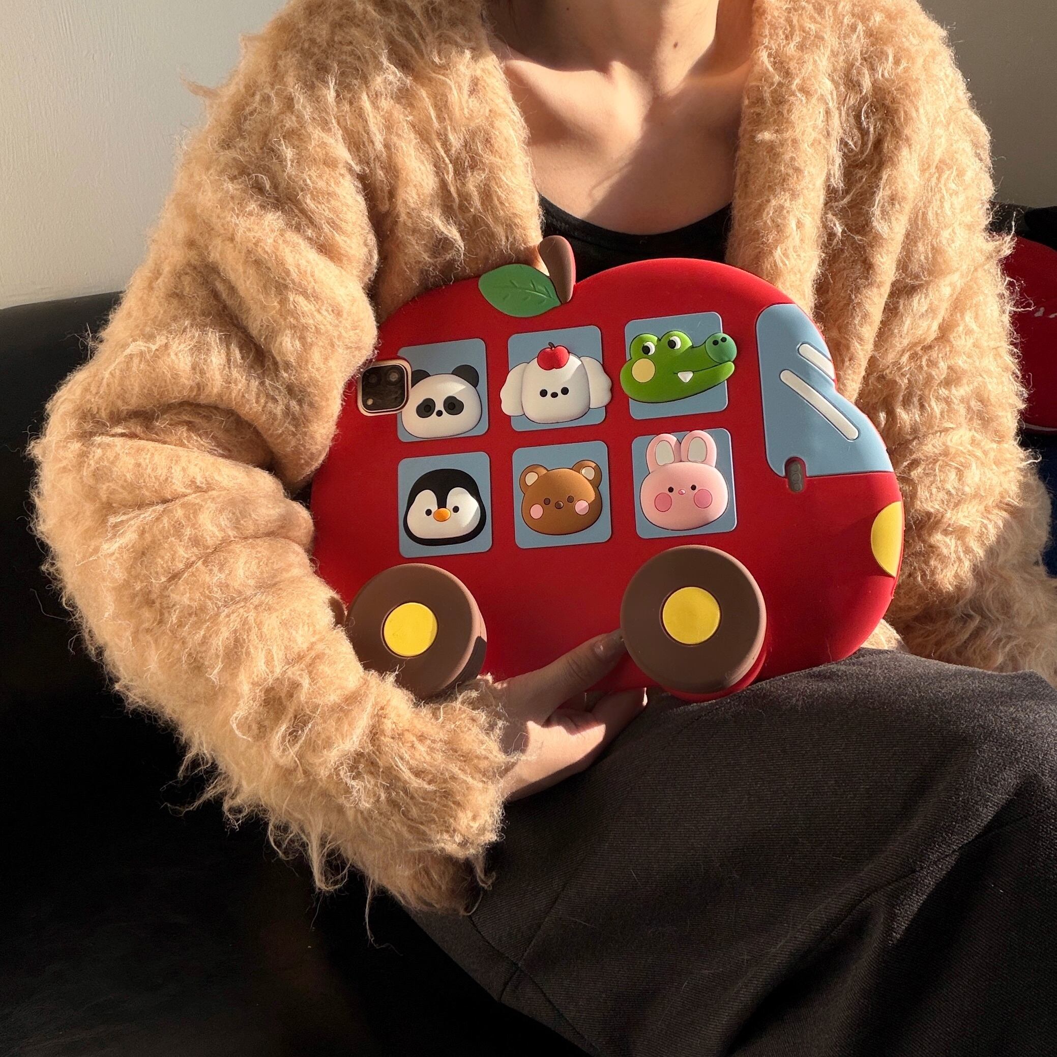 スタンド機能 ipadケース a16 第10/9/8/7世代 シリコン ipad air11 air5 ipad mini7/6 ipad pro11 ケース かわいい 動物 りんご バス