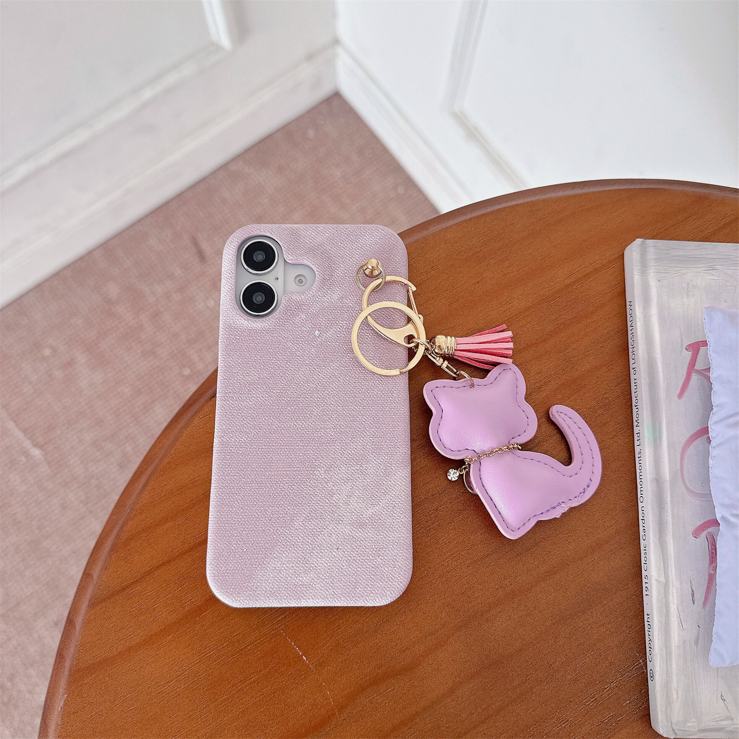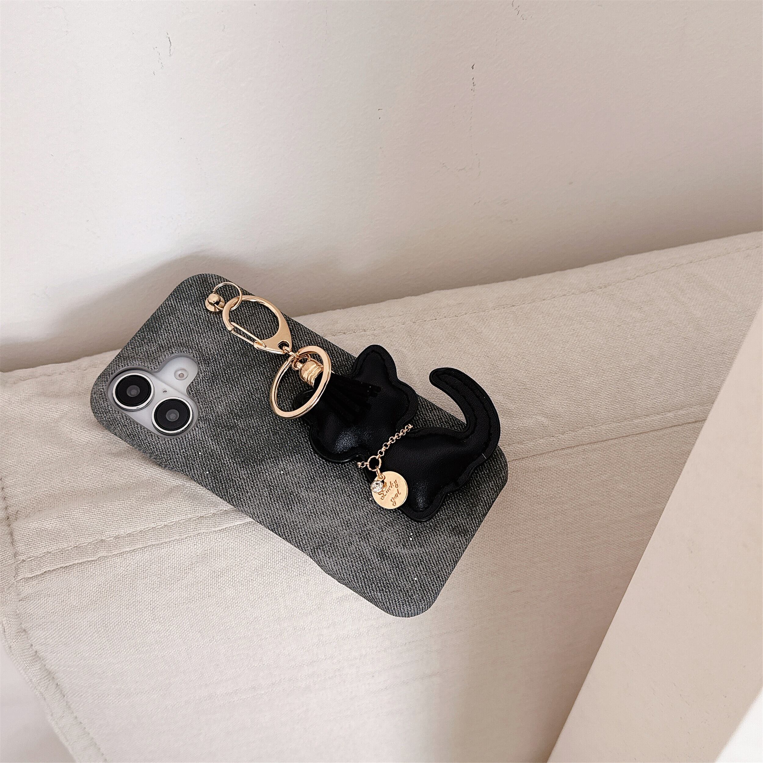 ねこちゃん iphone 16 15 14 13 ケース 可愛い 猫 チャーム デニム柄 スマホケース おしゃれ