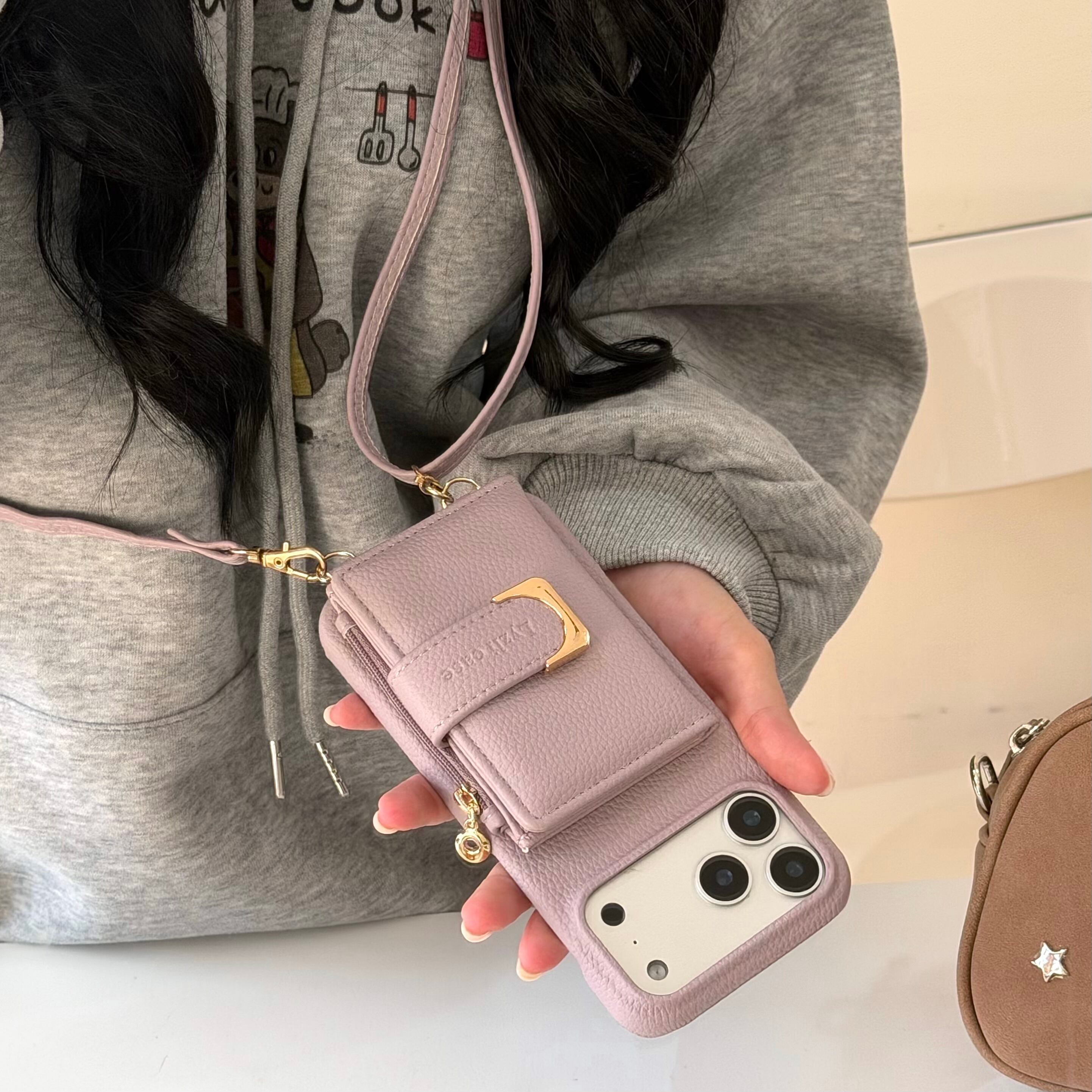 おしゃれ iPhone 17 16 15 14 13 12 11 ケース 高級 小銭入れ カード収納 ショルダーストラップ付き 背面型 スマホケース