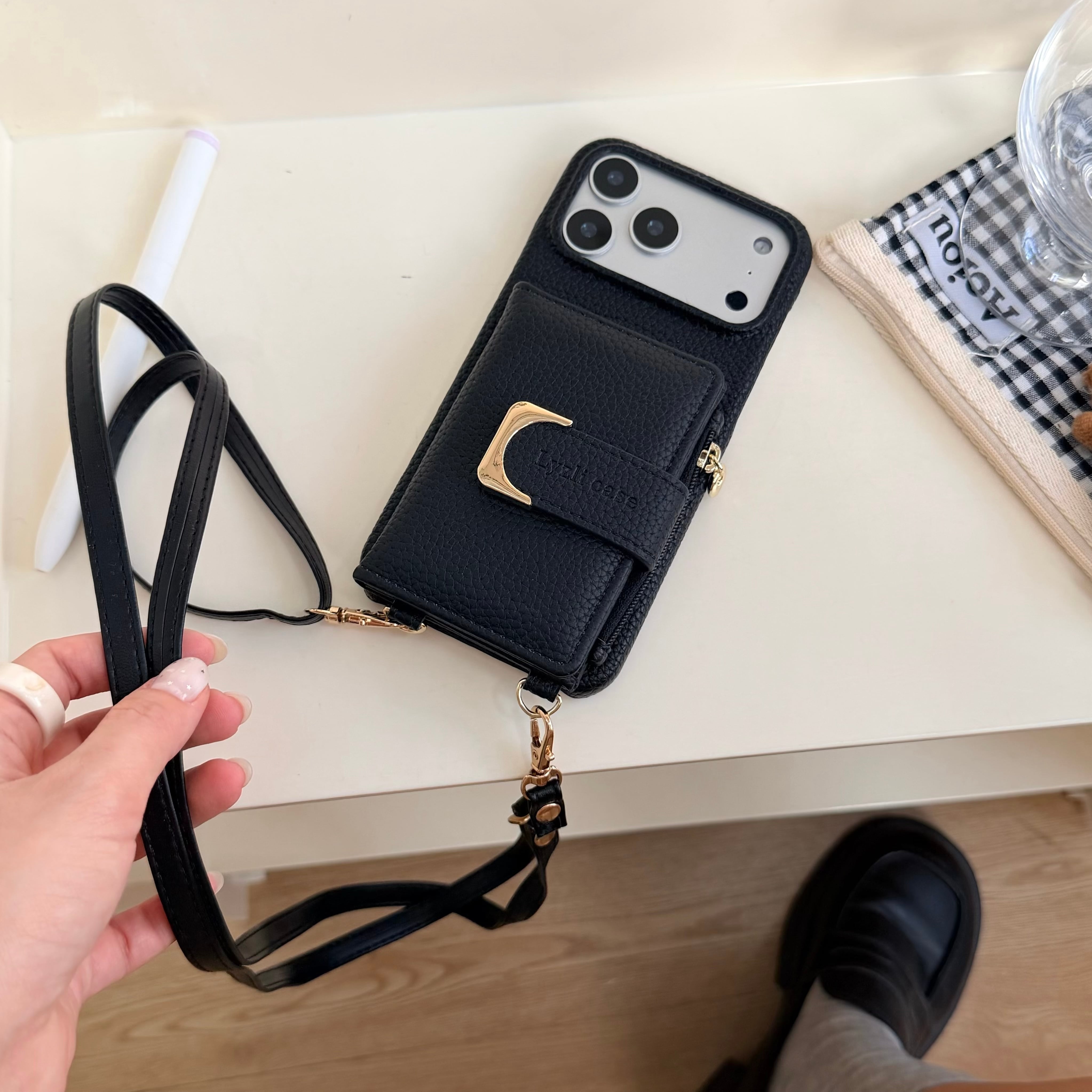 ケースと同じpuレザー素材のショルダーストラップ(約120cm)が付属。