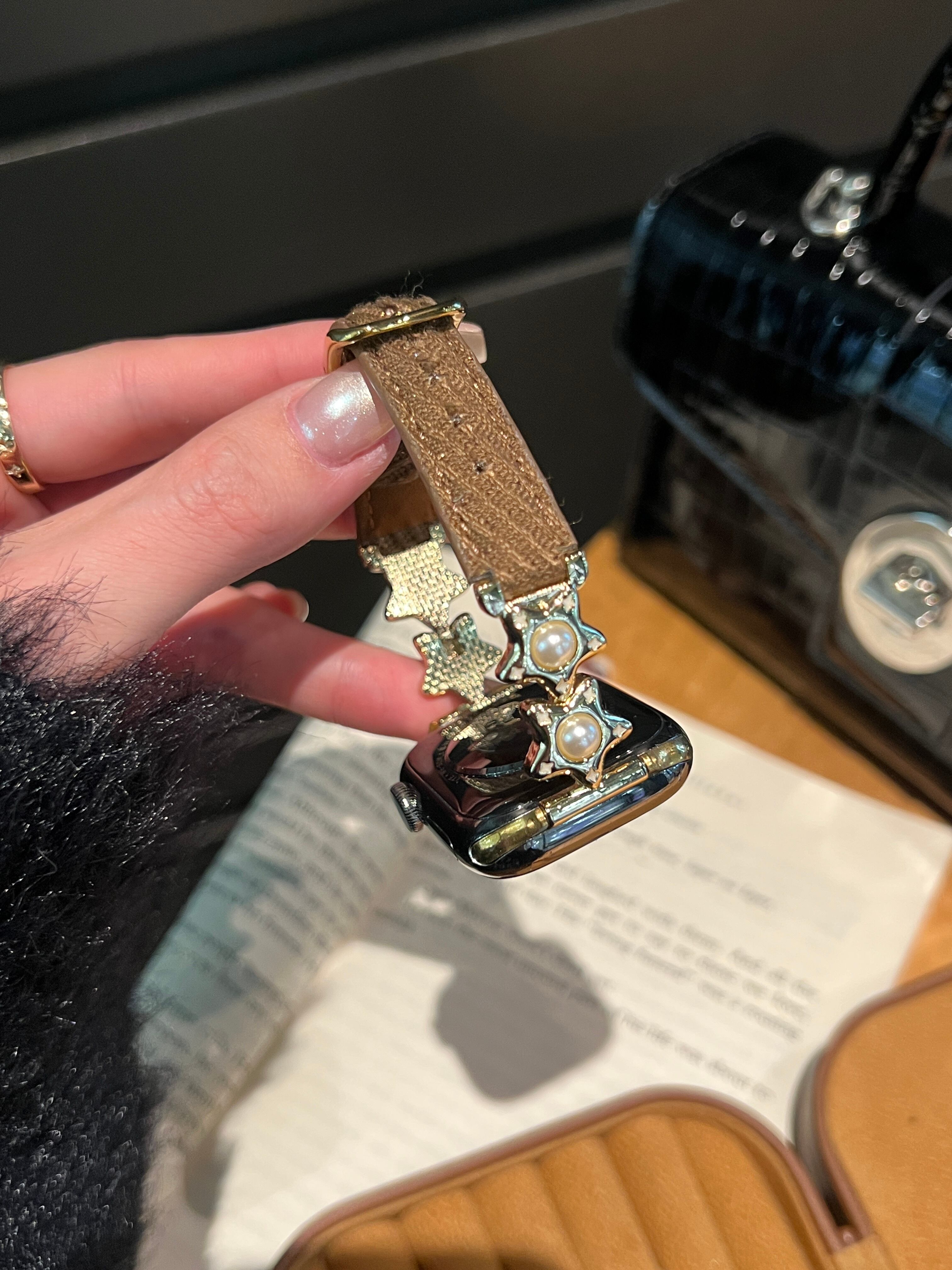 帆布×本革 Apple Watch バンド レディース 高級感 アップルウォッチバンド 交換ベルト 星 パール スター おしゃれ