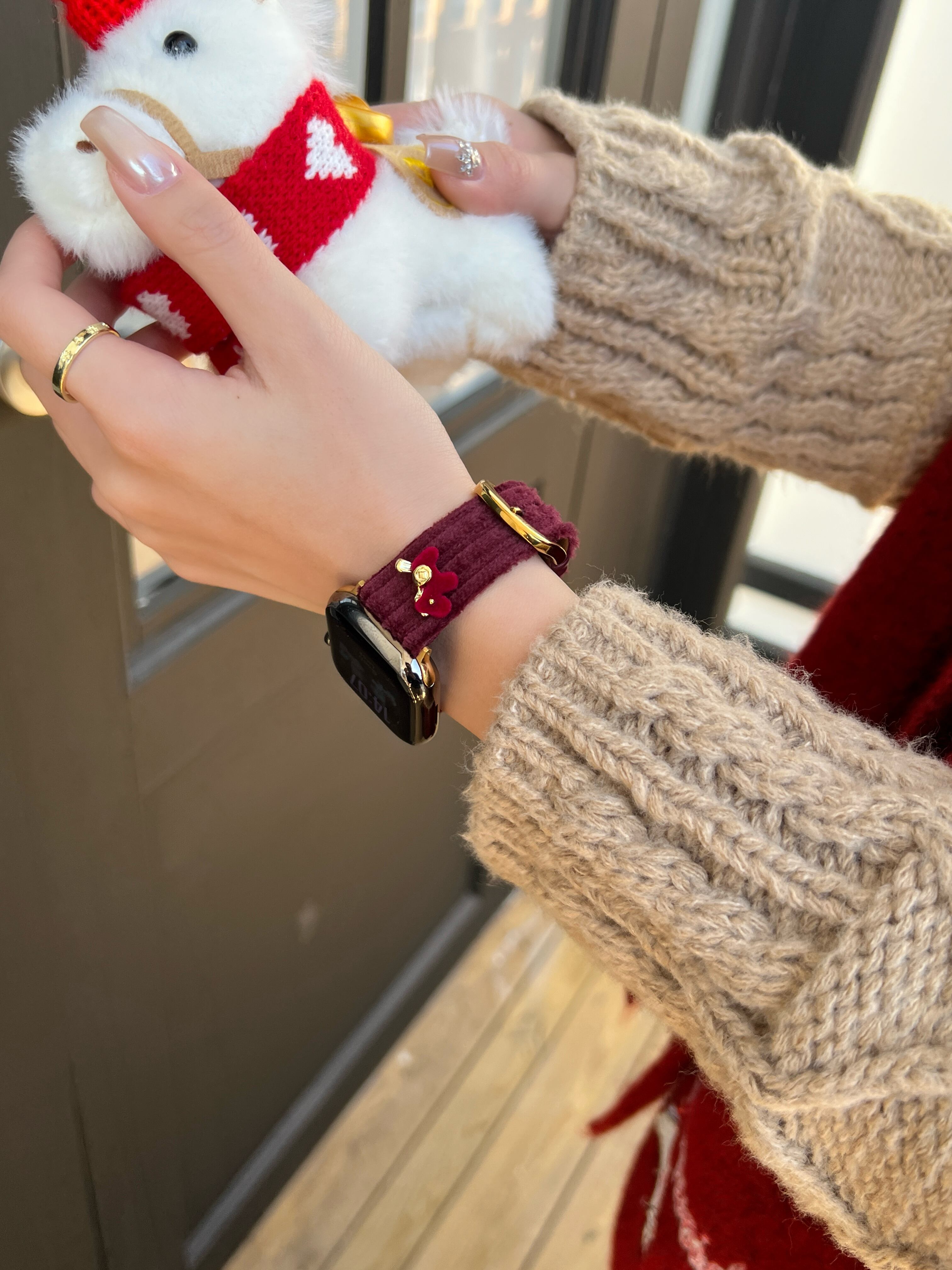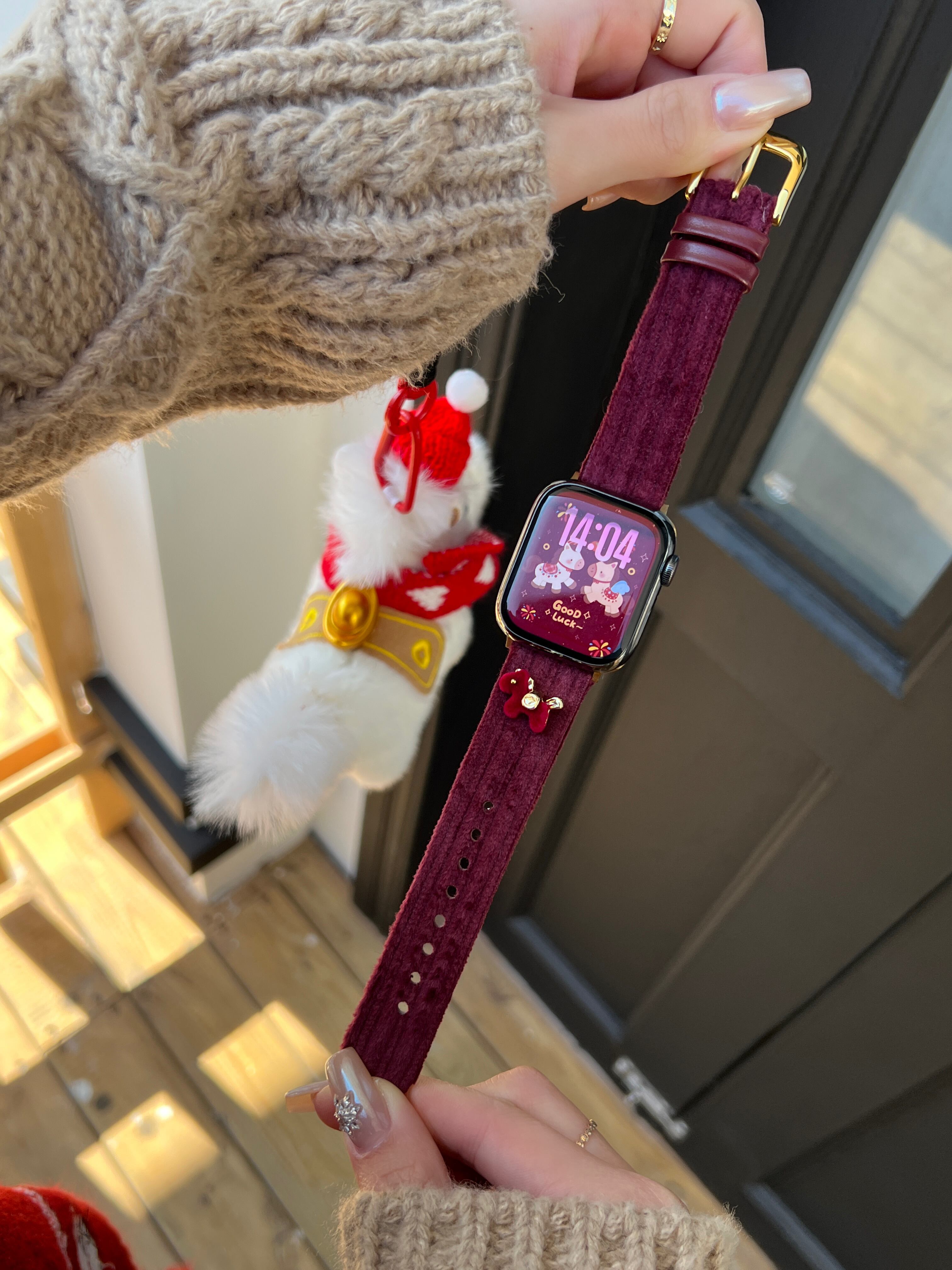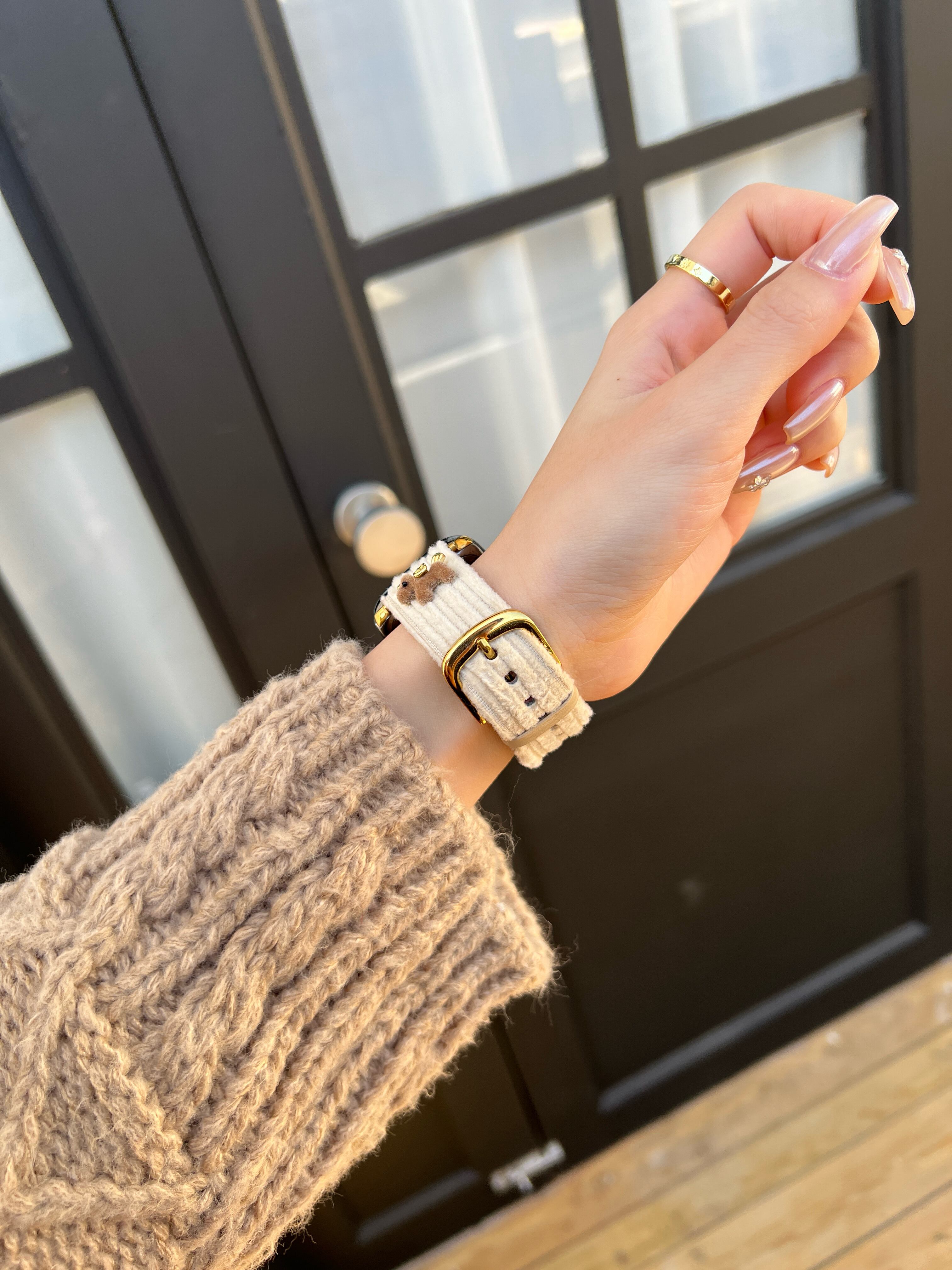 コーデュロイ × 本革 Apple Watch バンド かわいい アップルウォッチバンド 交換ベルト うま 馬 おしゃれ