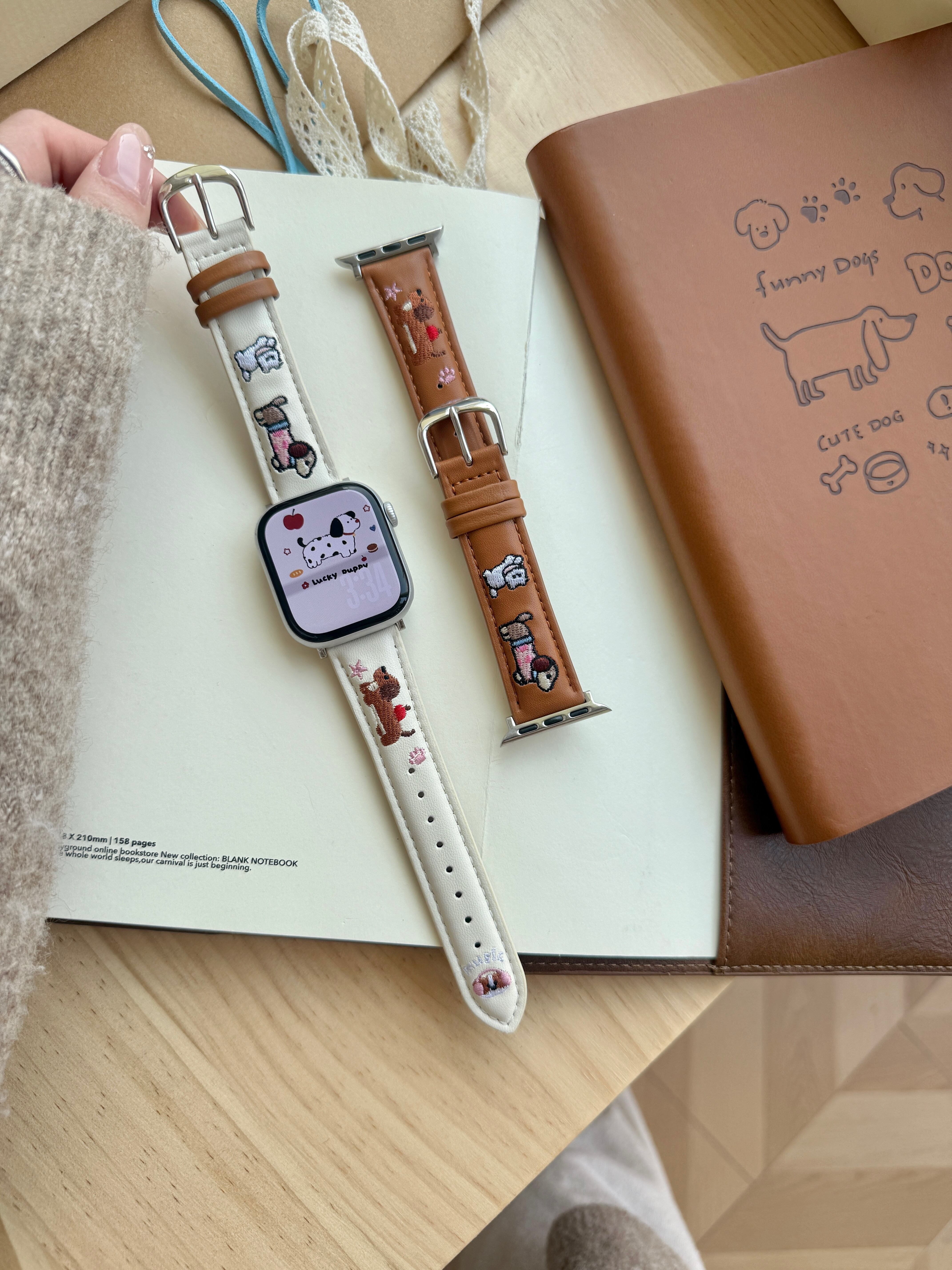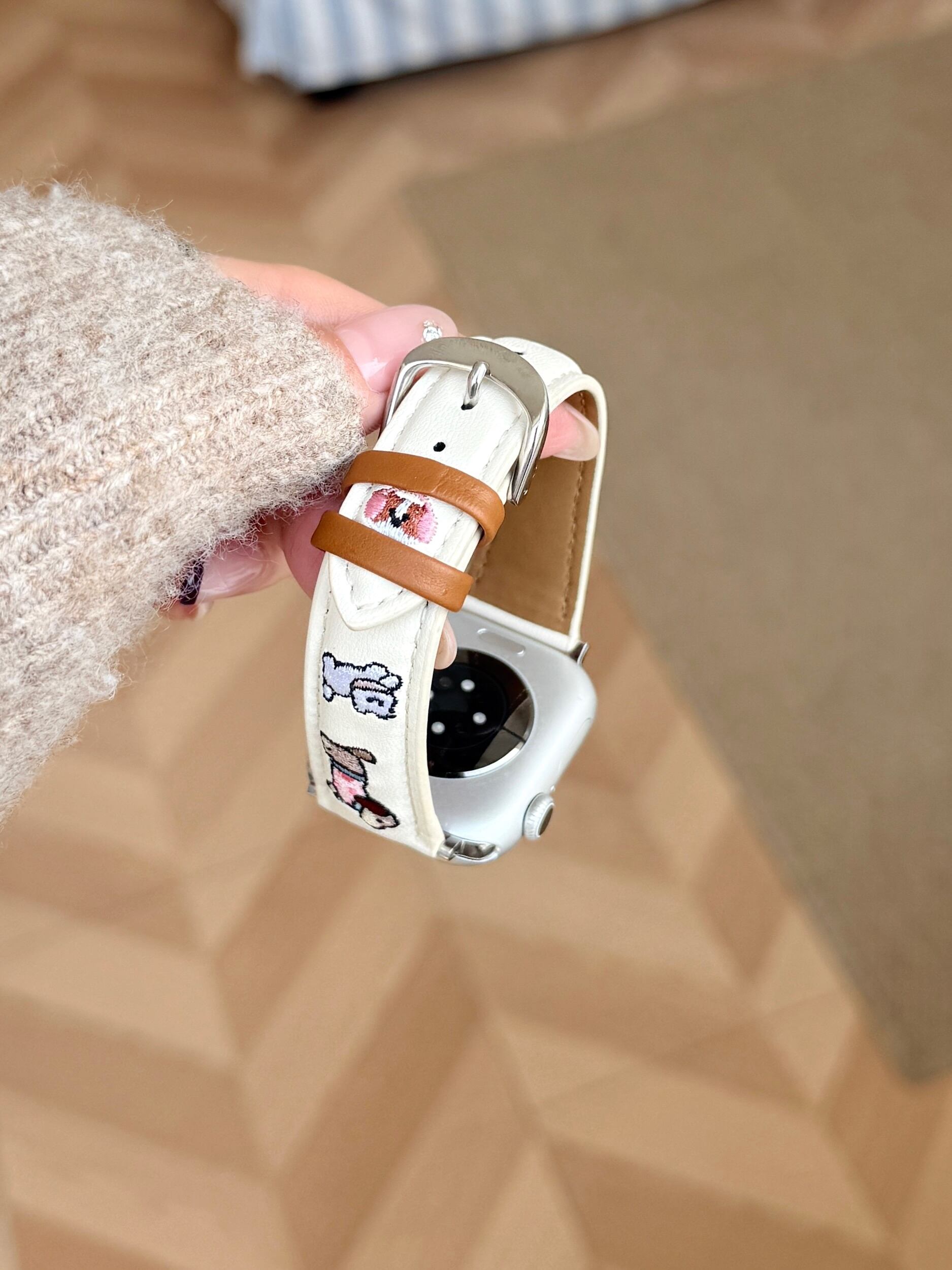 ワンちゃん刺繍 Apple Watch バンド かわいい 最新モデル対応 アップルウォッチバンド 犬 交換ベルト おしゃれ