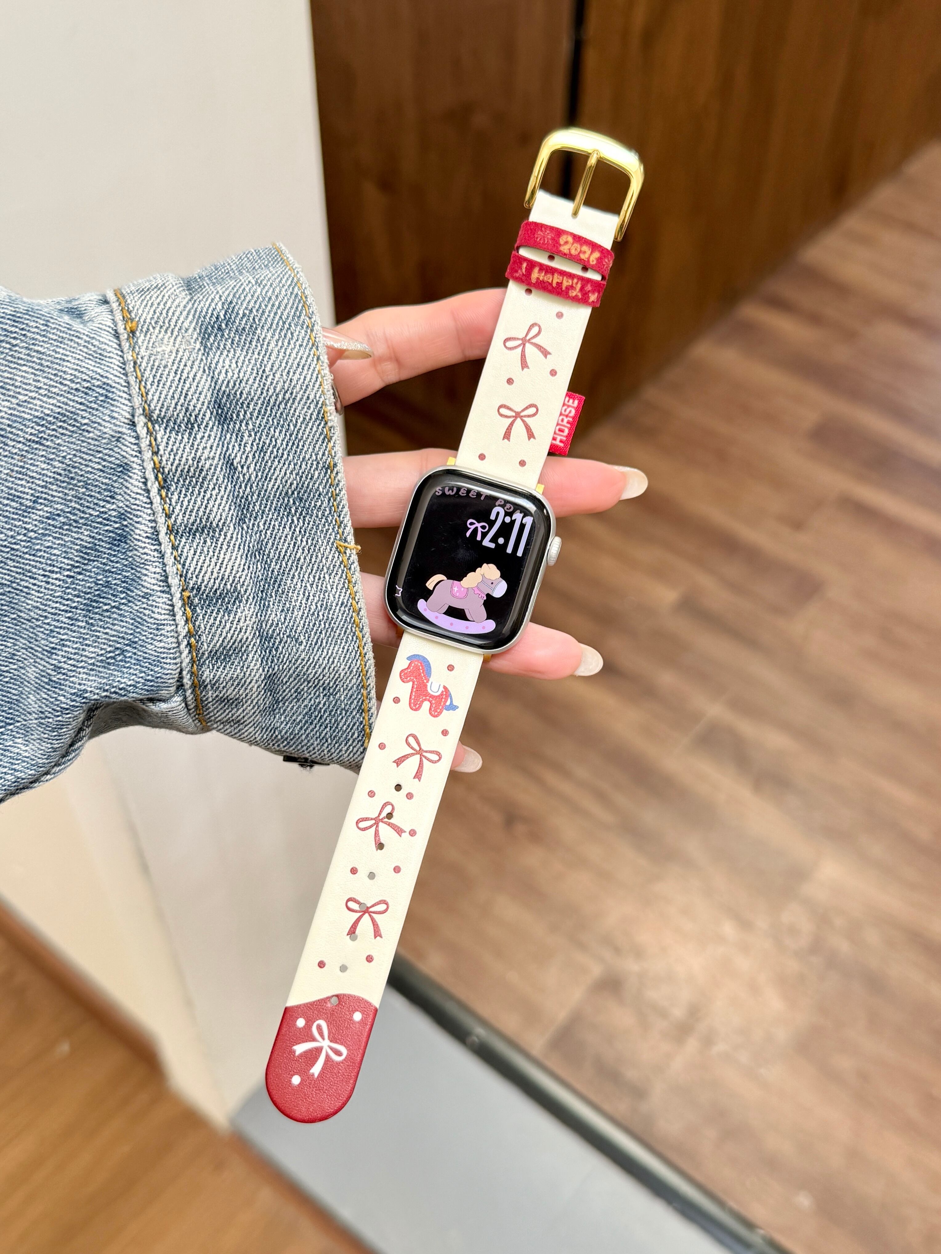 <funny pony> Apple Watch バンド かわいい 最新モデル対応 アップルウォッチバンド うま 馬 リボン おしゃれ