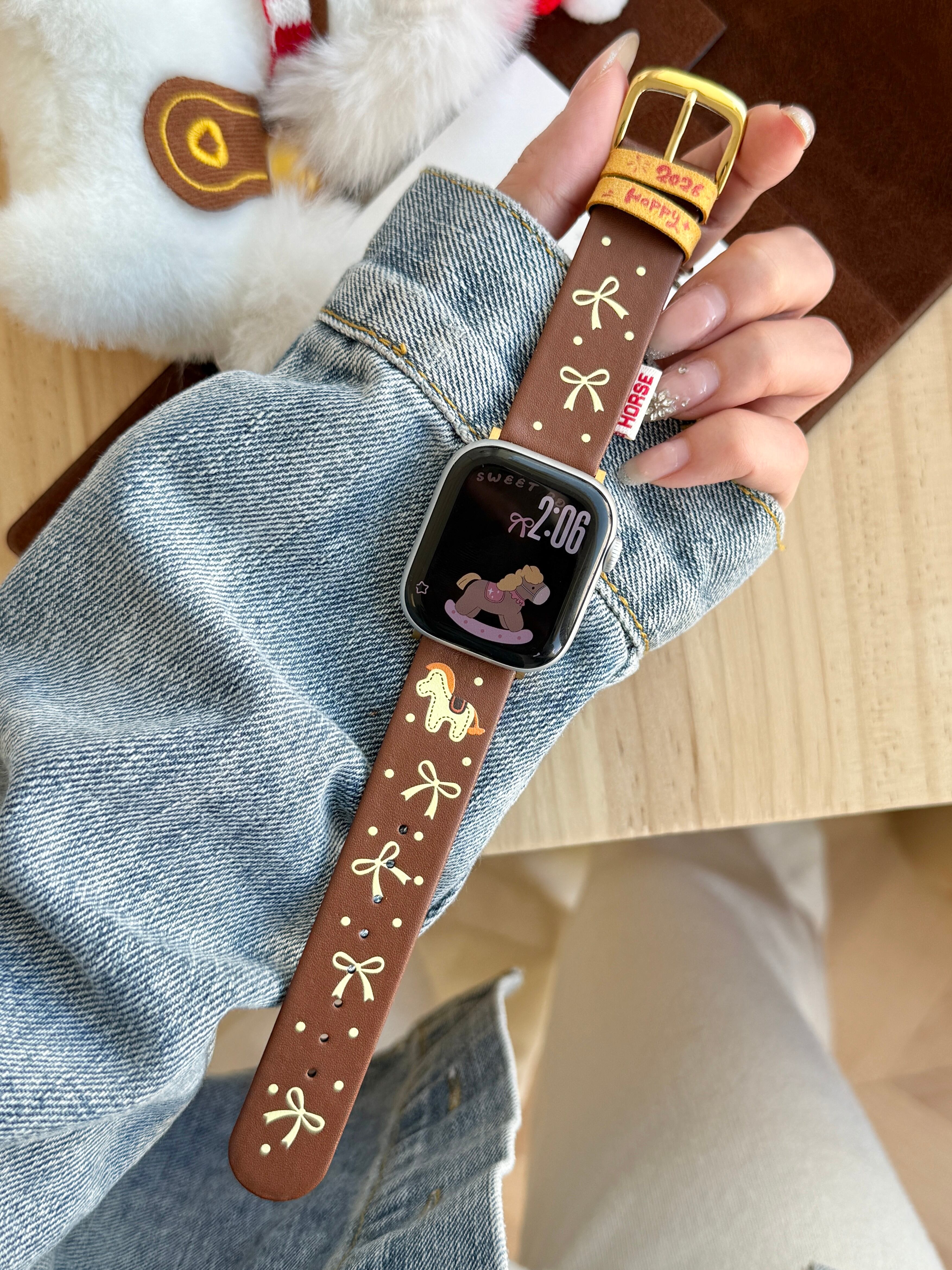 <funny pony> Apple Watch バンド かわいい 最新モデル対応 アップルウォッチバンド うま 馬 リボン おしゃれ
