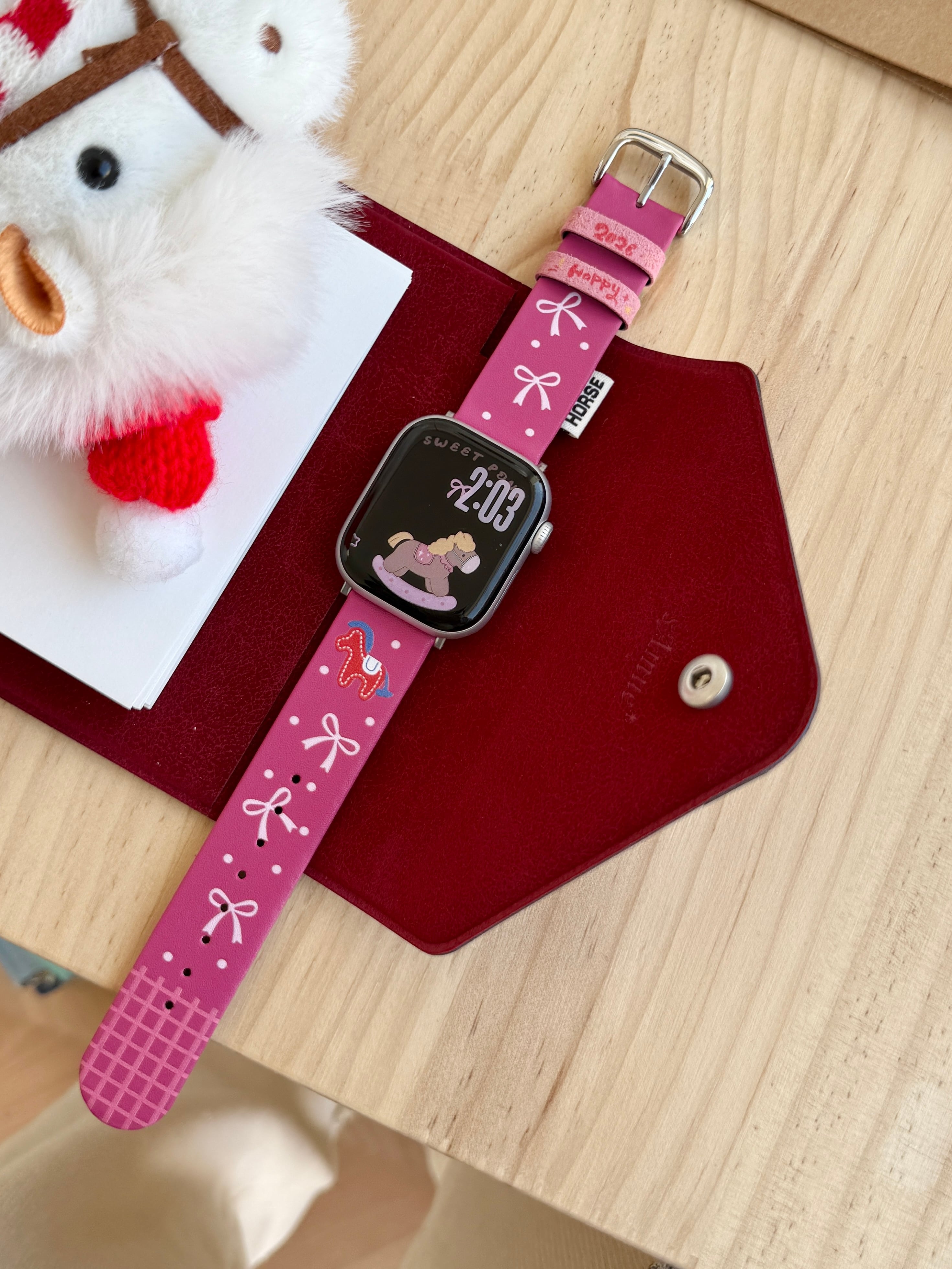 <funny pony> Apple Watch バンド かわいい 最新モデル対応 アップルウォッチバンド うま 馬 リボン おしゃれ