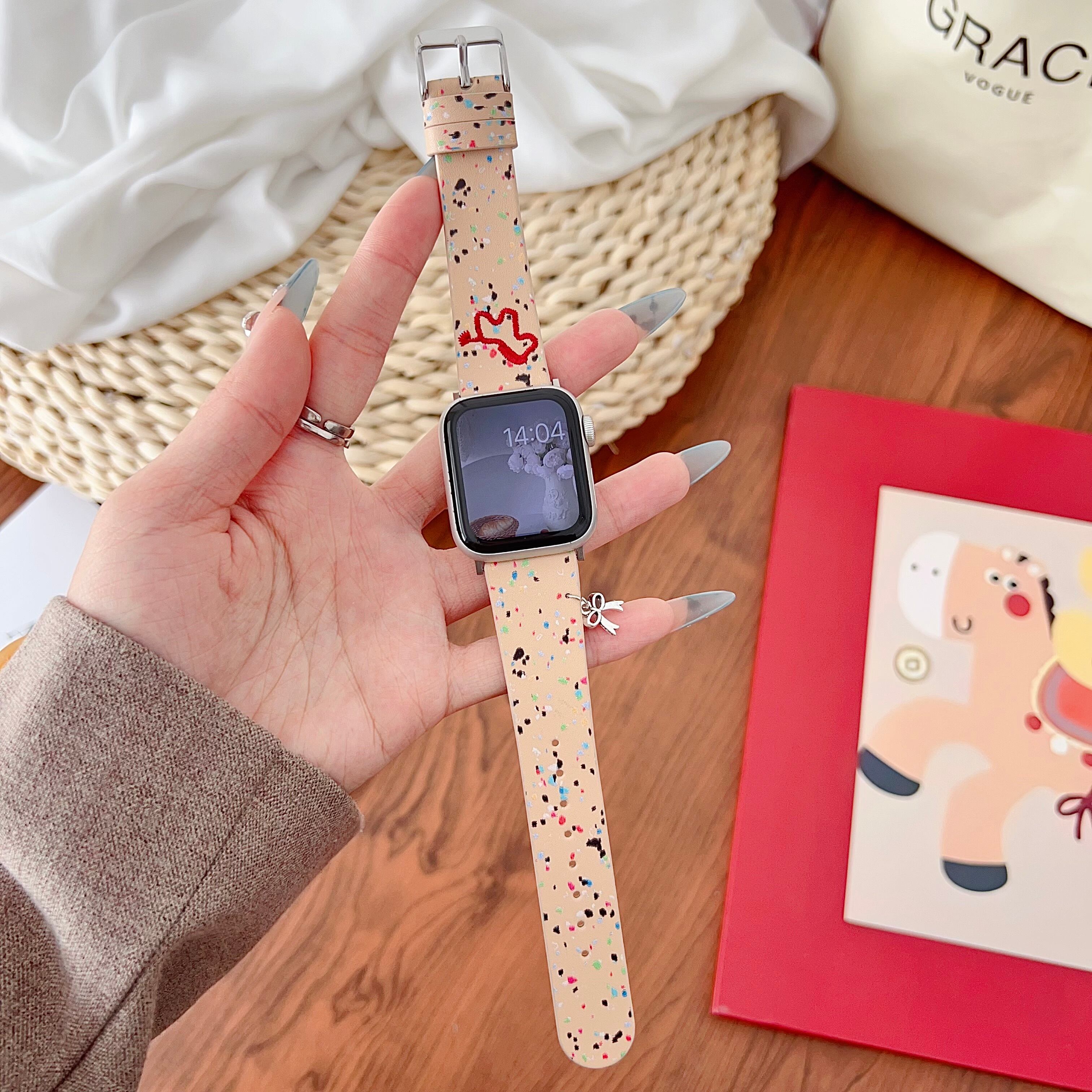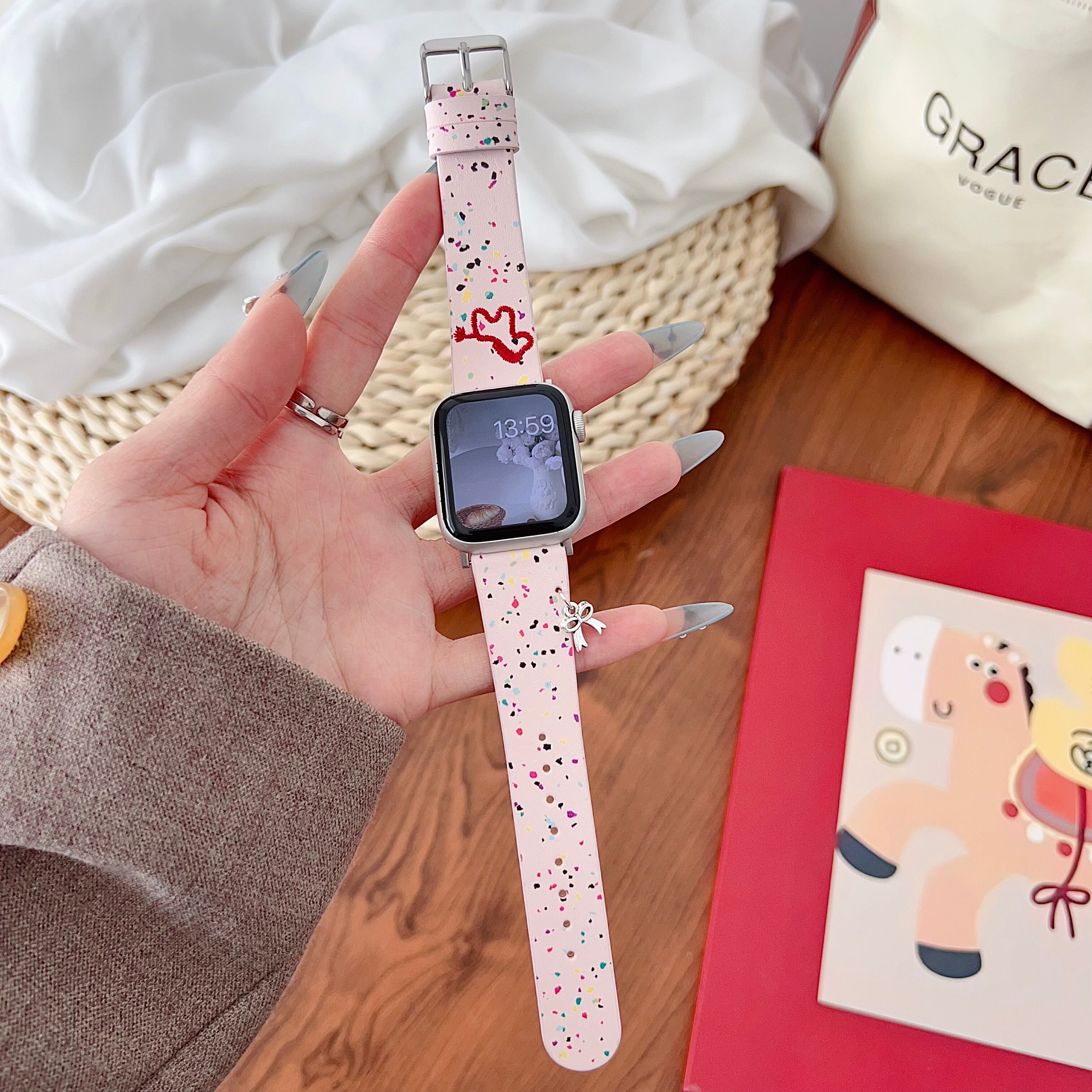 刺繍入り Apple Watch バンド かわいい 紙吹雪柄 アップルウォッチバンド 馬 うま 刺繍 おしゃれ