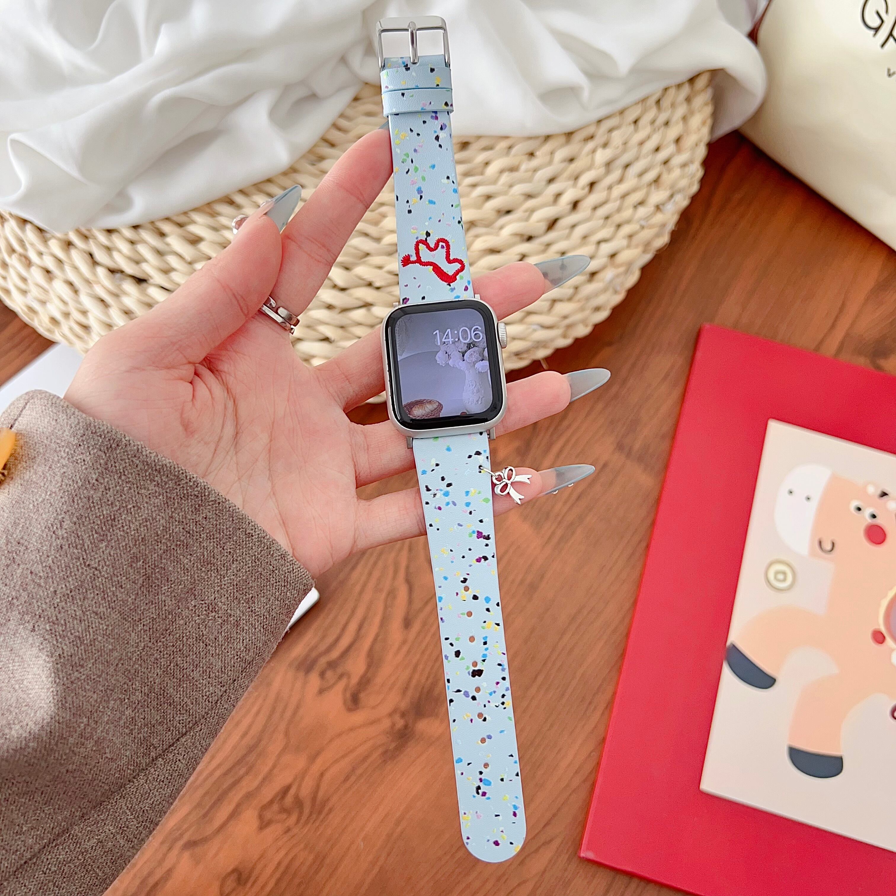 紙吹雪柄 × 赤い馬の刺繍 Apple Watchバンド