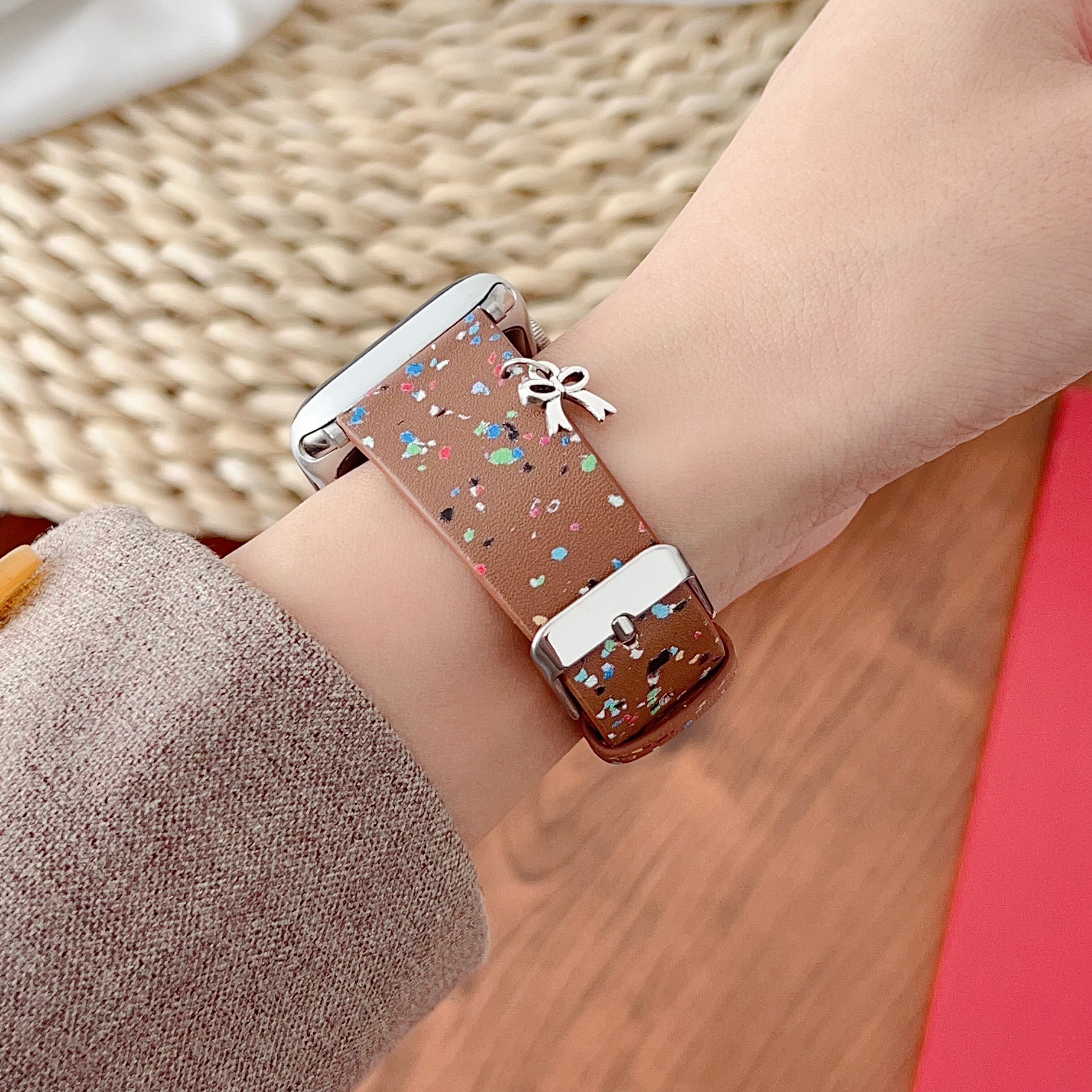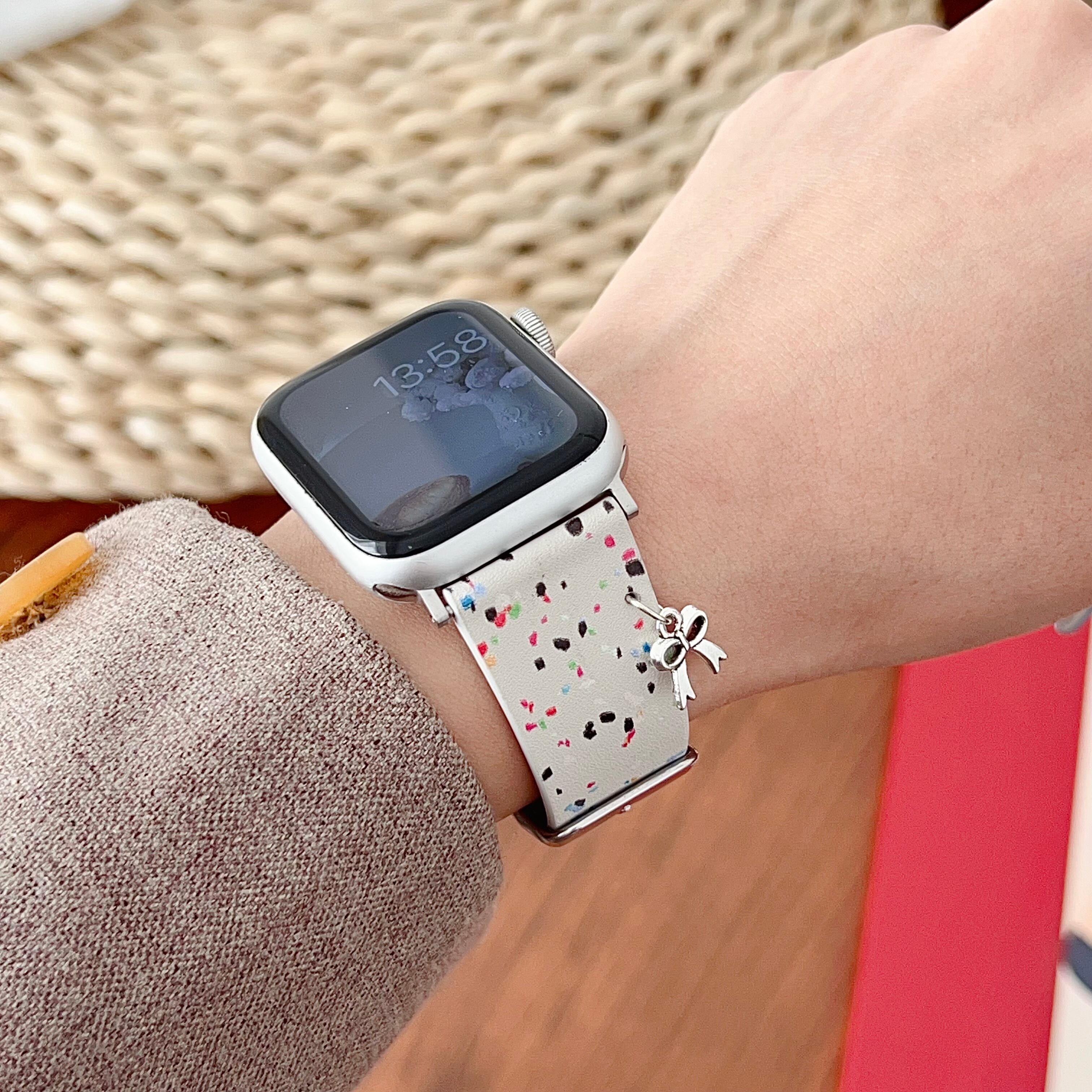紙吹雪柄と赤い馬の刺繍が目を引く、特別感のあるApple Watchバンドです。