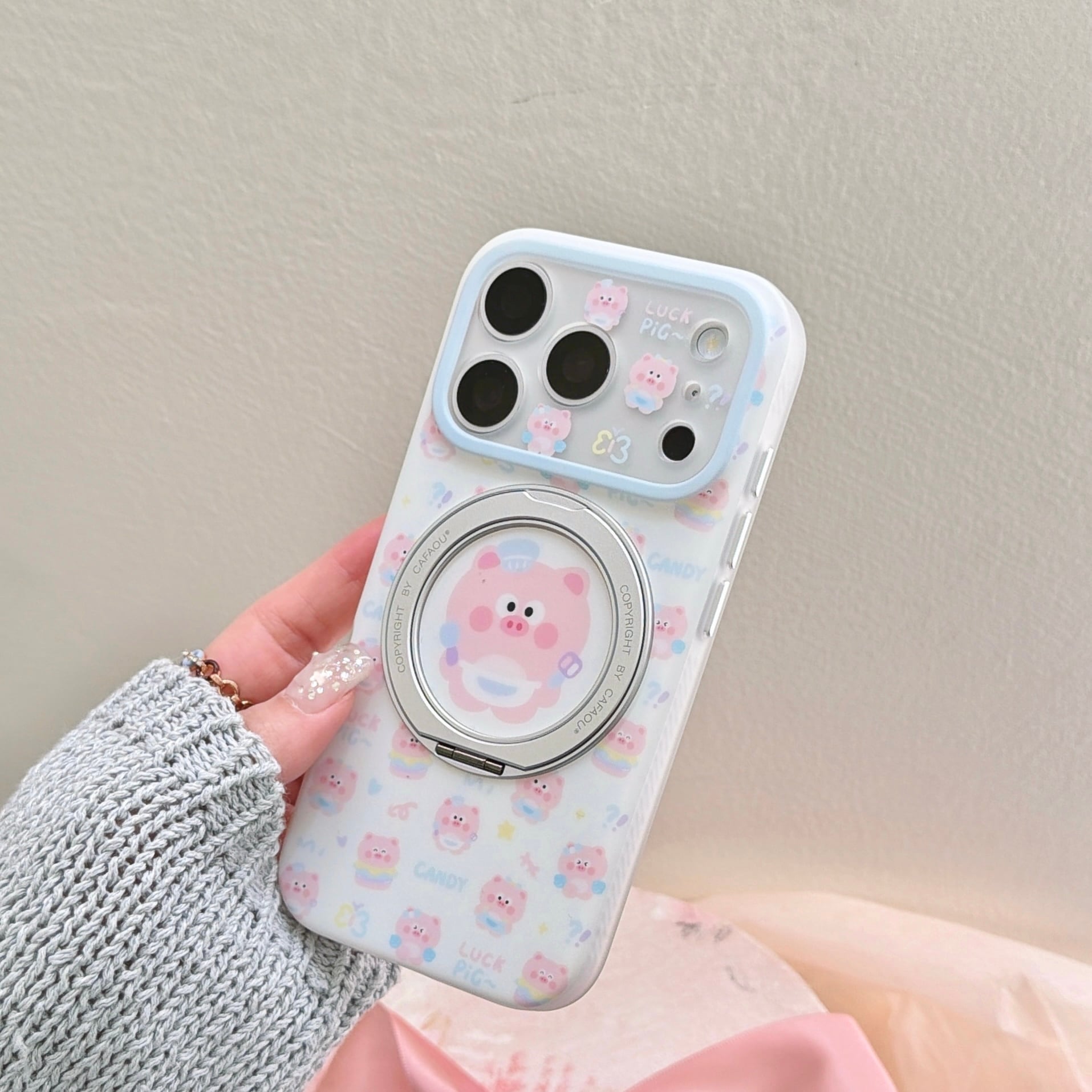 【360度回転スタンド】iPhone 17 16 15 ケース 二重IMD 耐衝撃 ハイブリッドケース かわいい ブタちゃん