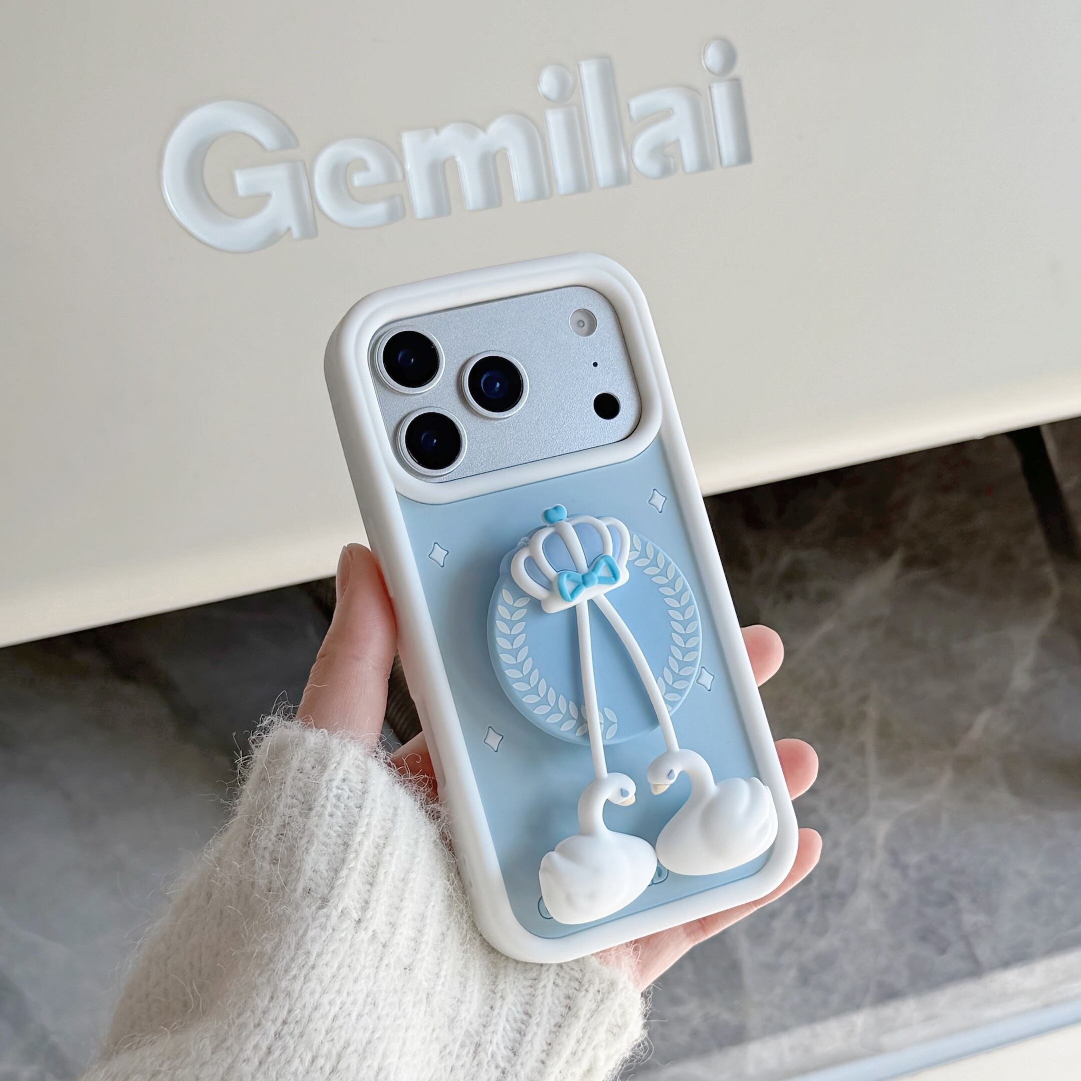 かわいい スワン iPhone 17 16 15 14 13 ケース シリコン 耐衝撃 スタンド機能 スマホケース 動物 アニマル 可愛い
