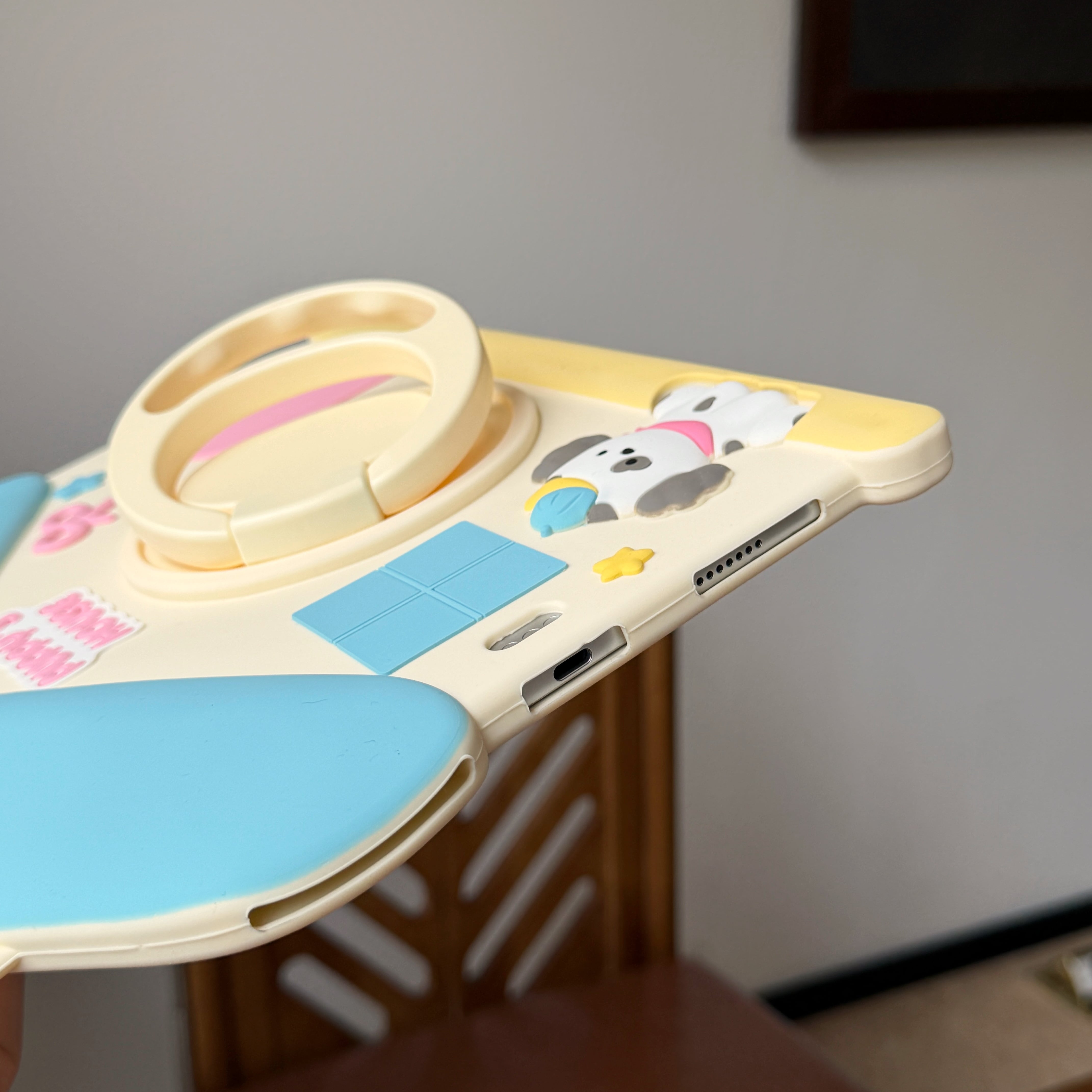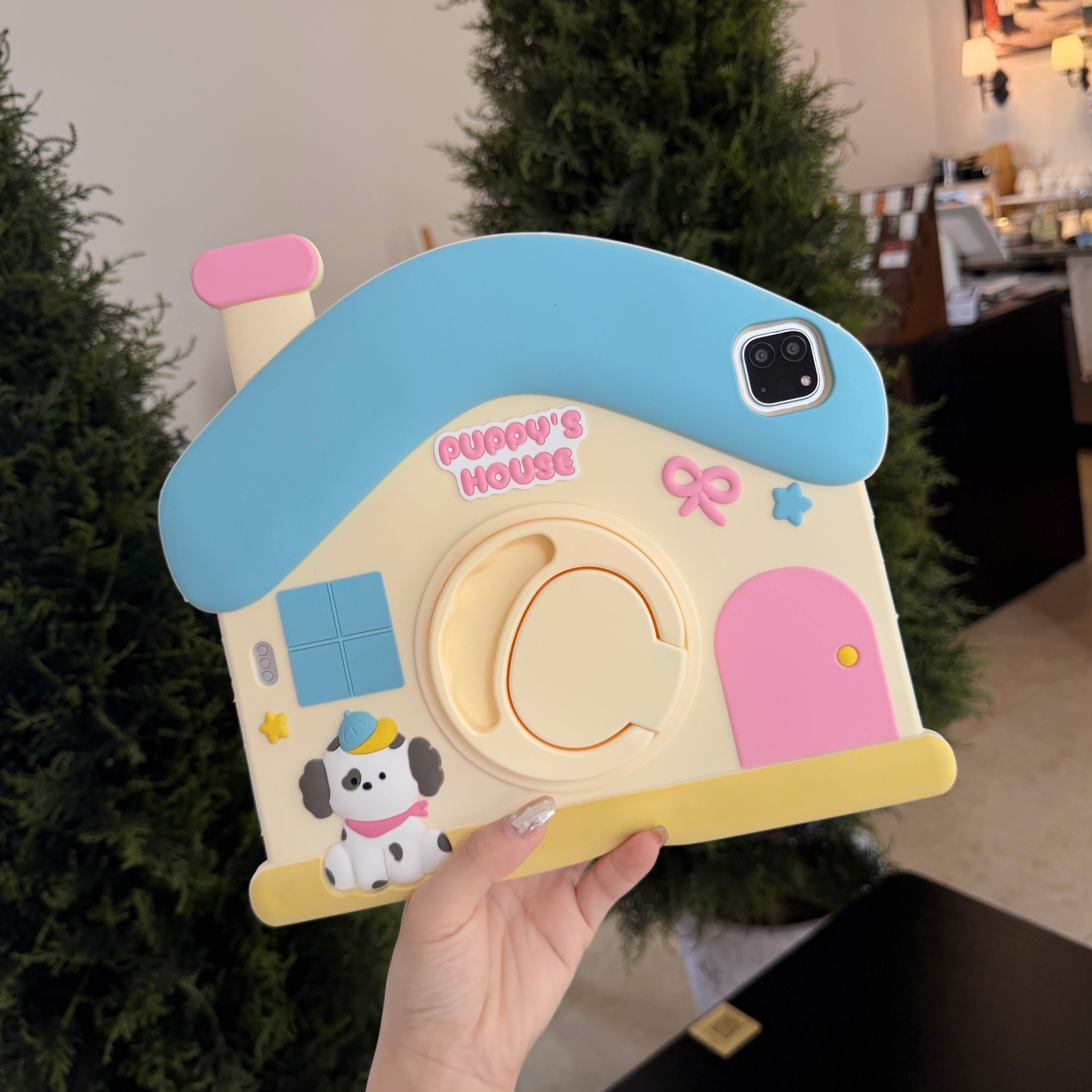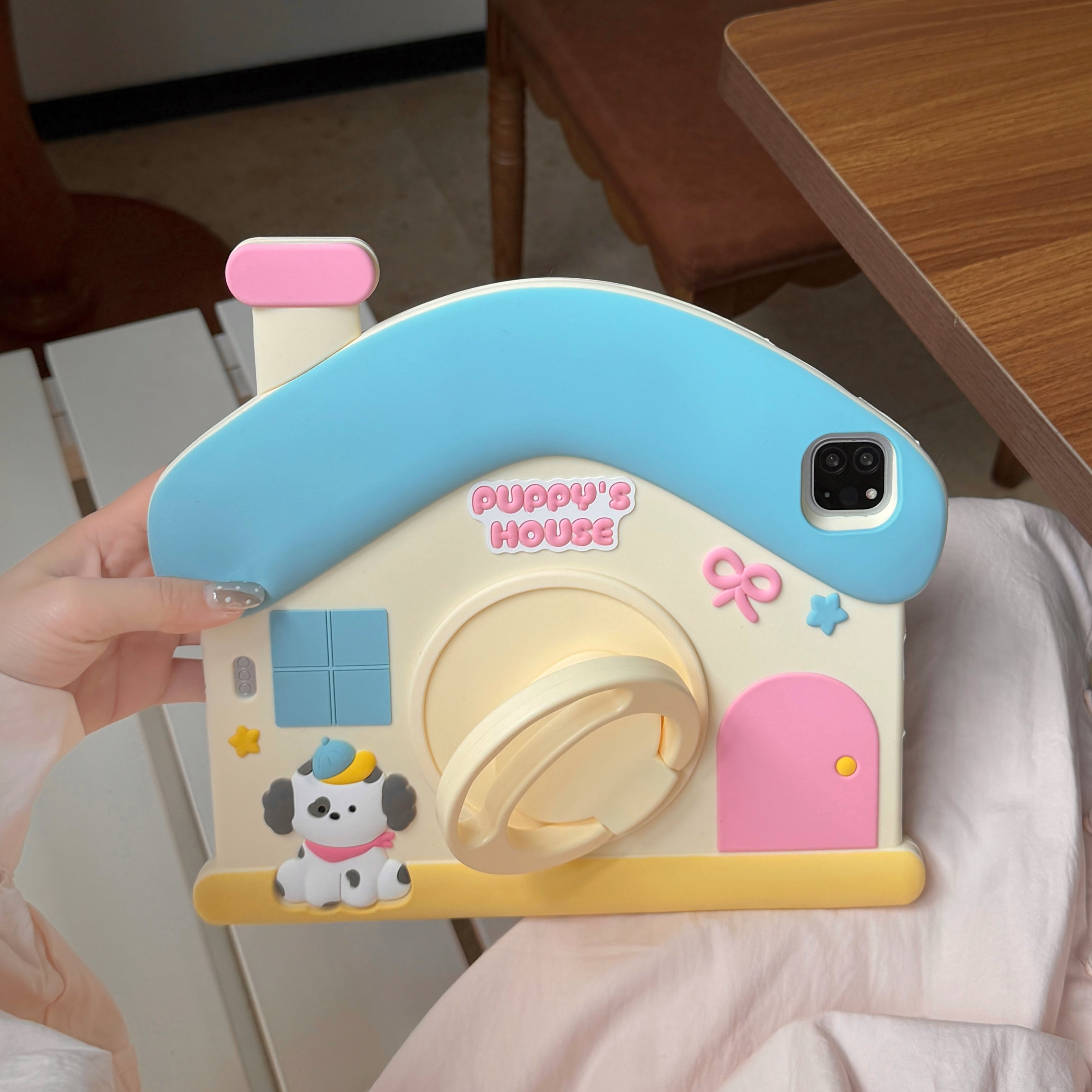 かわいい 360度回転リング付 ipadケース a16 第10/9/8/7世代 シリコン ipad air 第5世代 ipad mini7 ipad pro11 ケース 縦/横置き スタンド機能 犬の部屋