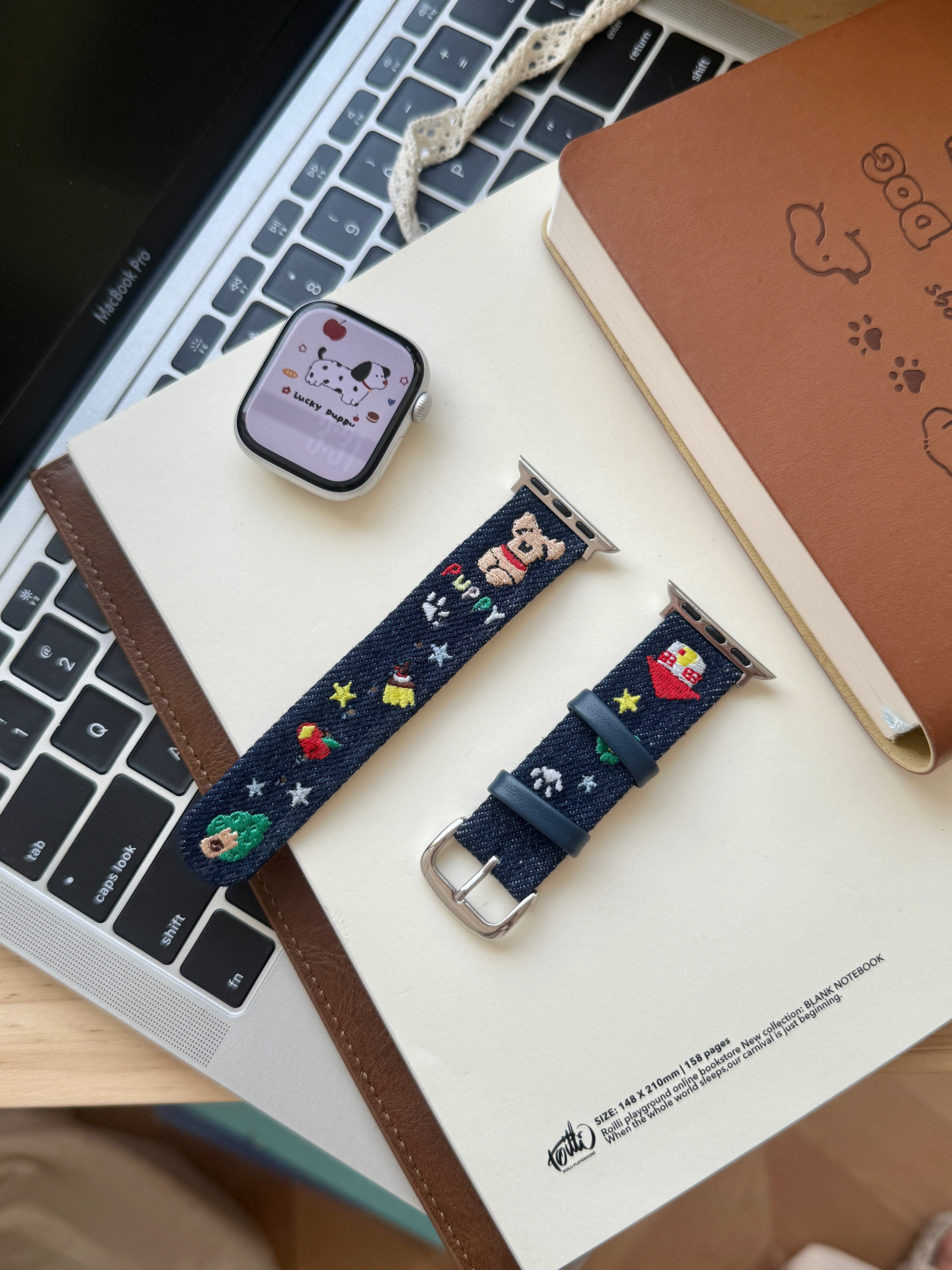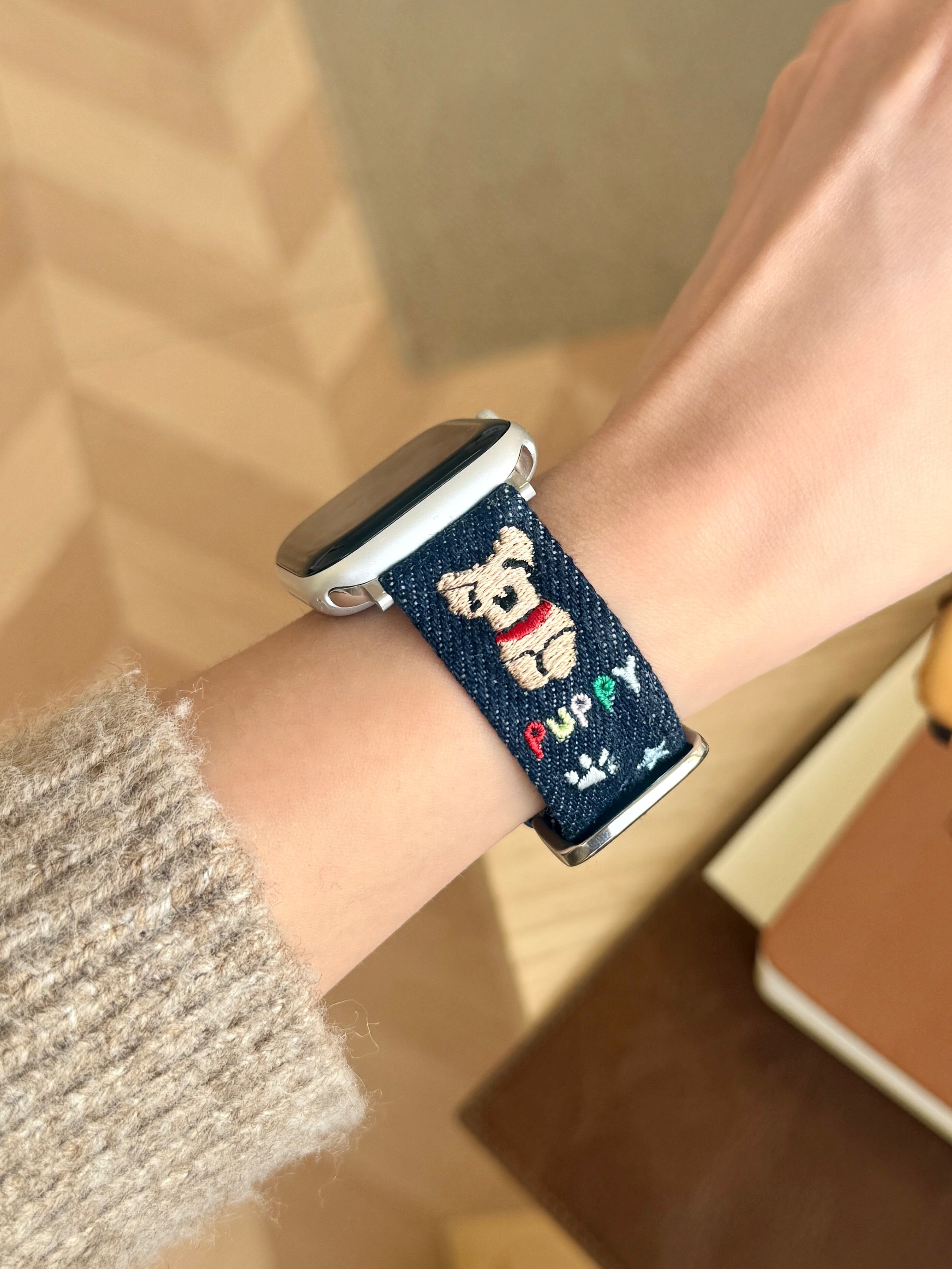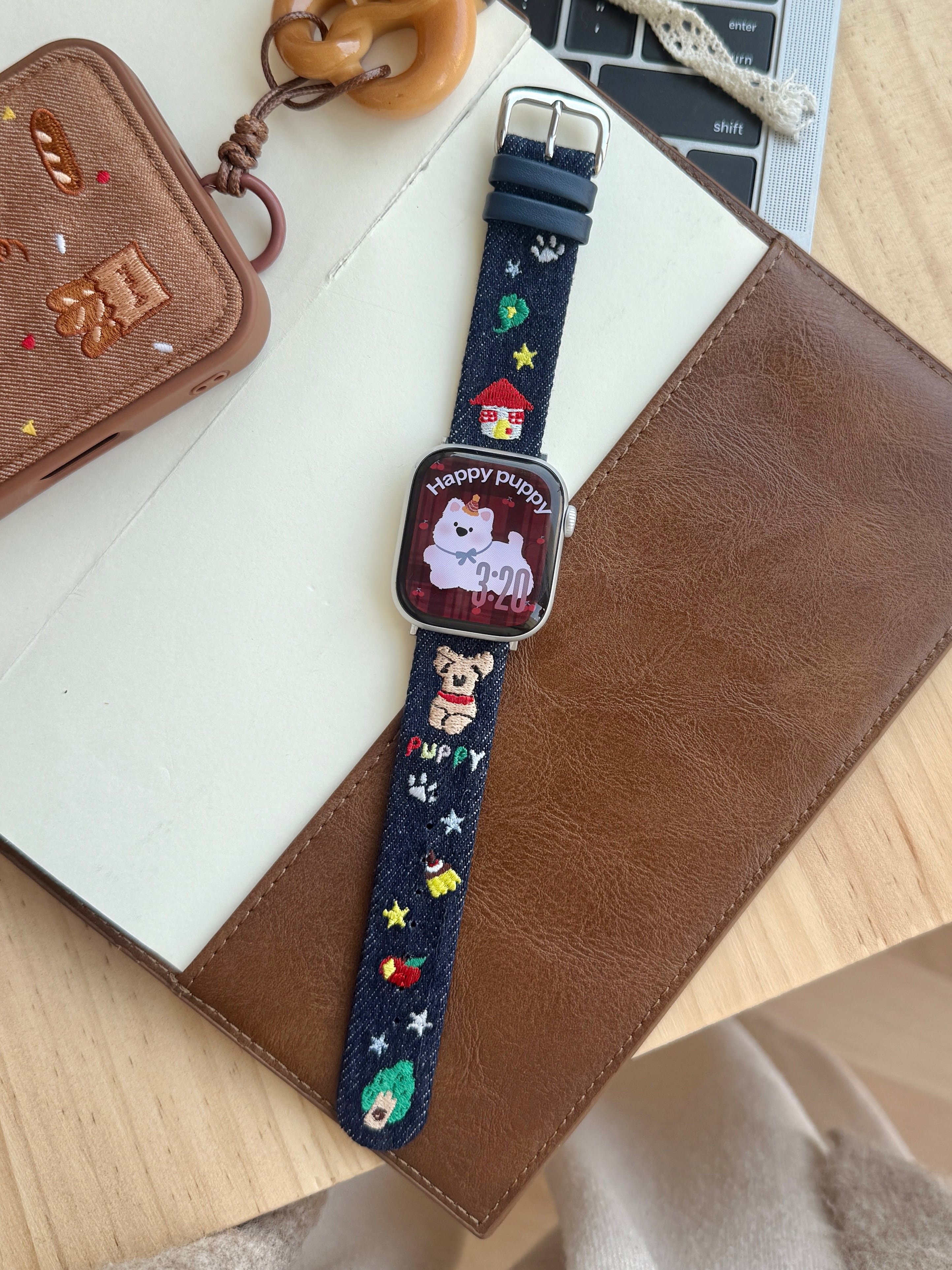 アニマル刺繍がかわいい!デニムApple Watchバンド