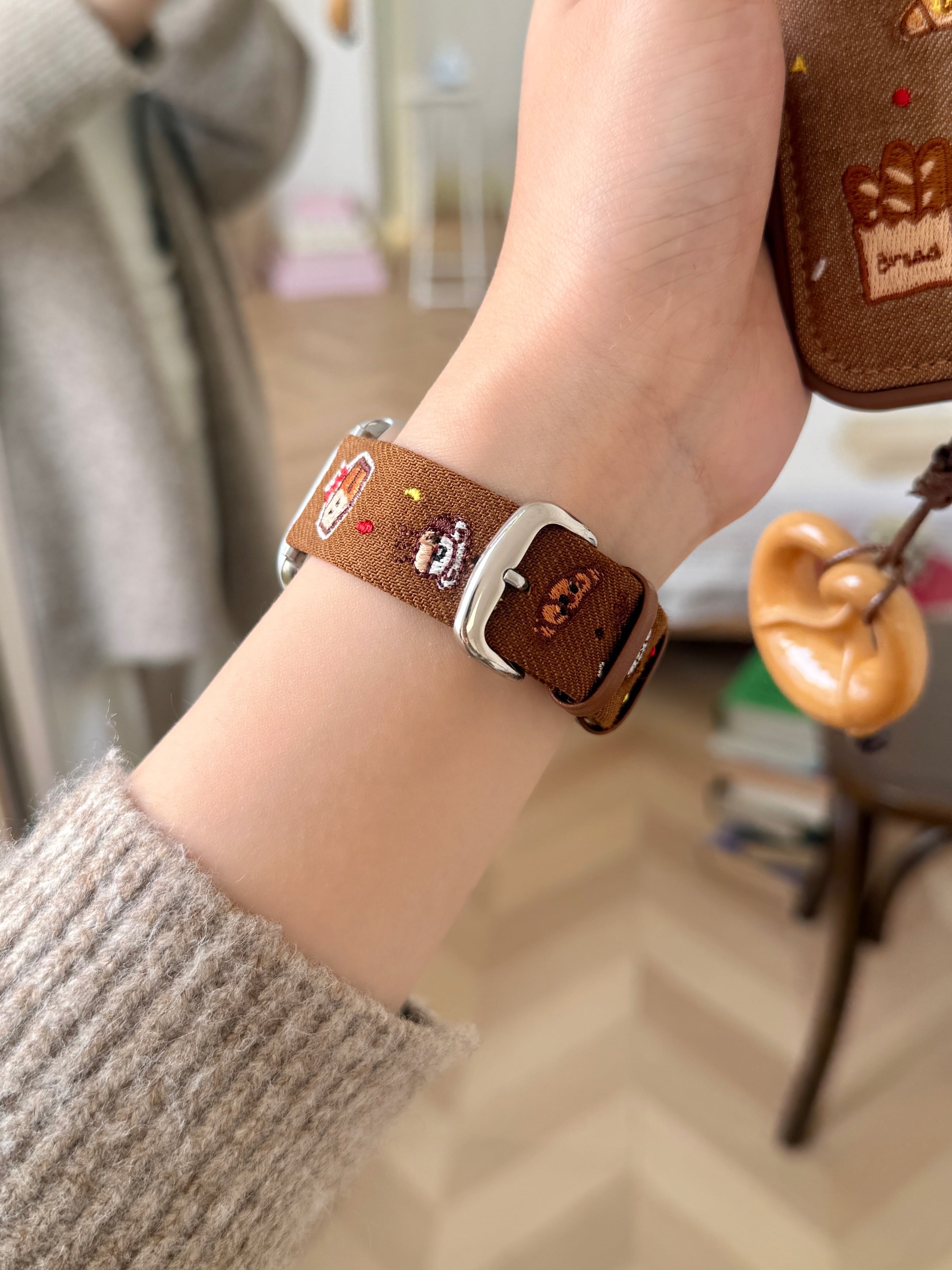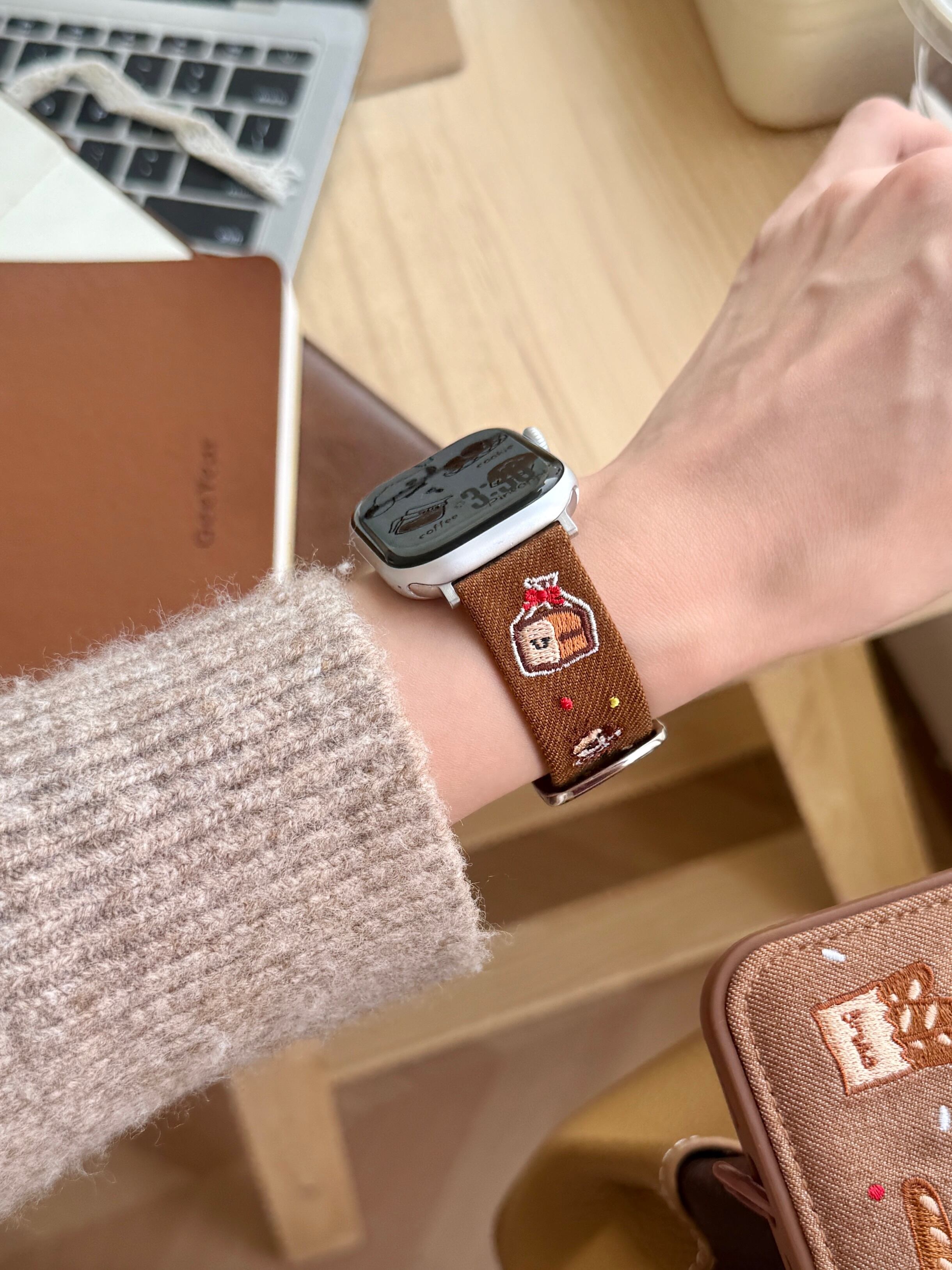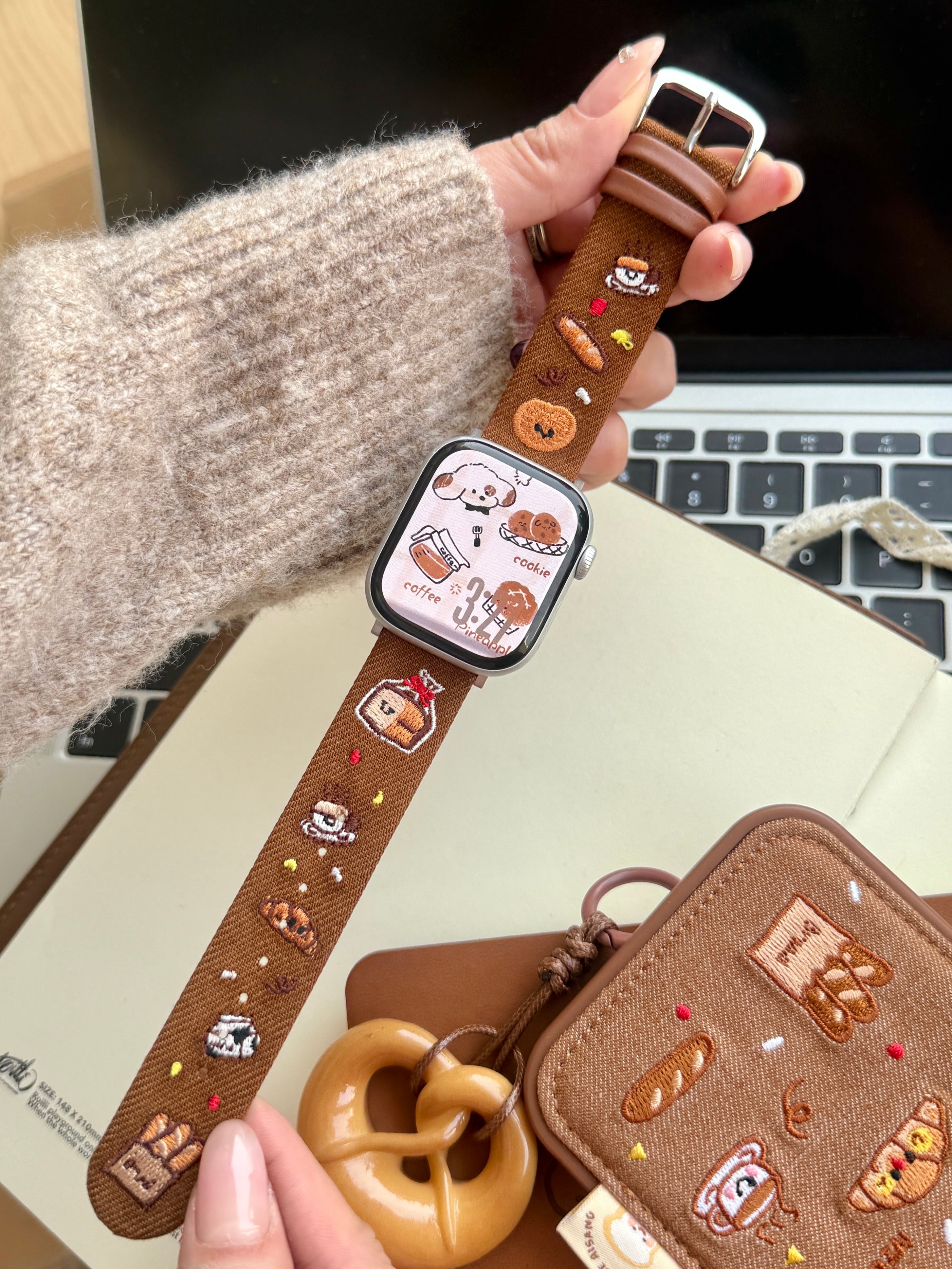 各種類のパンの刺繍がかわいい!デニムApple Watchバンド