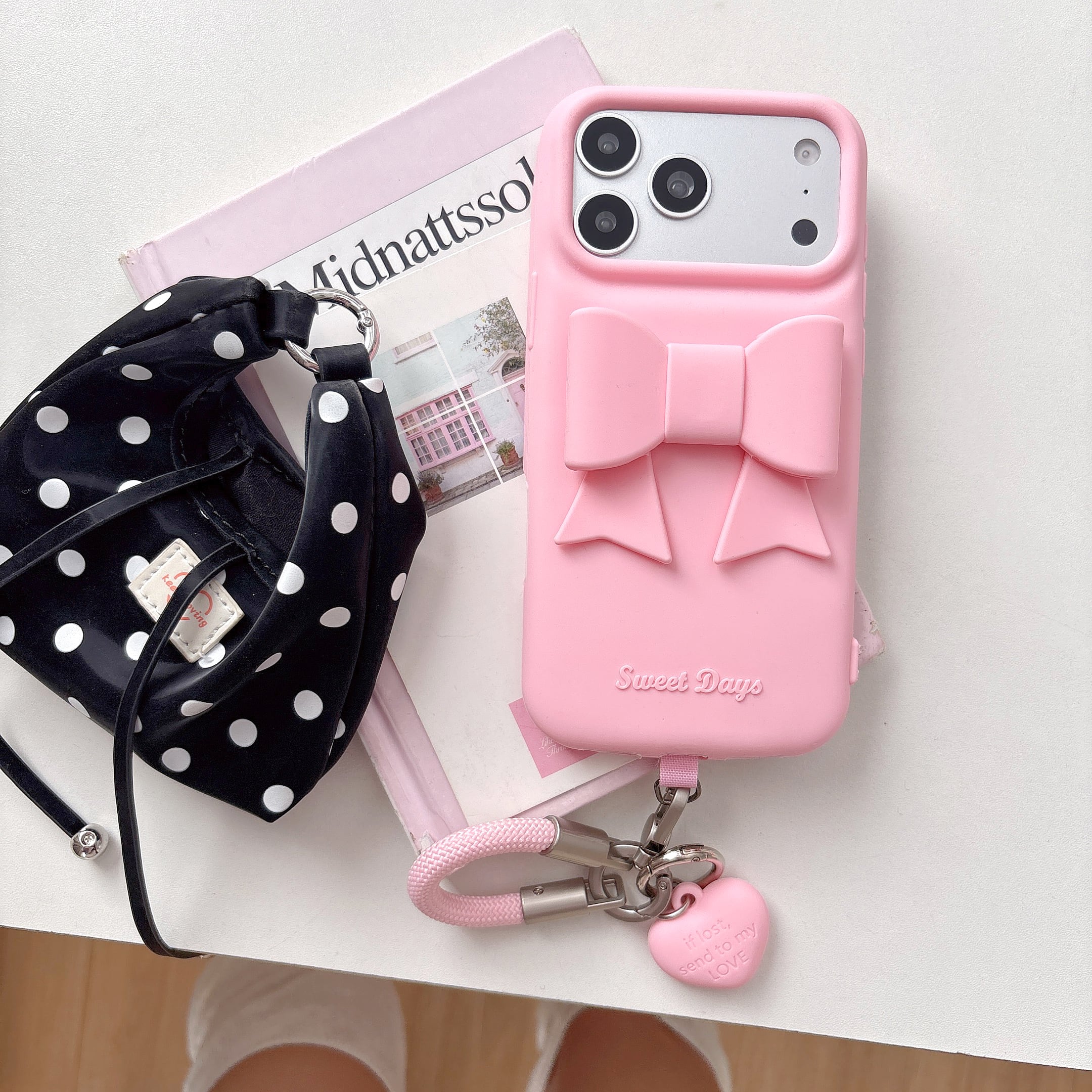 ストラップには可愛い ハート型チャームが付いており、