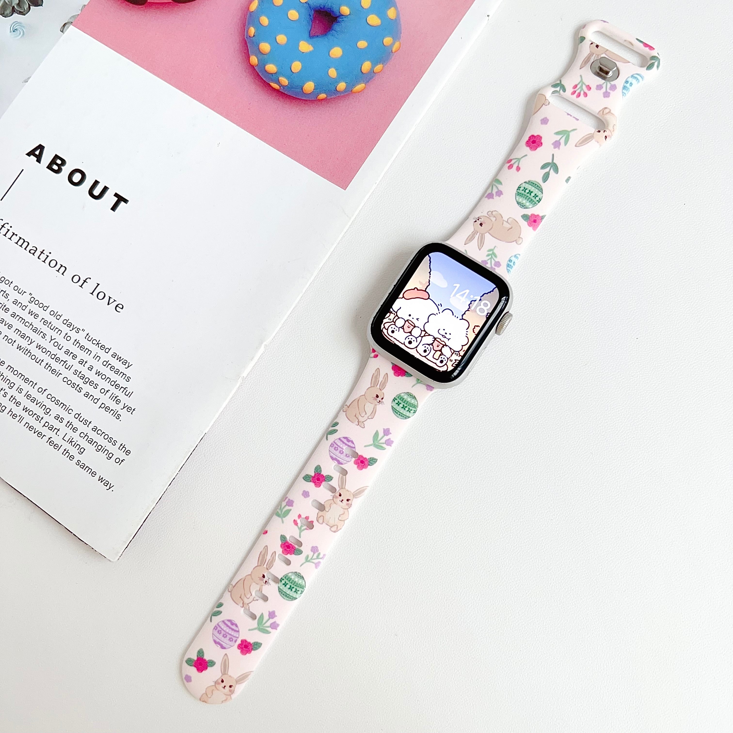 可愛い うさぎ Apple Watch シリコンバンド Series 11 10 9 8 7 SE対応 46 45 42 41mm 全機種対応 アップルウォッチ ベルト スポーツバンド かわいい ウサギ 花柄 韓国風