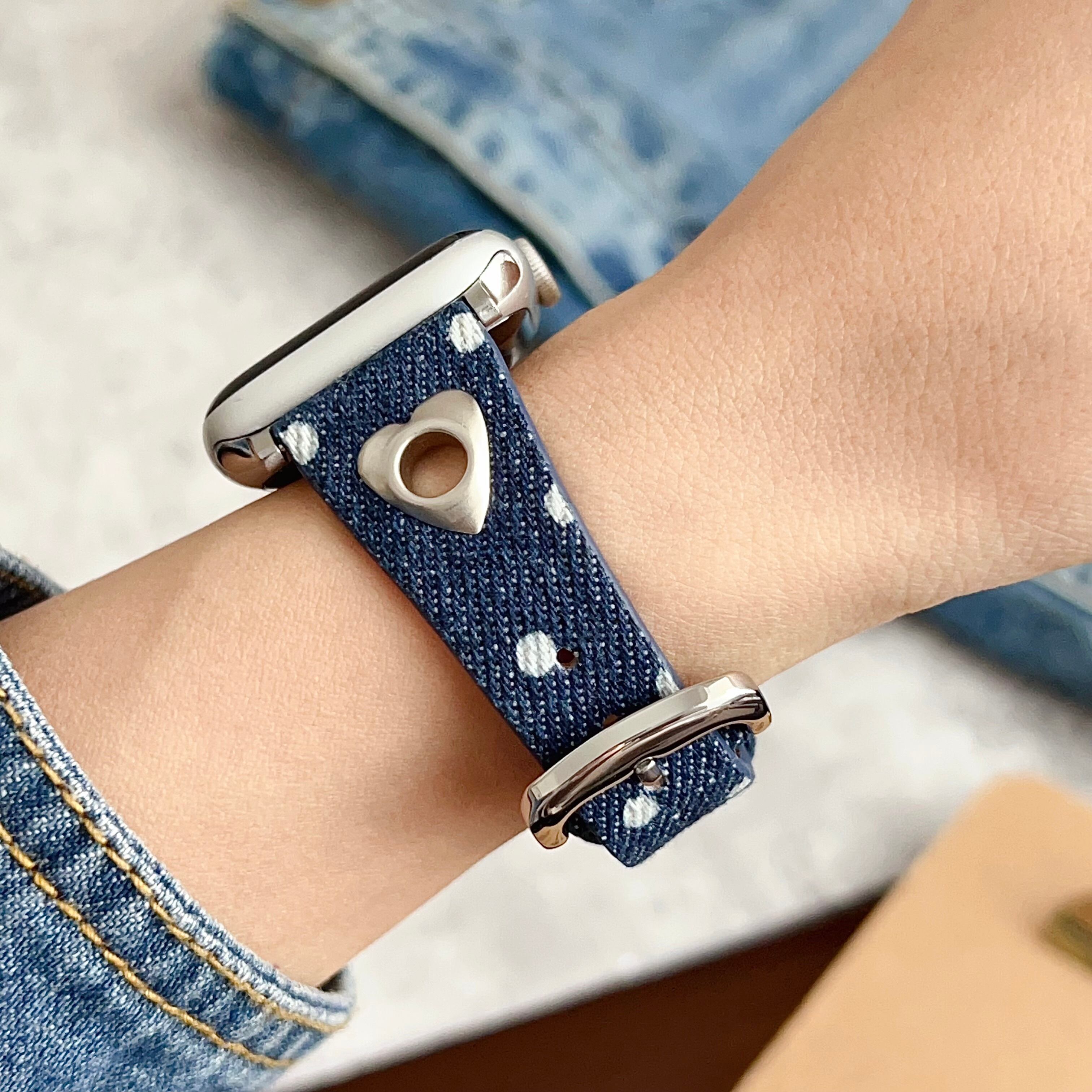 ハートのハトメがかわいい!デニムApple Watchバンド