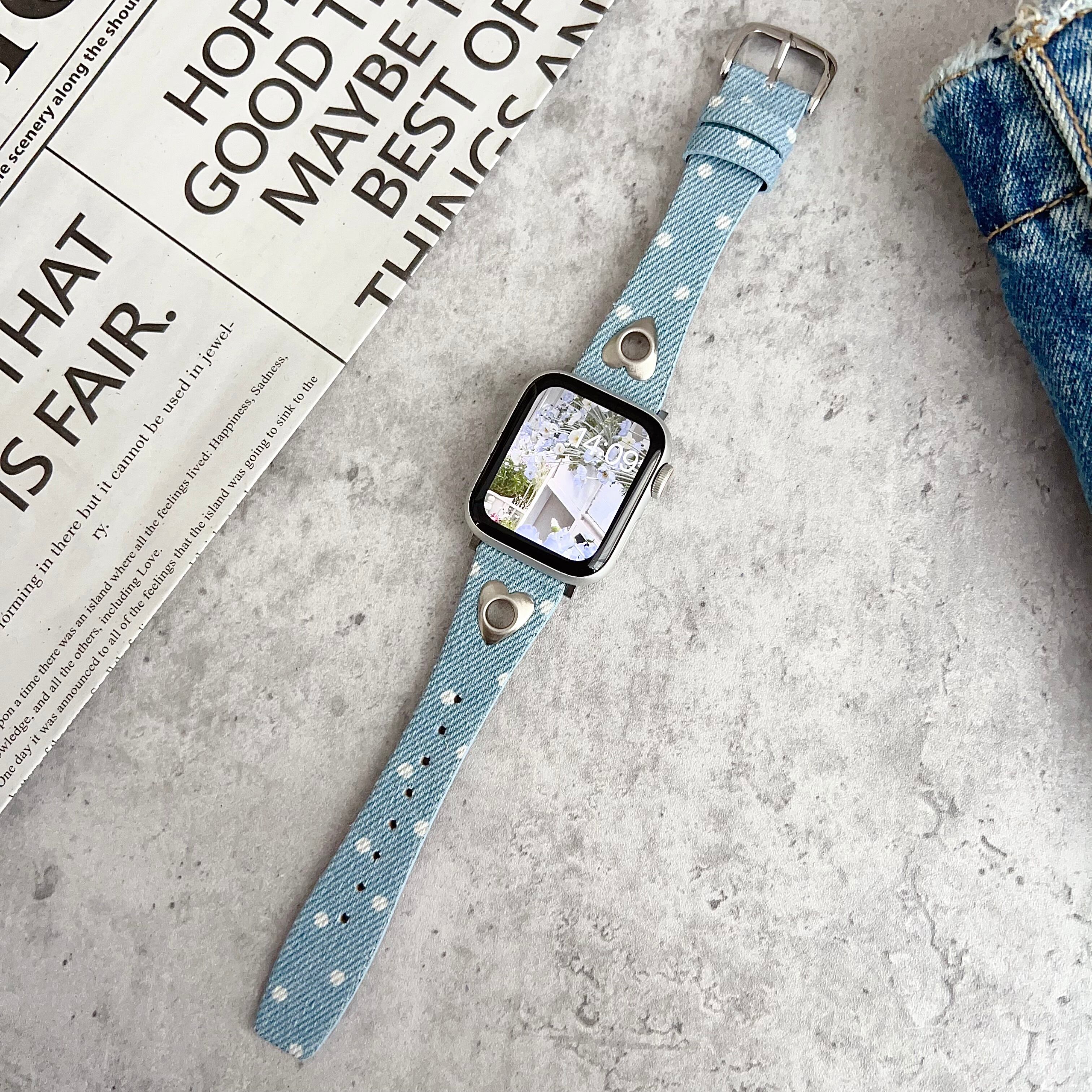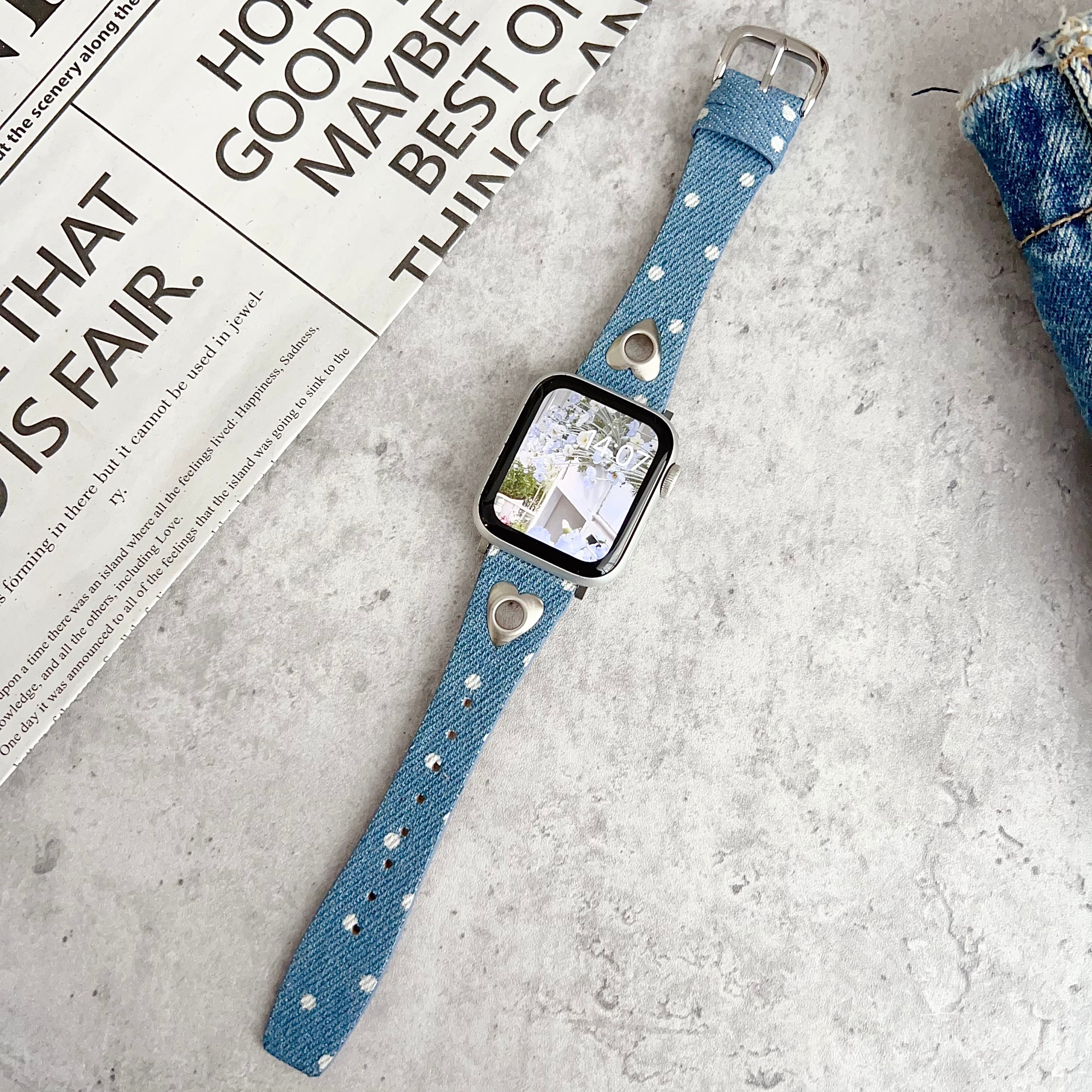 ハート&デニム Apple Watch バンド ドット柄 アップルウォッチバンド Series 11 10 9 SE3 Ultra3 対応 交換ベルト おしゃれ