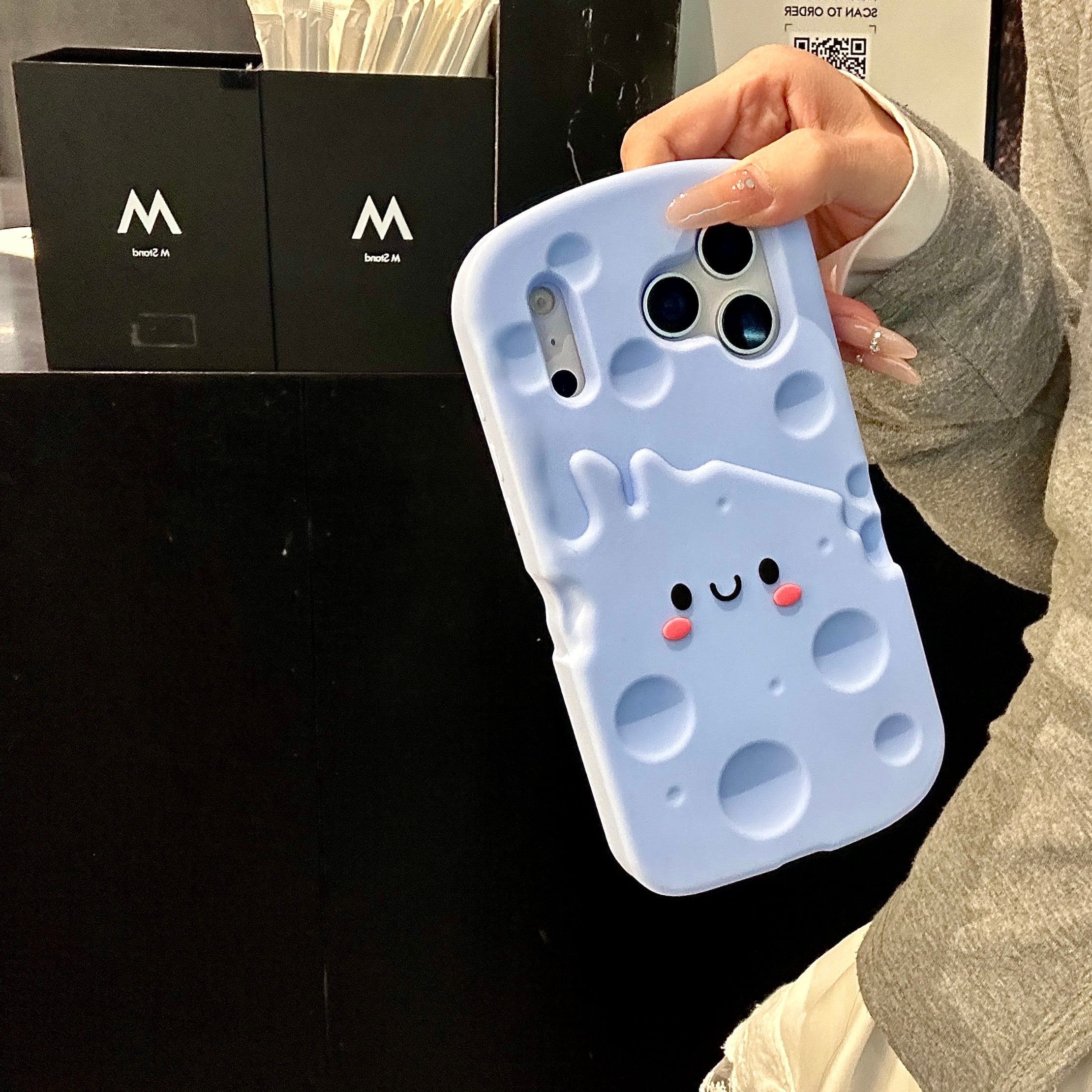 スモークブルー iPhone 17 16 15 14 13 ケース 可愛い シリコン スマホケース かわいい チーズ 耐衝撃