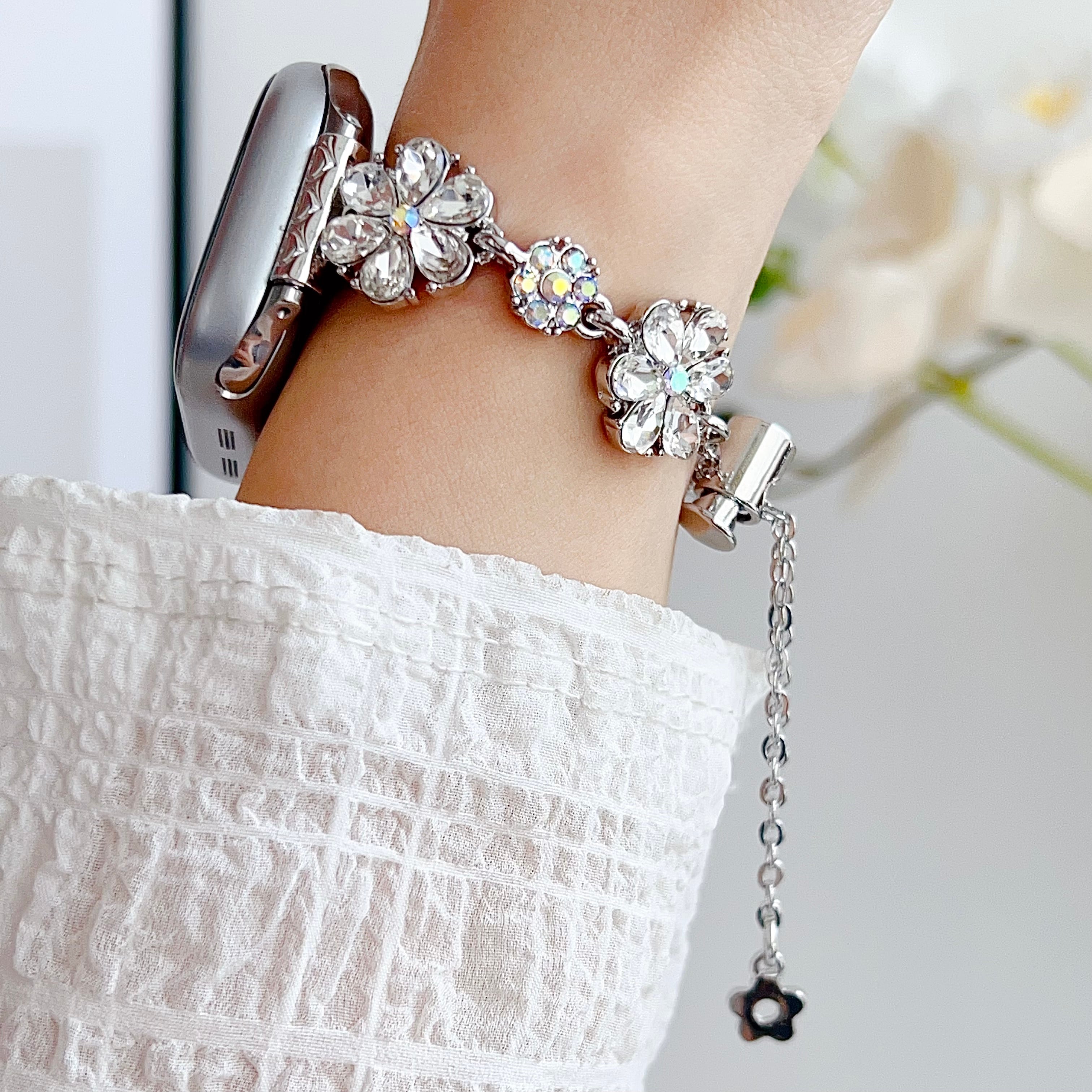ブレスレット風 Apple Watch バンド キラキラ ジュエリー フラワー ラインストーン 合金 Series 11 10 9 8 7 SE対応 46 45 42 41mm アップルウォッチ ベルト 全機種対応
