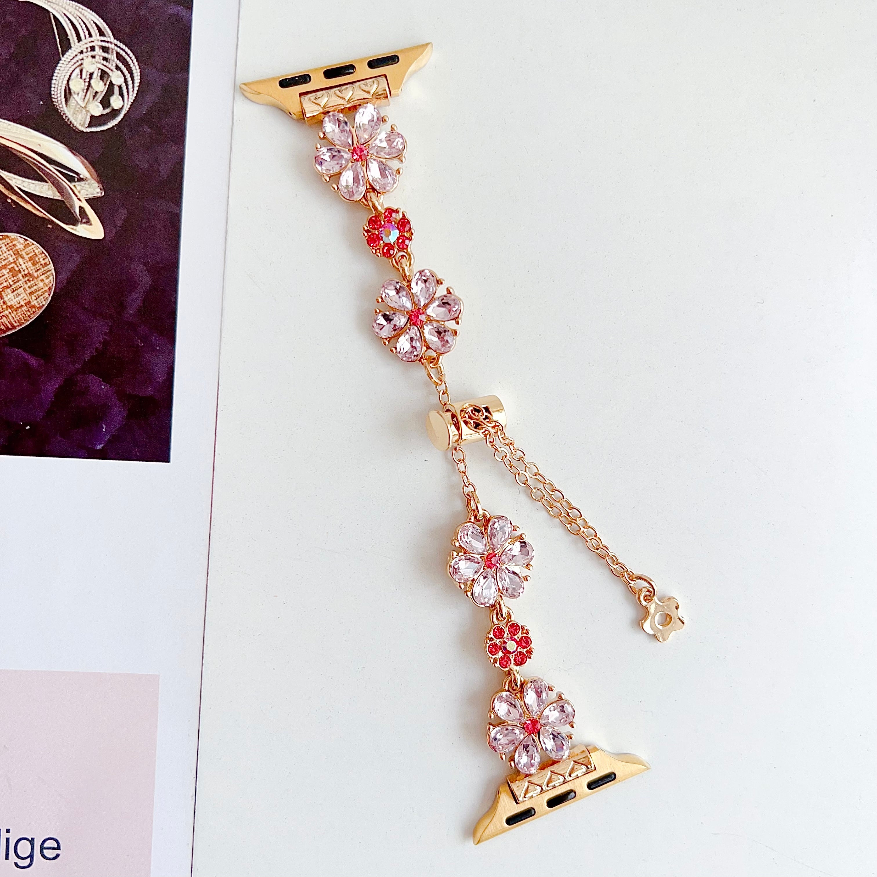 ブレスレット風 Apple Watch バンド キラキラ ジュエリー フラワー ラインストーン 合金 Series 11 10 9 8 7 SE対応 46 45 42 41mm アップルウォッチ ベルト 全機種対応