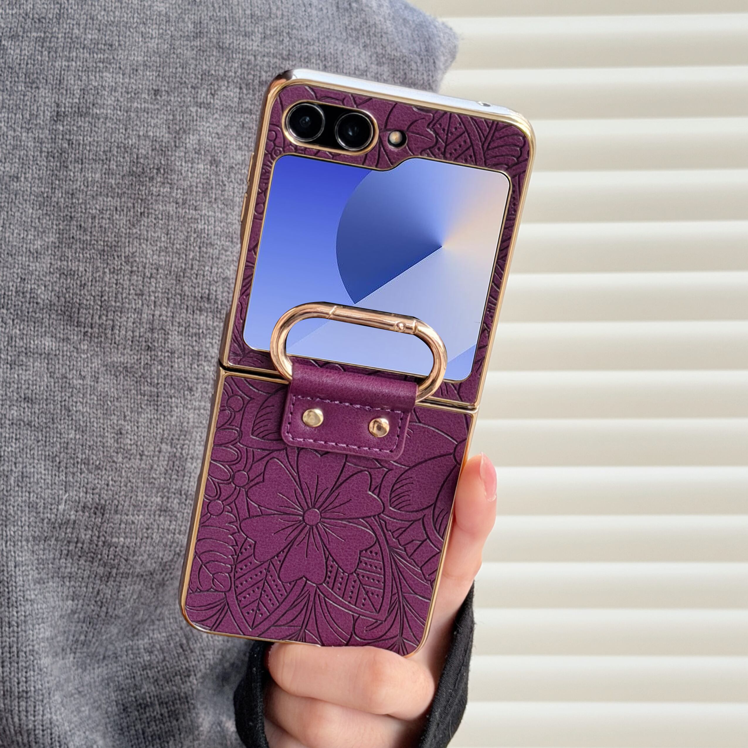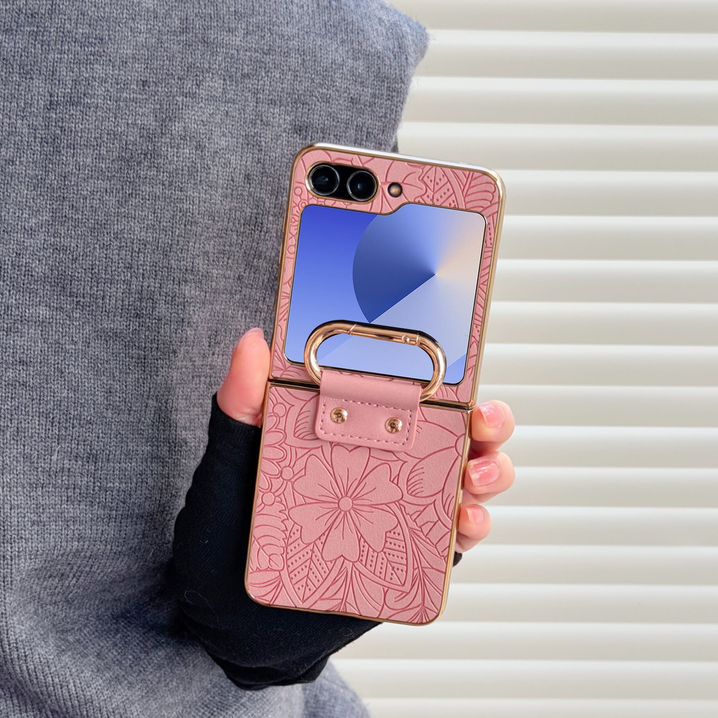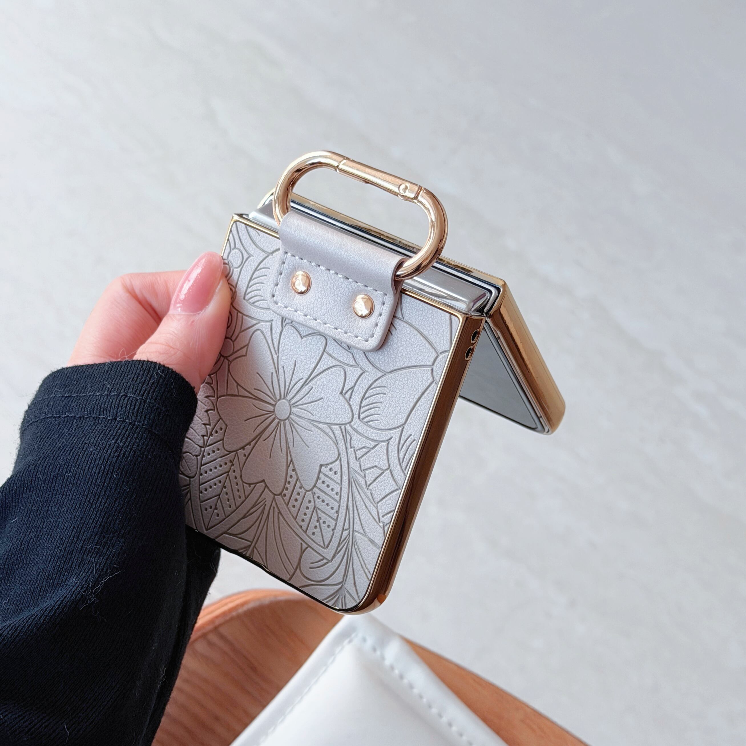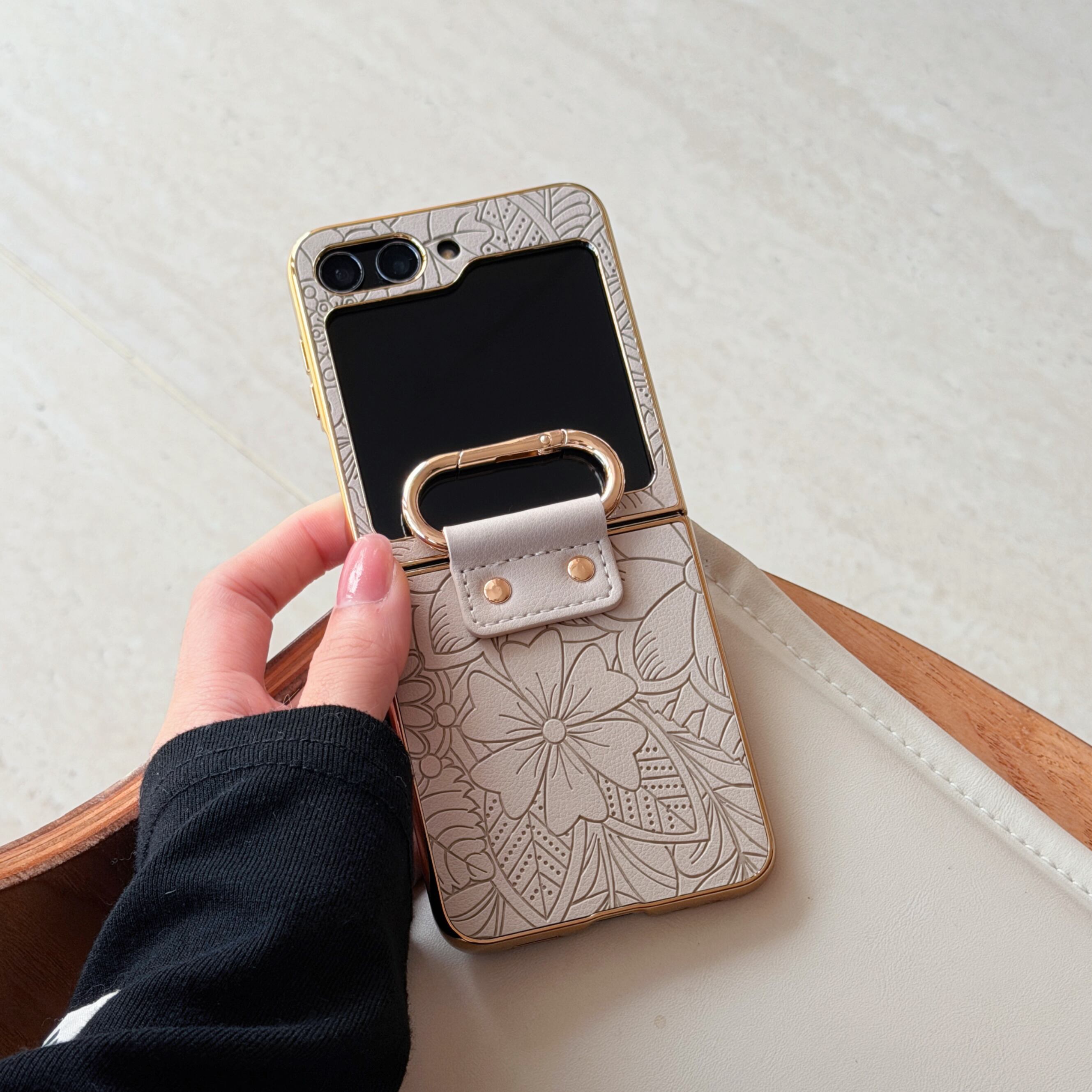 型押し Galaxy Z Flip 7 6 5 4 ケース おしゃれ ボタニカル柄 カラビナ付き スマホケース