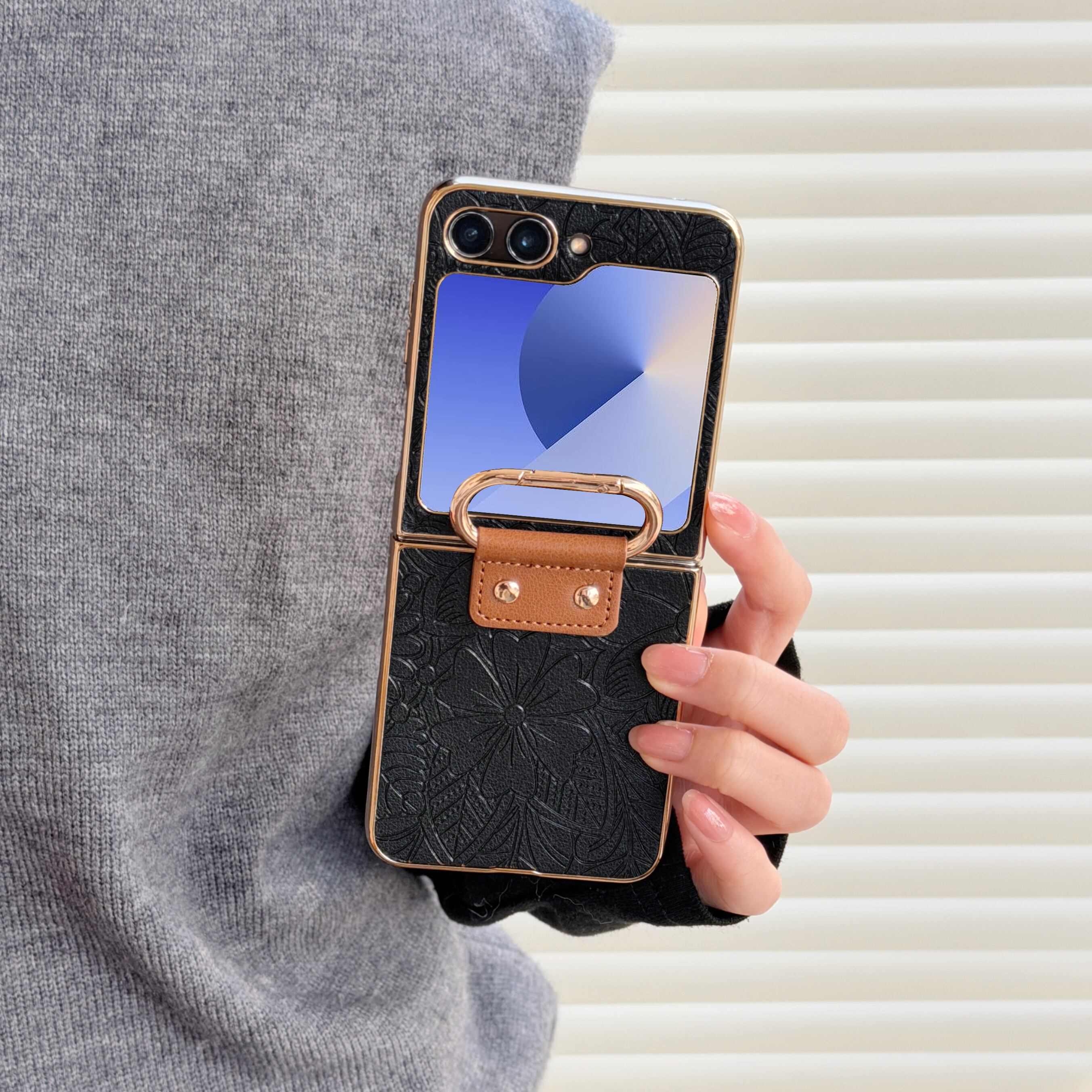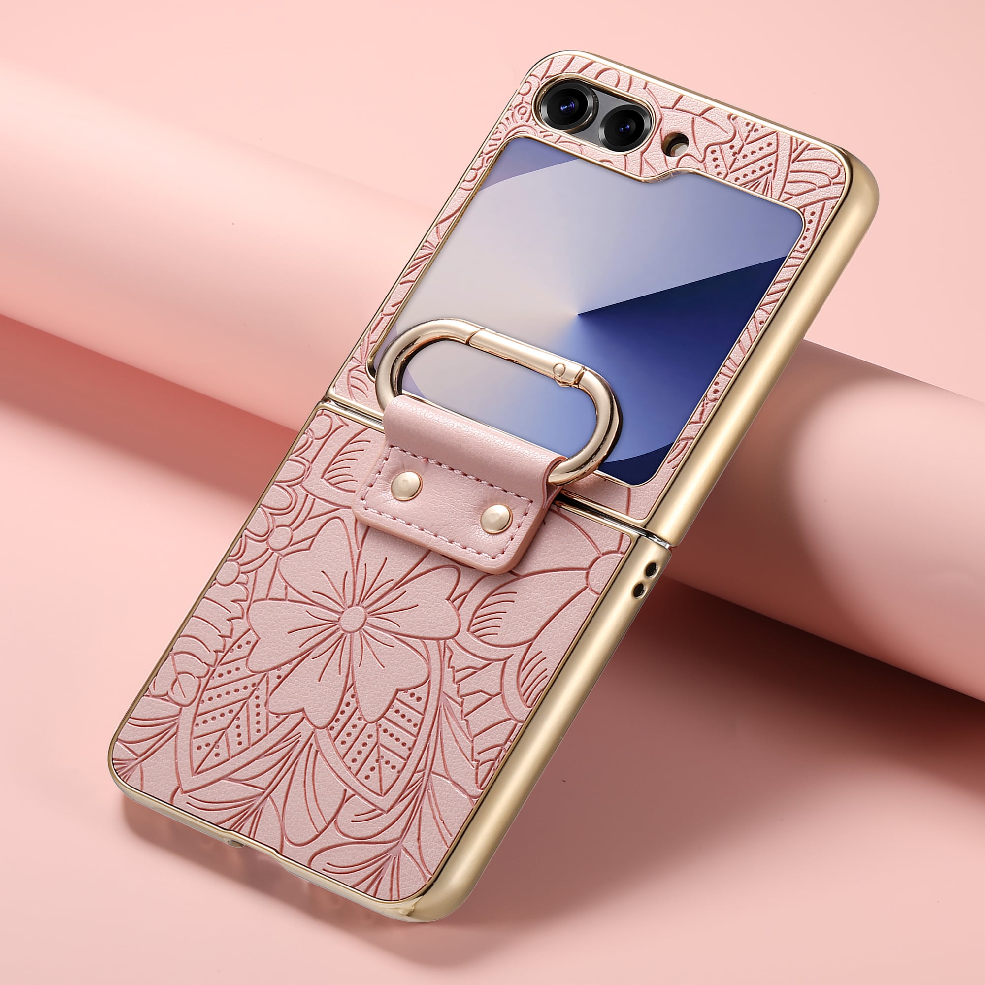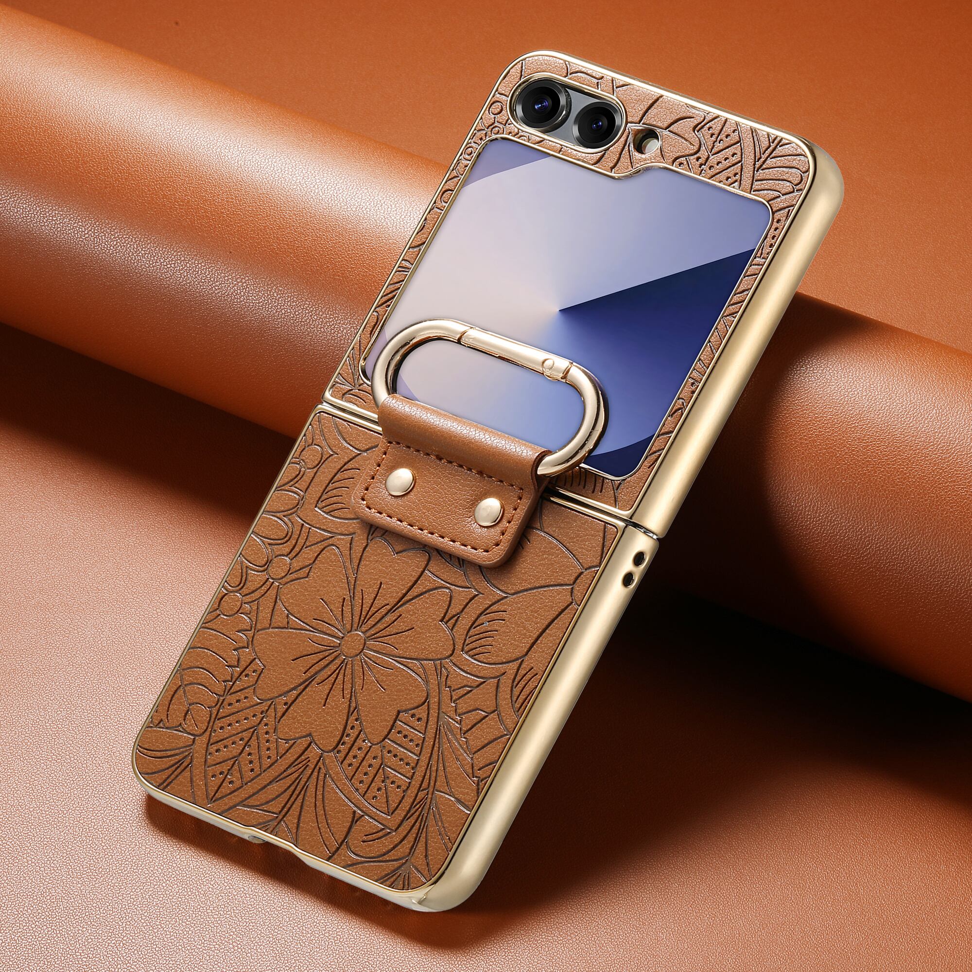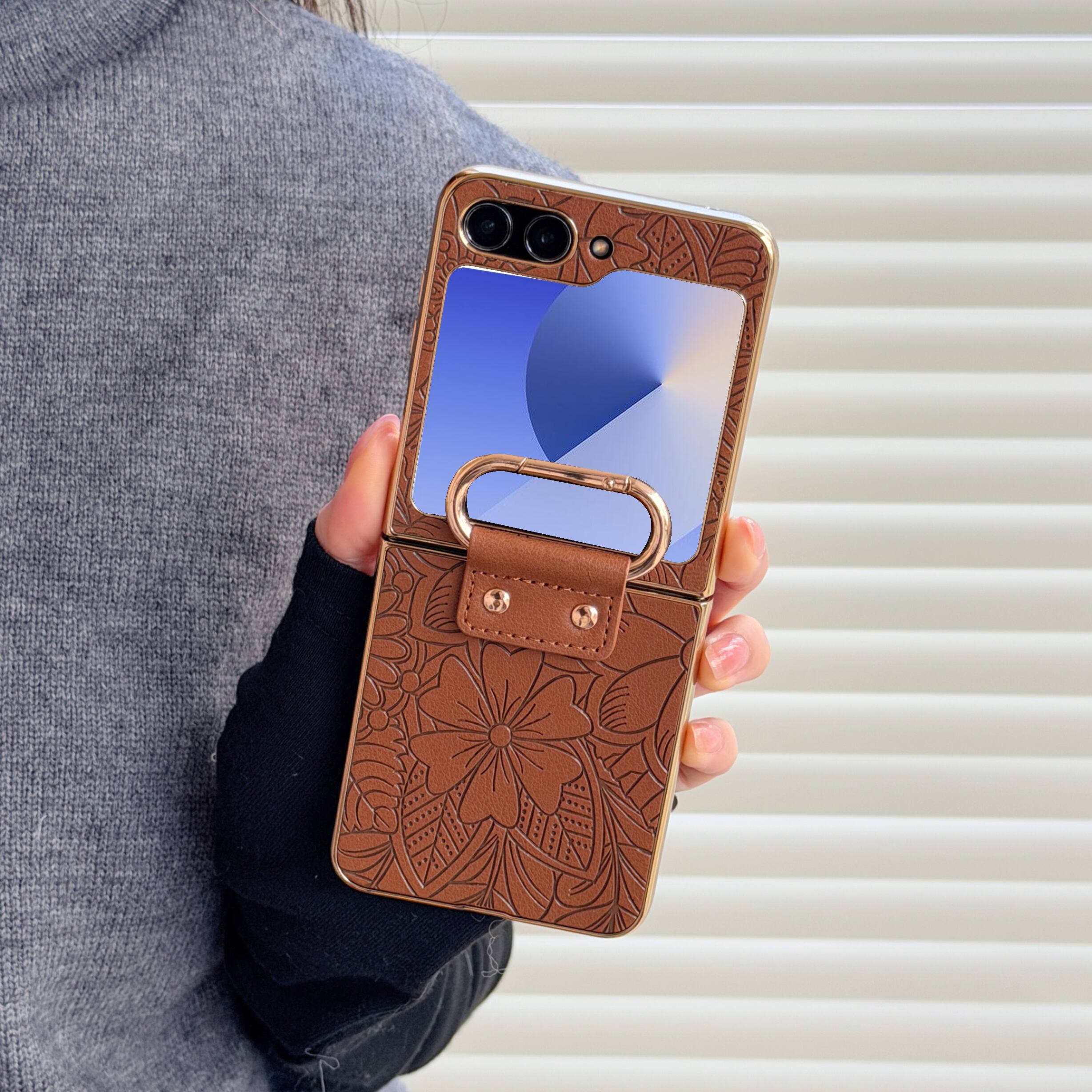 型押し Galaxy Z Flip 7 6 5 4 ケース おしゃれ ボタニカル柄 カラビナ付き スマホケース