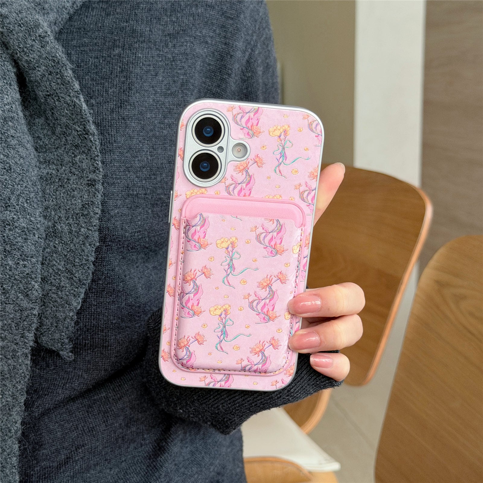 iPhoneケースと、お揃いデザインのカードポケットがセットになって登場しました。