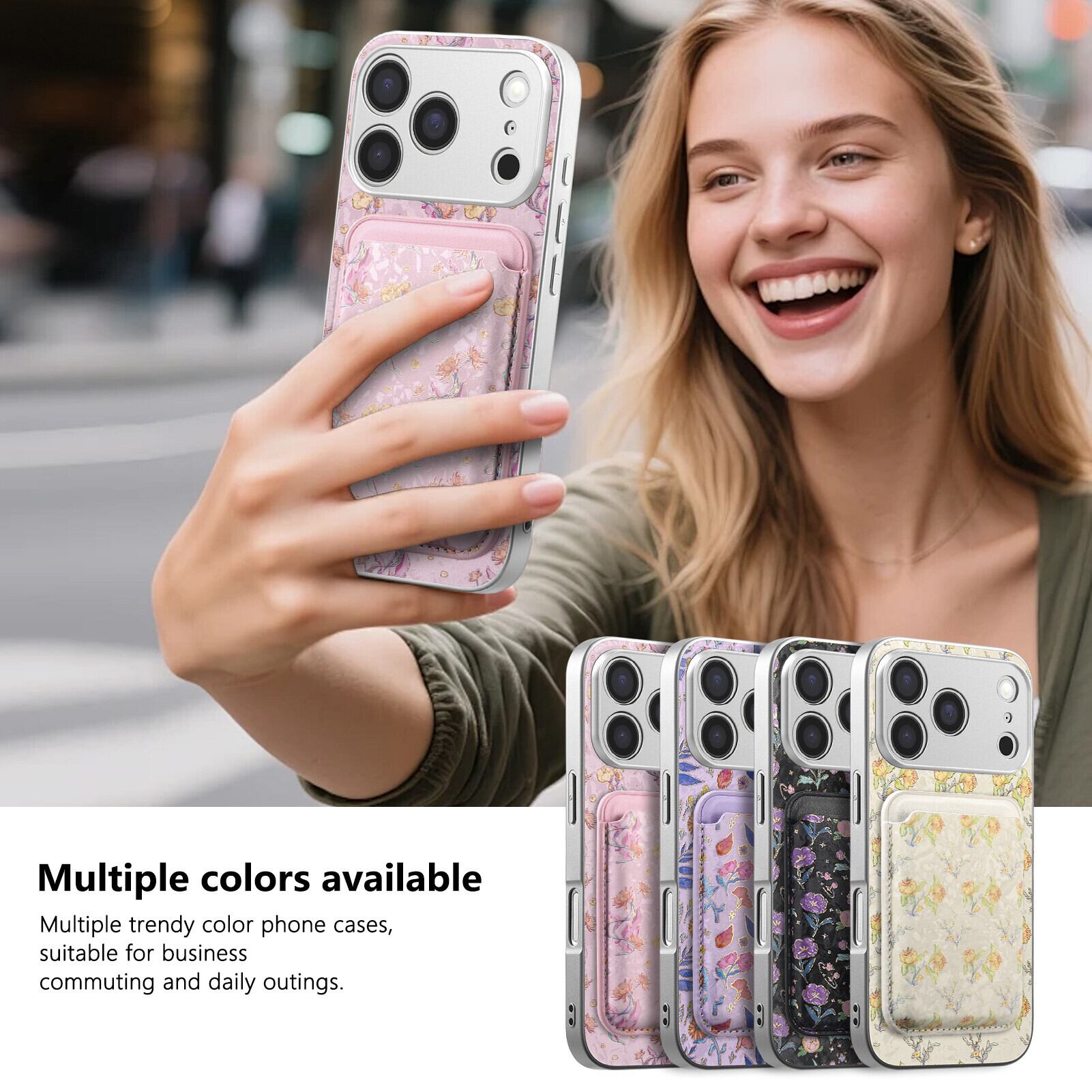 MagSafe対応 ボタニカル柄 iPhone 17 16 15 14 13 ケース 着脱式カードポケット 大人可愛い 磁気吸着 フルカバー