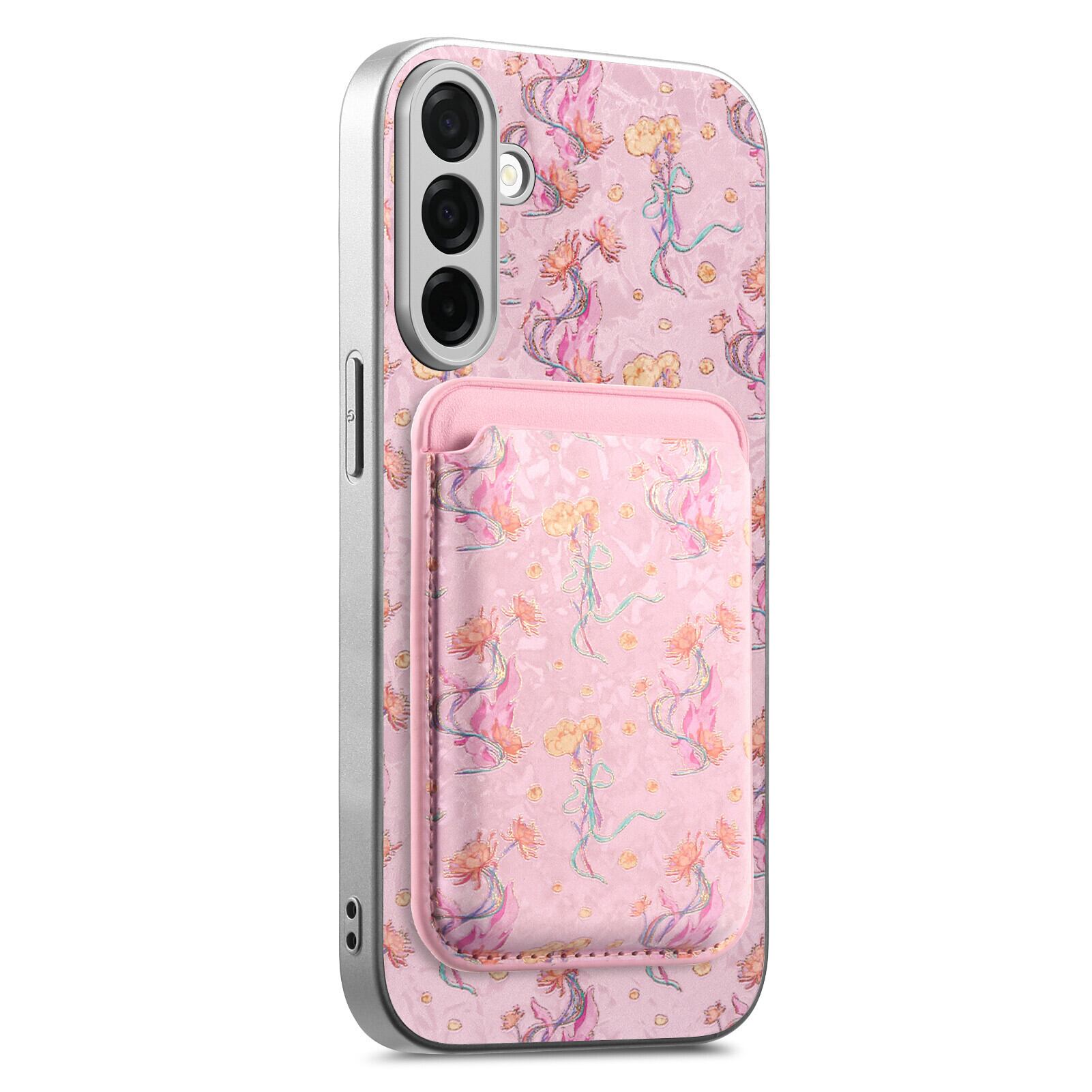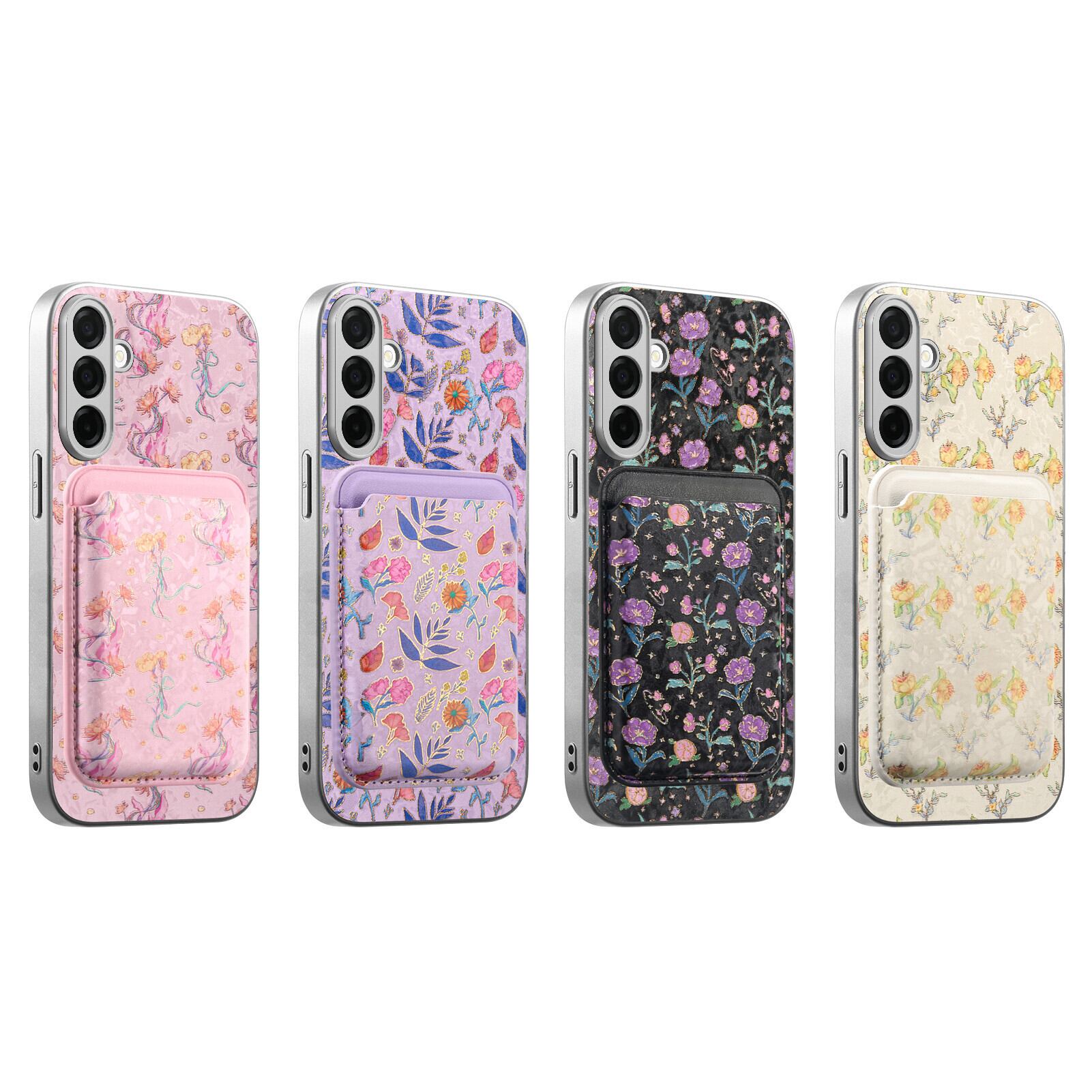 MagSafe対応 ボタニカル柄 Galaxy S26 S25 S24 A36 ケース 着脱式カードポケット 大人可愛い 磁気吸着 フルカバー