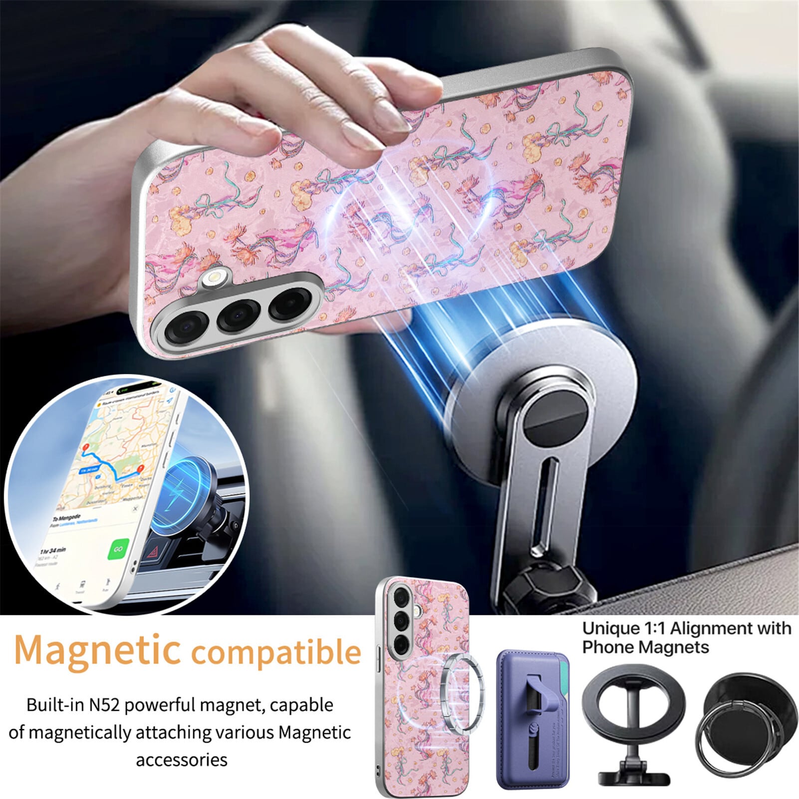 マグネット式充電器や車載ホルダーにピタッと吸着し、