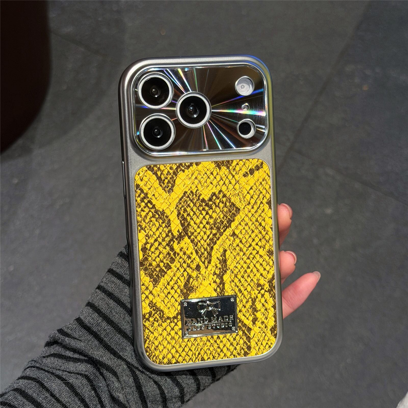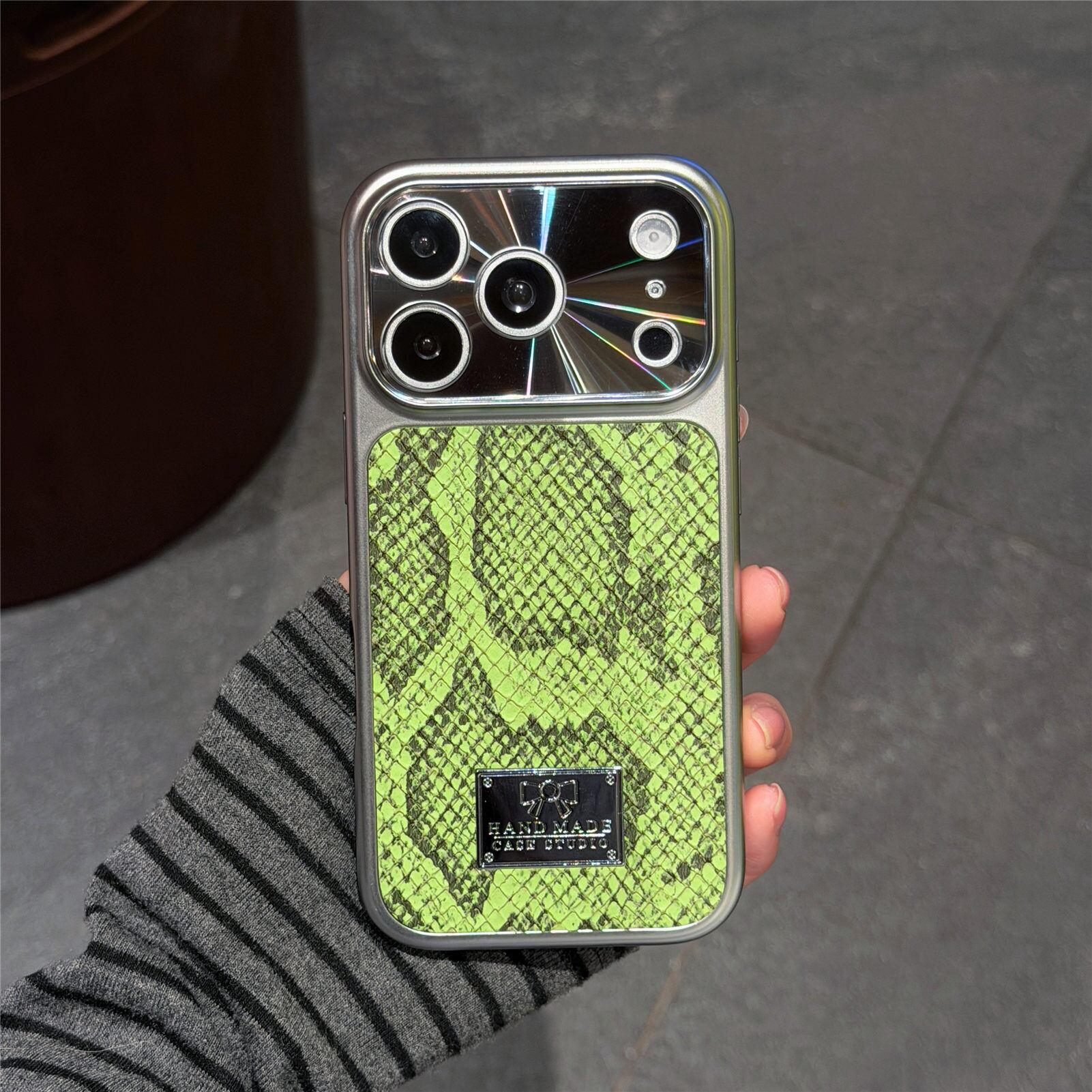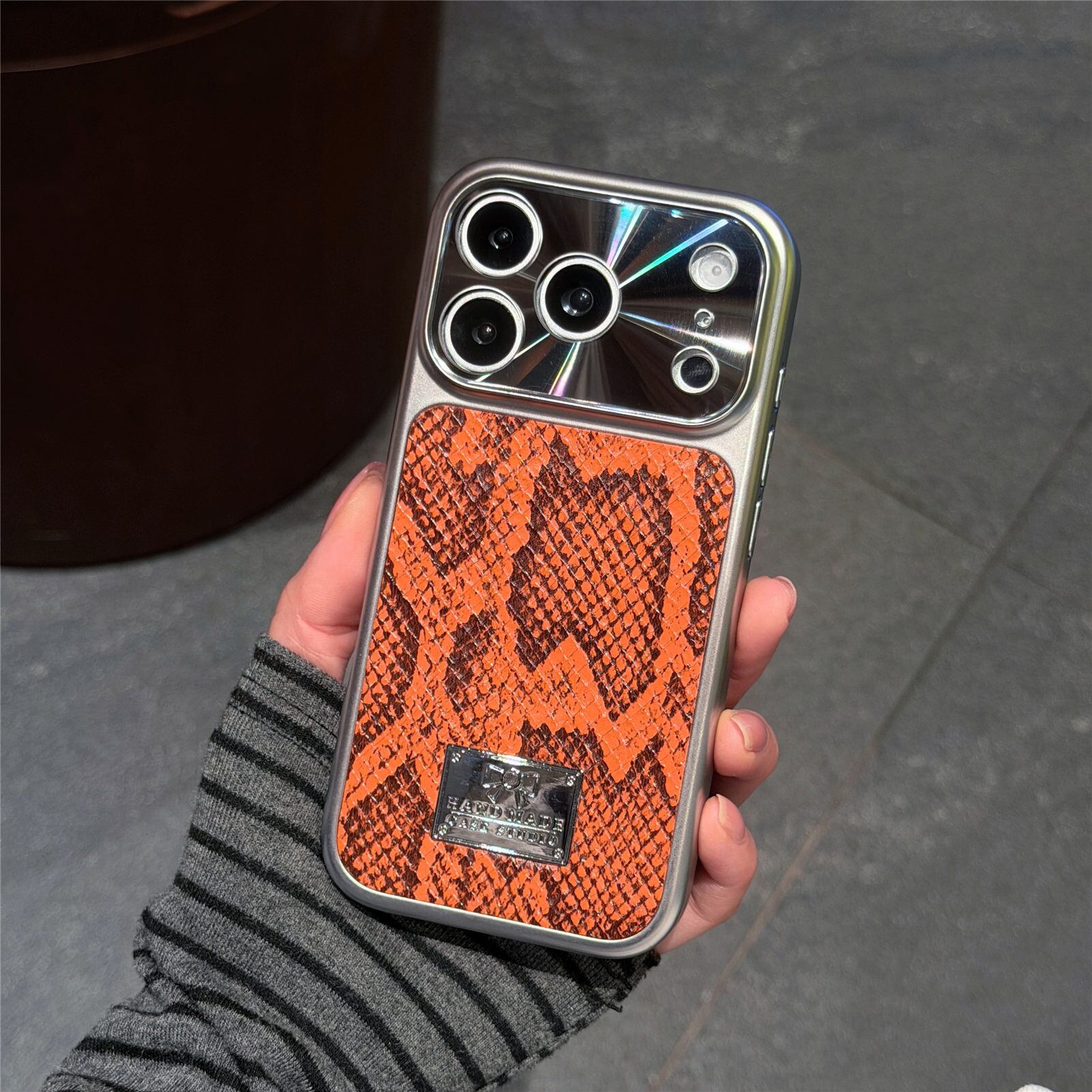 洗練されたパイソン(蛇)柄と、美しく輝くメッキフレームを組み合わせた、