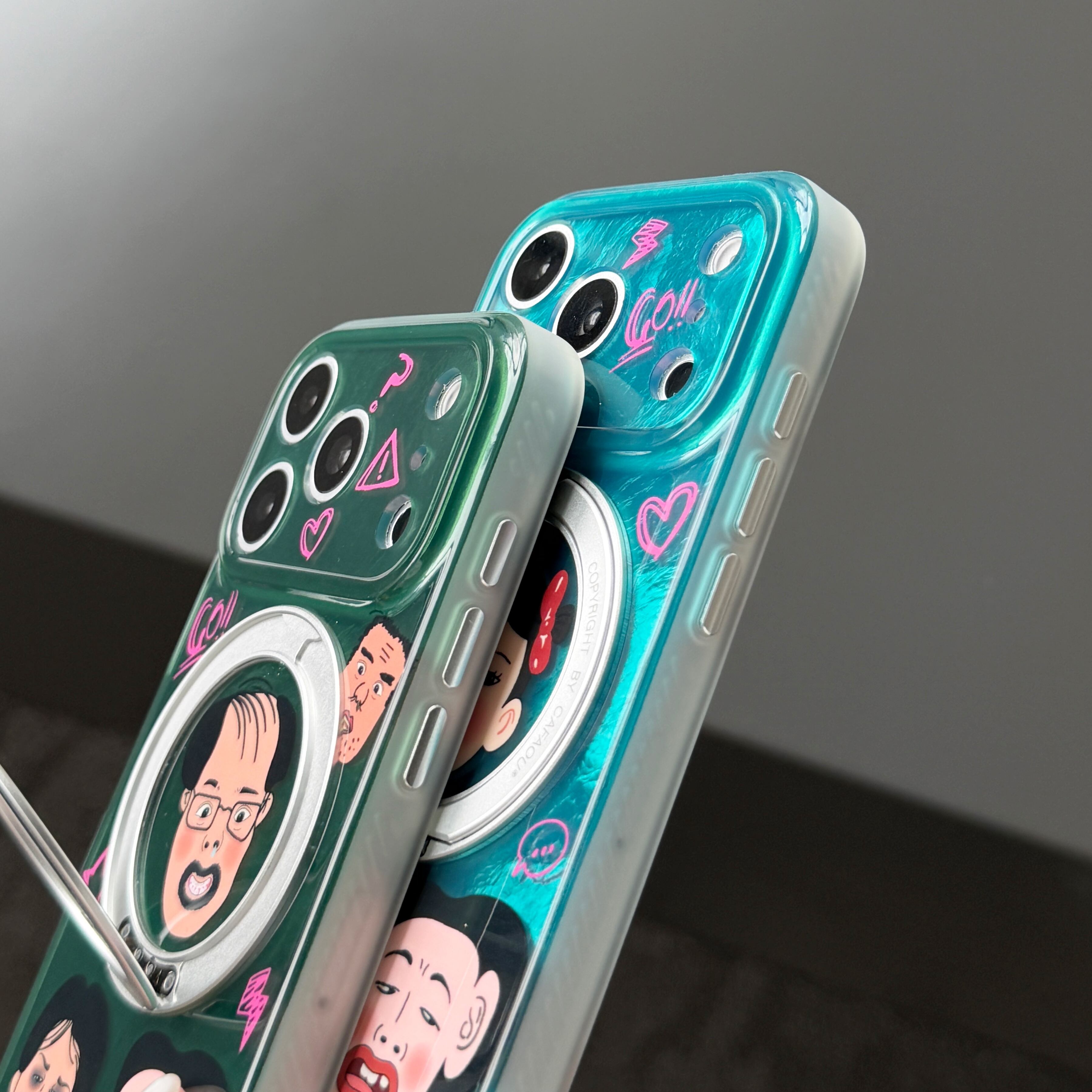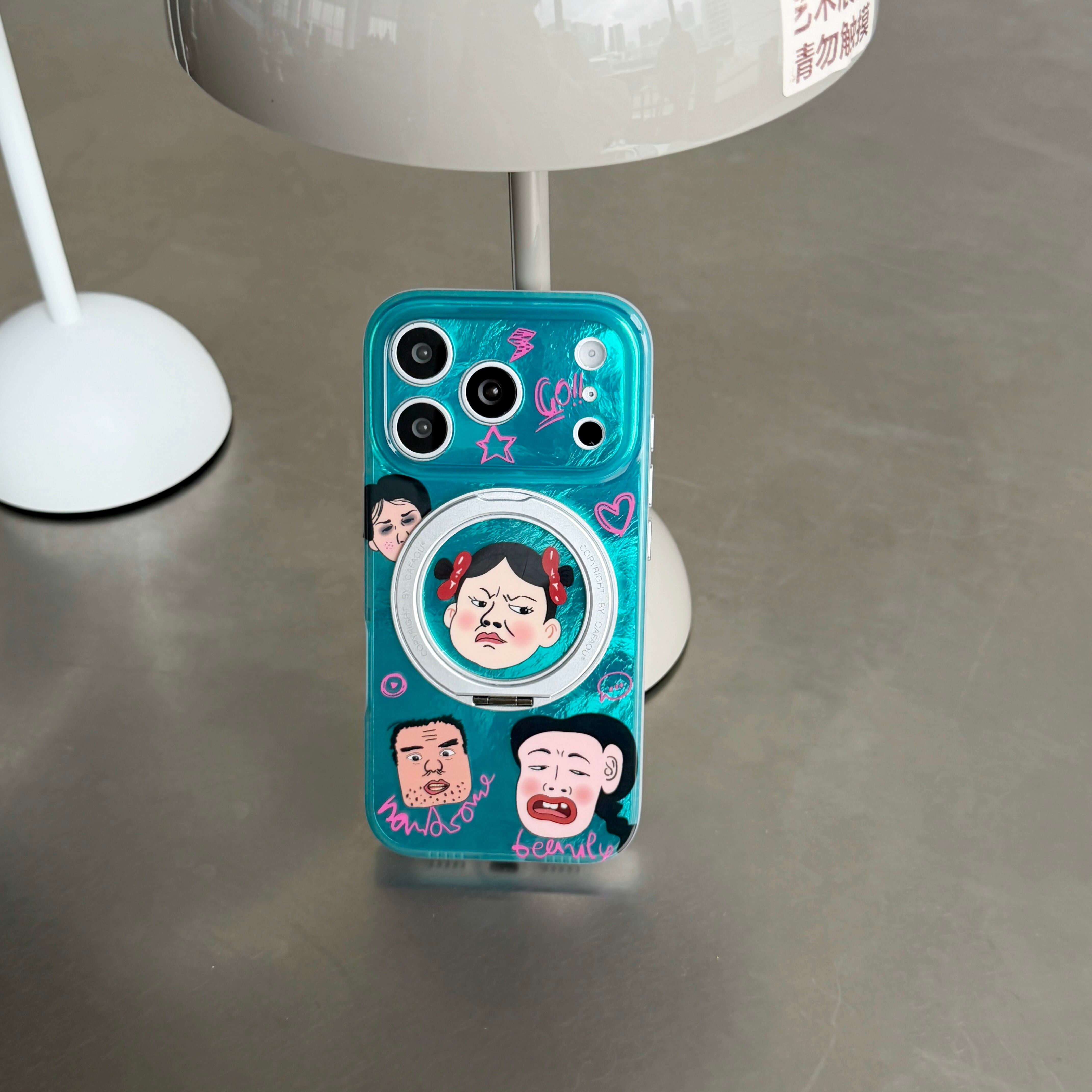 ブサイク iPhone 17 16 15 ケース 360度回転スタンド 二重IMD 耐衝撃 ハイブリッドケース スマホケース ユニーク おもしろ