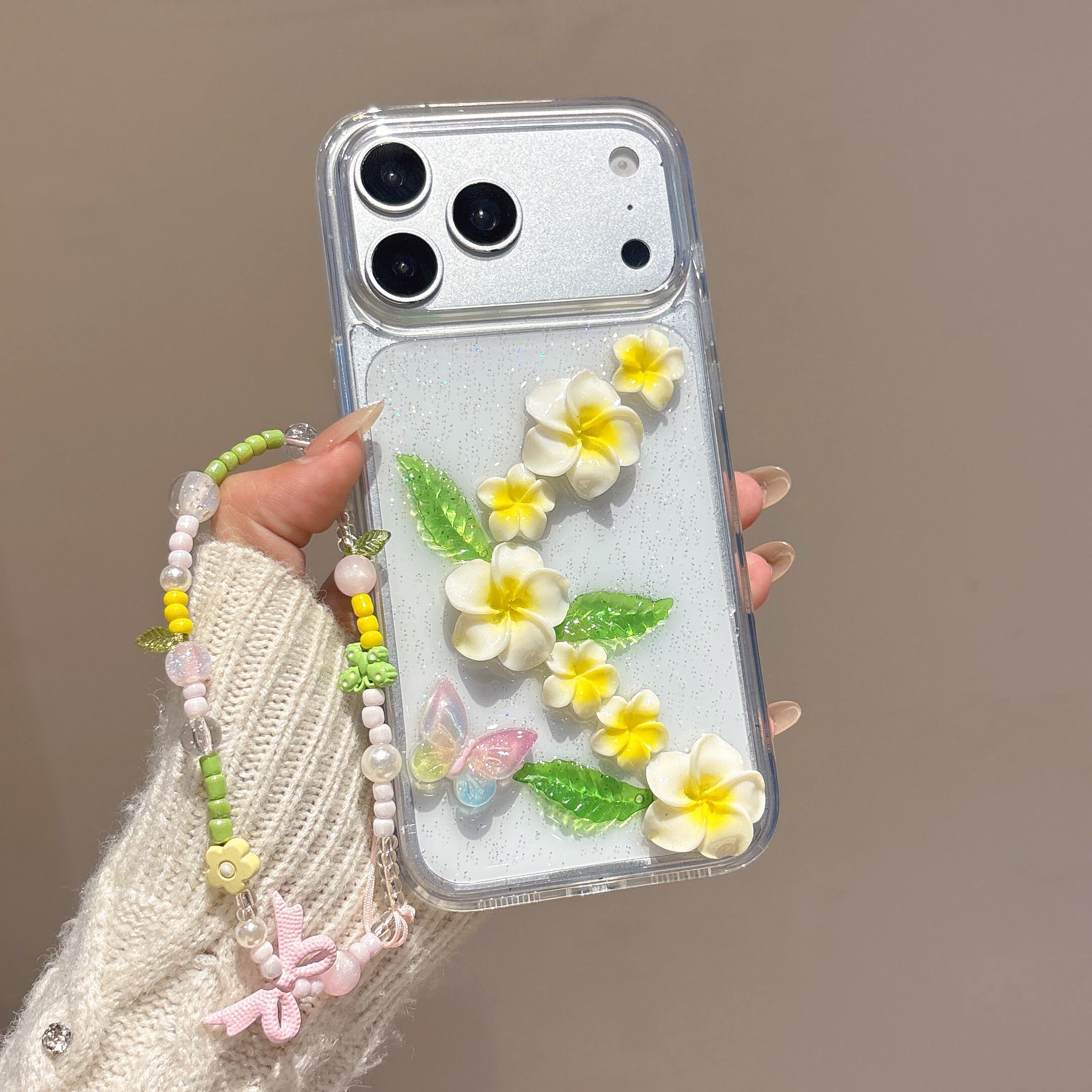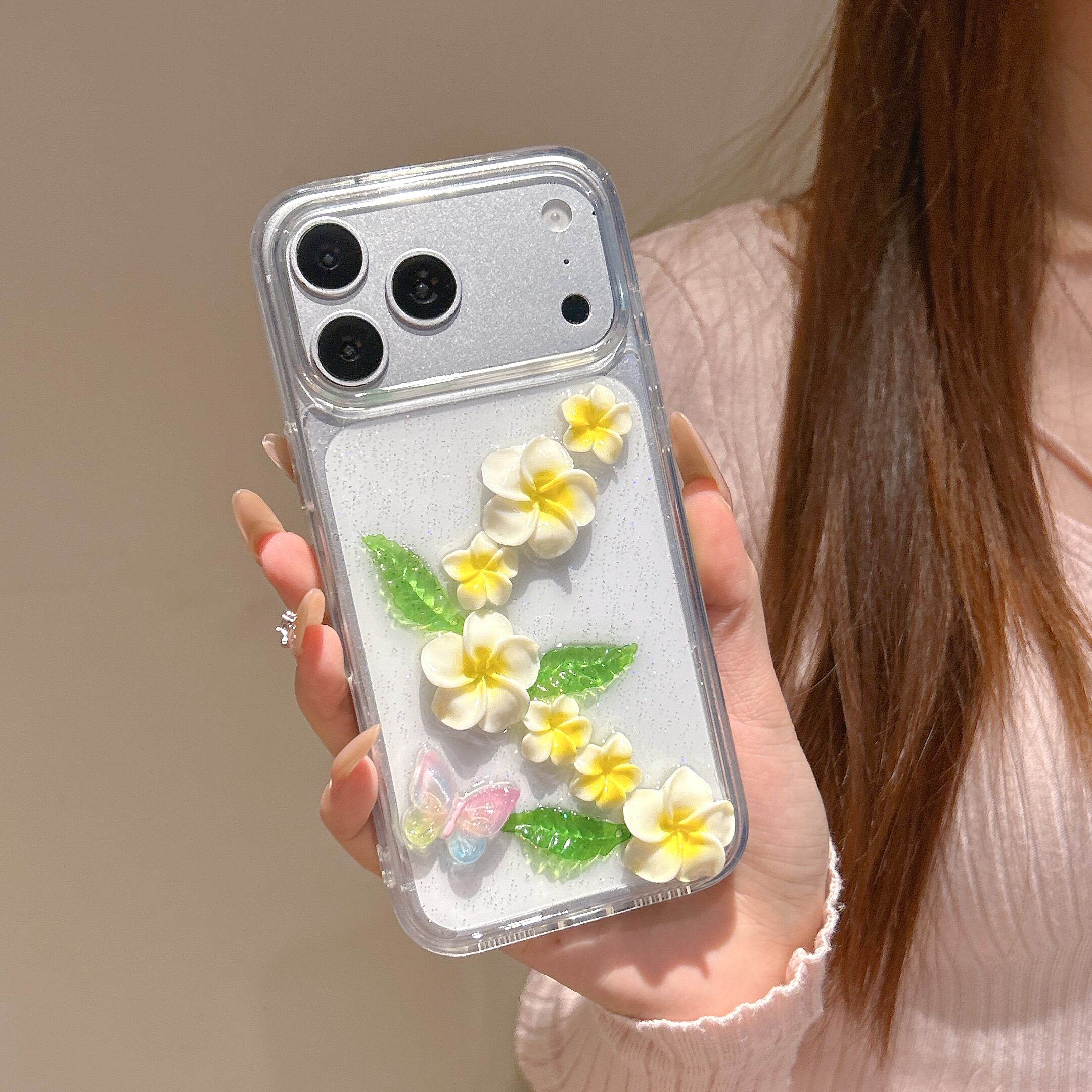 クリアケース iphone 17 16 15 14 13 12 スマホケース 立体 フラワー おしゃれ ストラップ