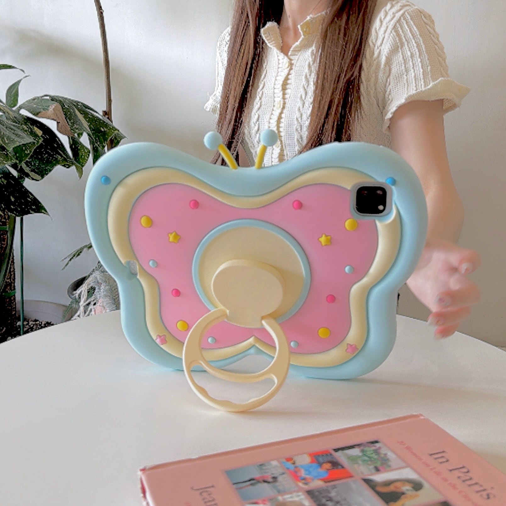 かわいい 360度回転リング付 ipadケース a16 第10/9/8/7世代 シリコン ipad air 第5世代 ipad mini7 ipad pro11 ケース 縦/横置き スタンド機能 蝶々バタフライ
