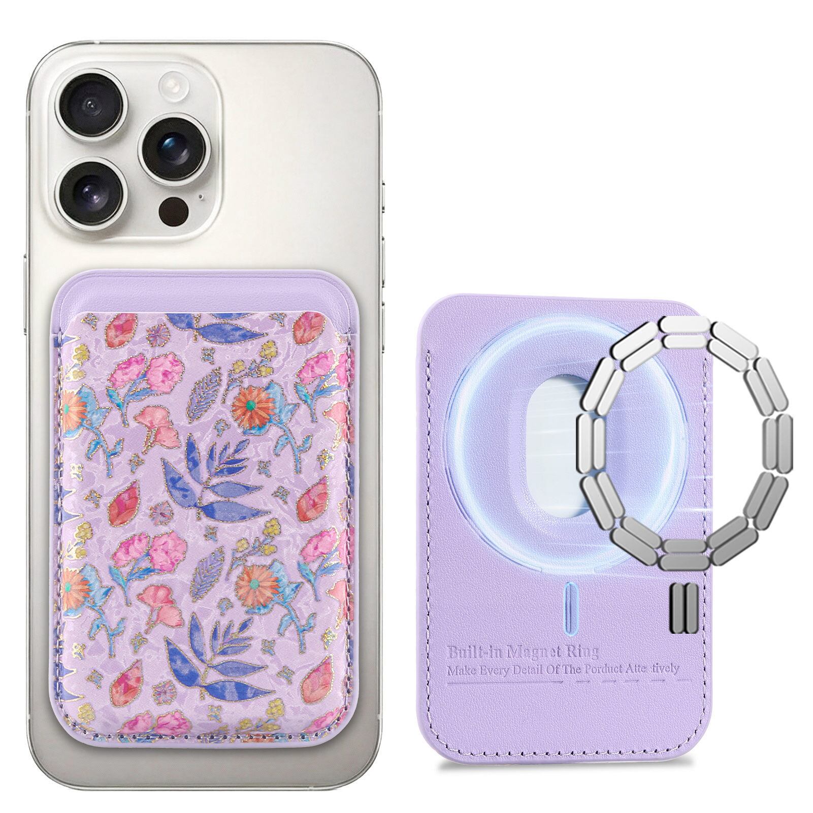 MagSafe対応 カードケース 着脱式 花柄 マグネットカードウォレット カードポケット マグネットリング付き