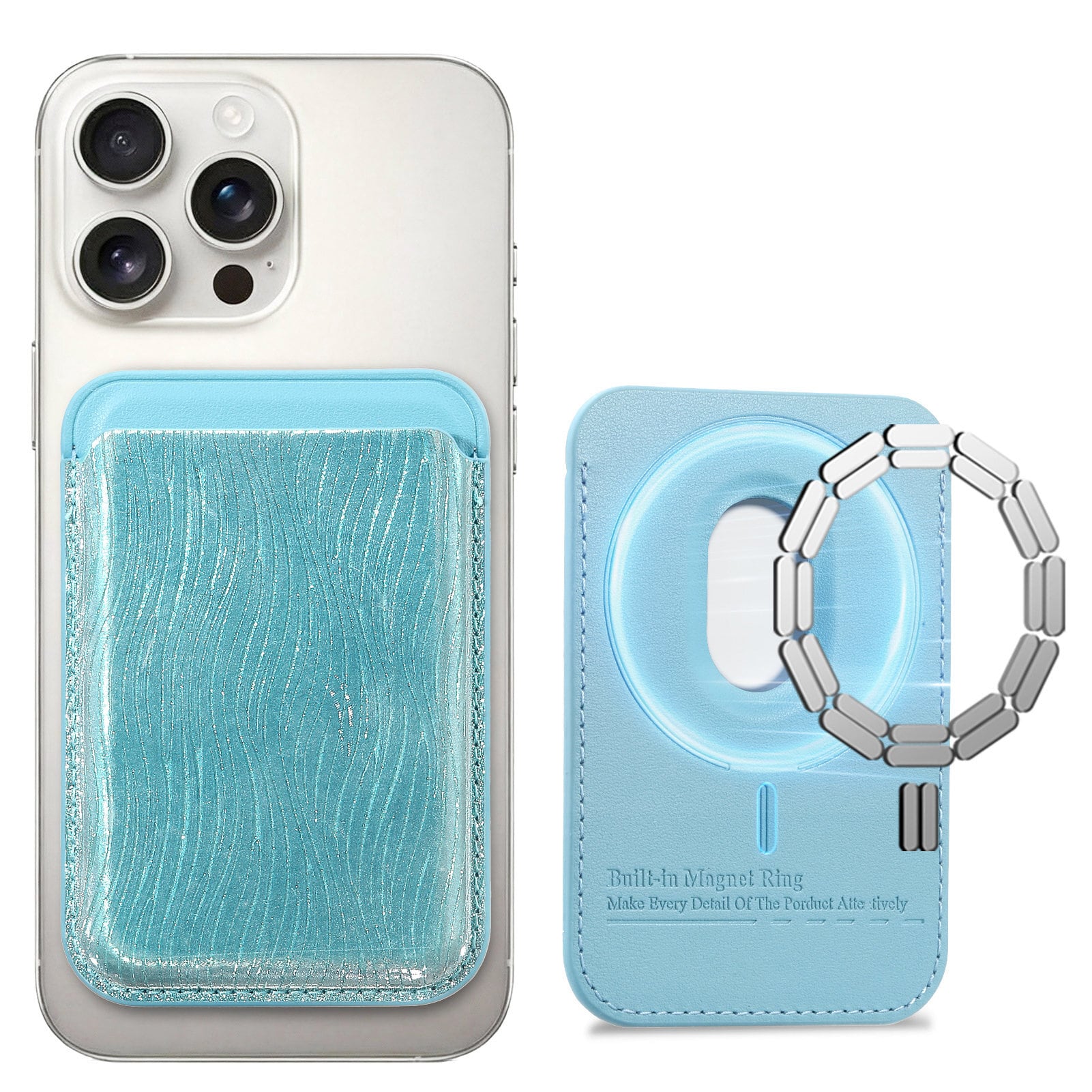 MagSafe対応 カードケース 着脱式 グリッター ウェーブ マグネットカードウォレット カードポケット マグネットリング付き