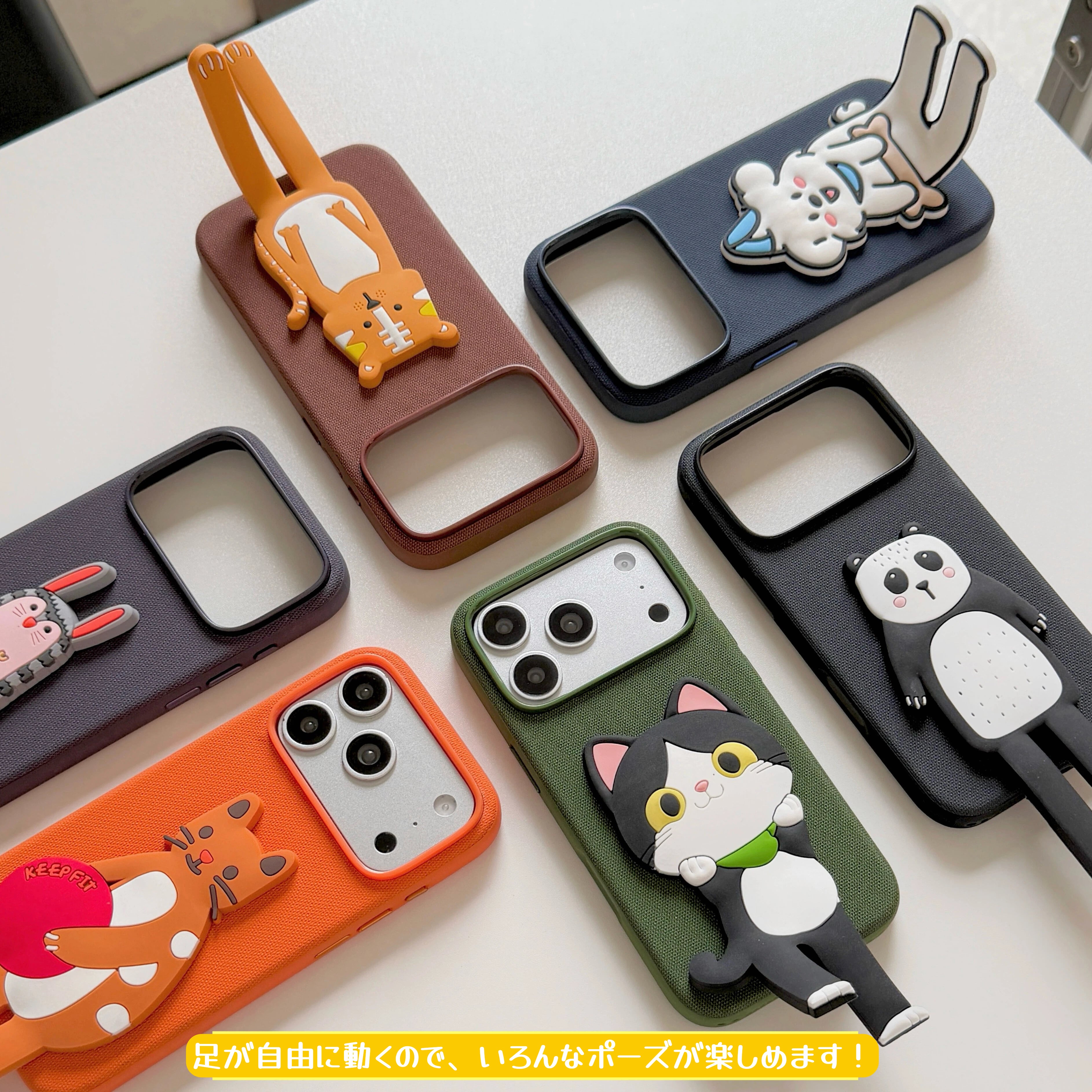 アニマルスタンド iPhone 17 16 15 ケース 耐衝撃 TPU ハイブリッドケース スマホケース 動物 可愛い