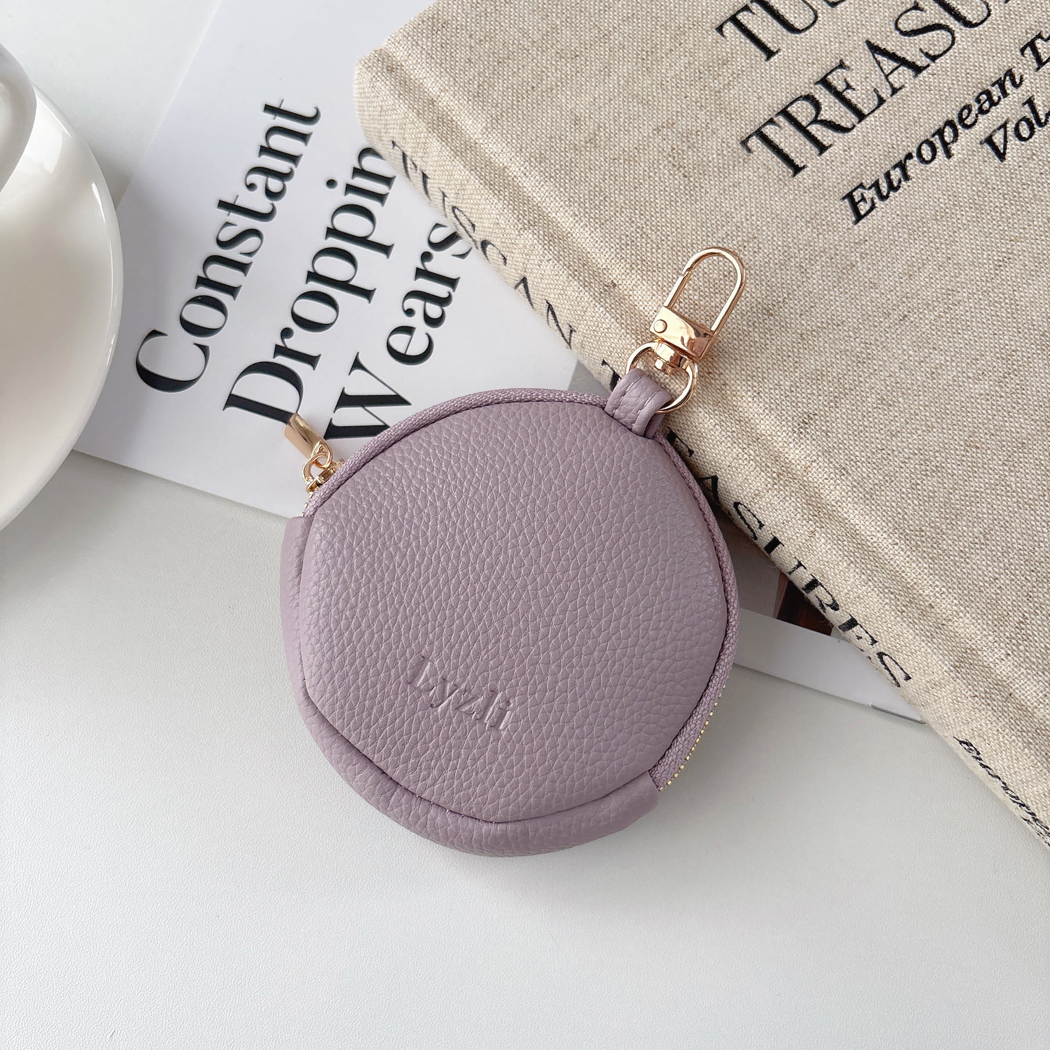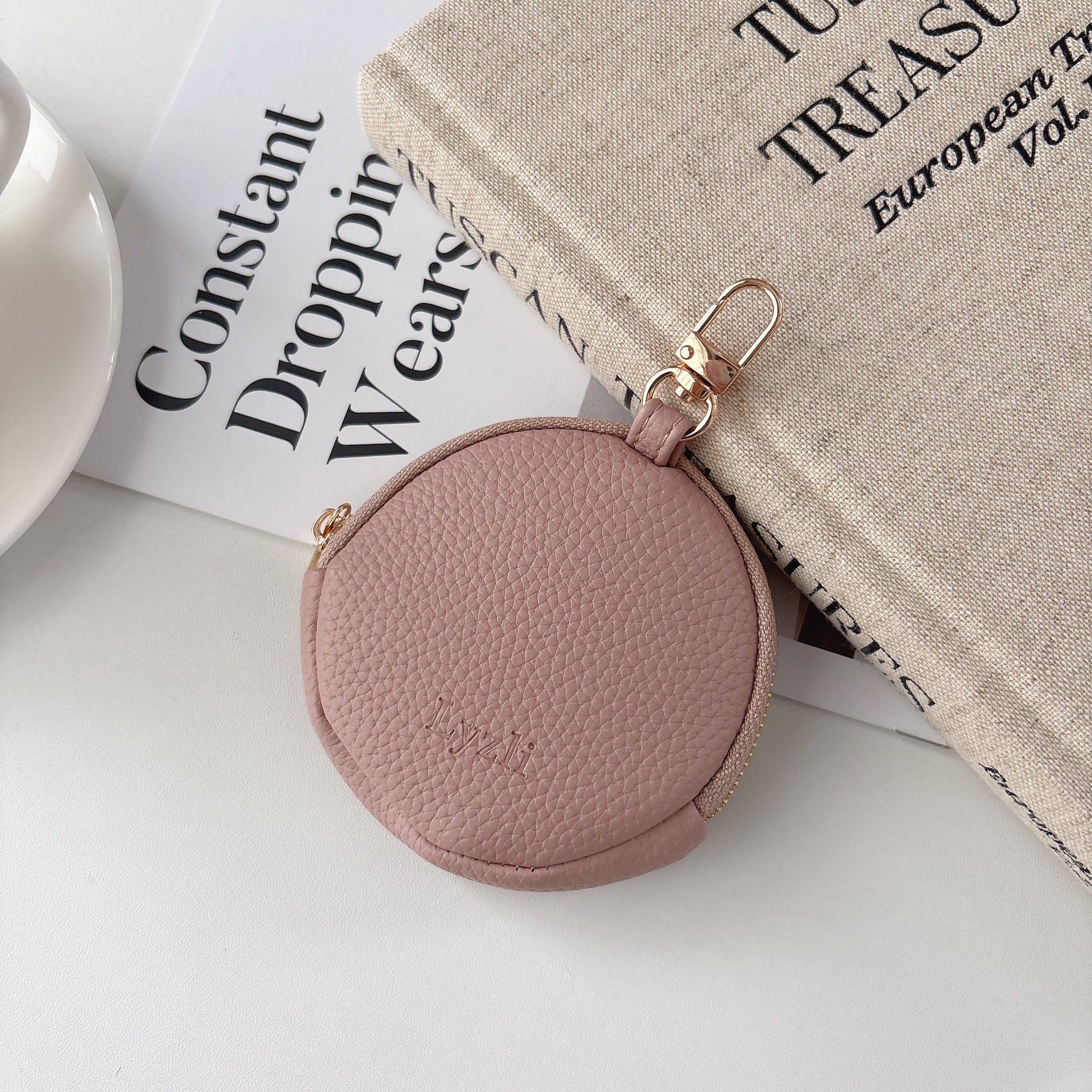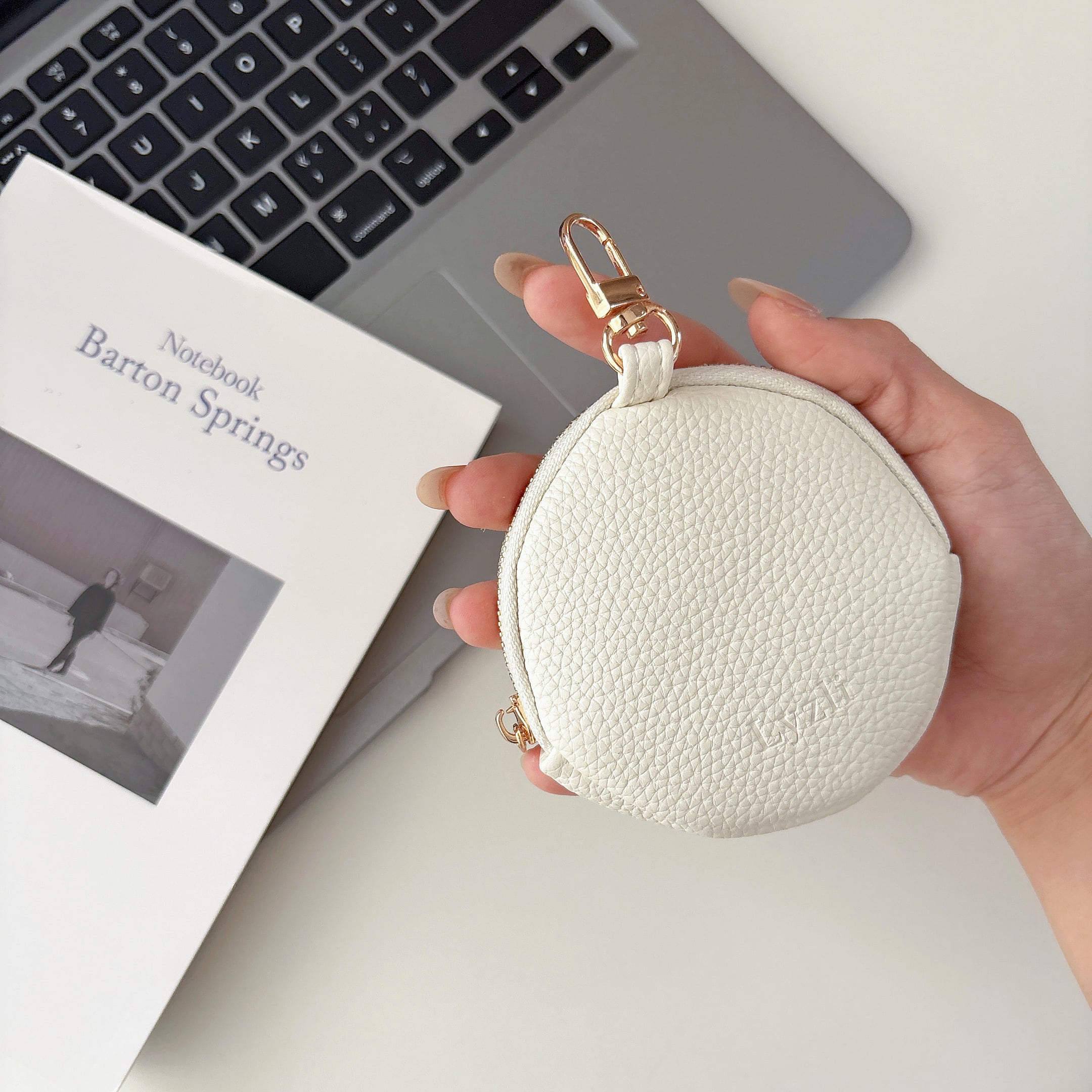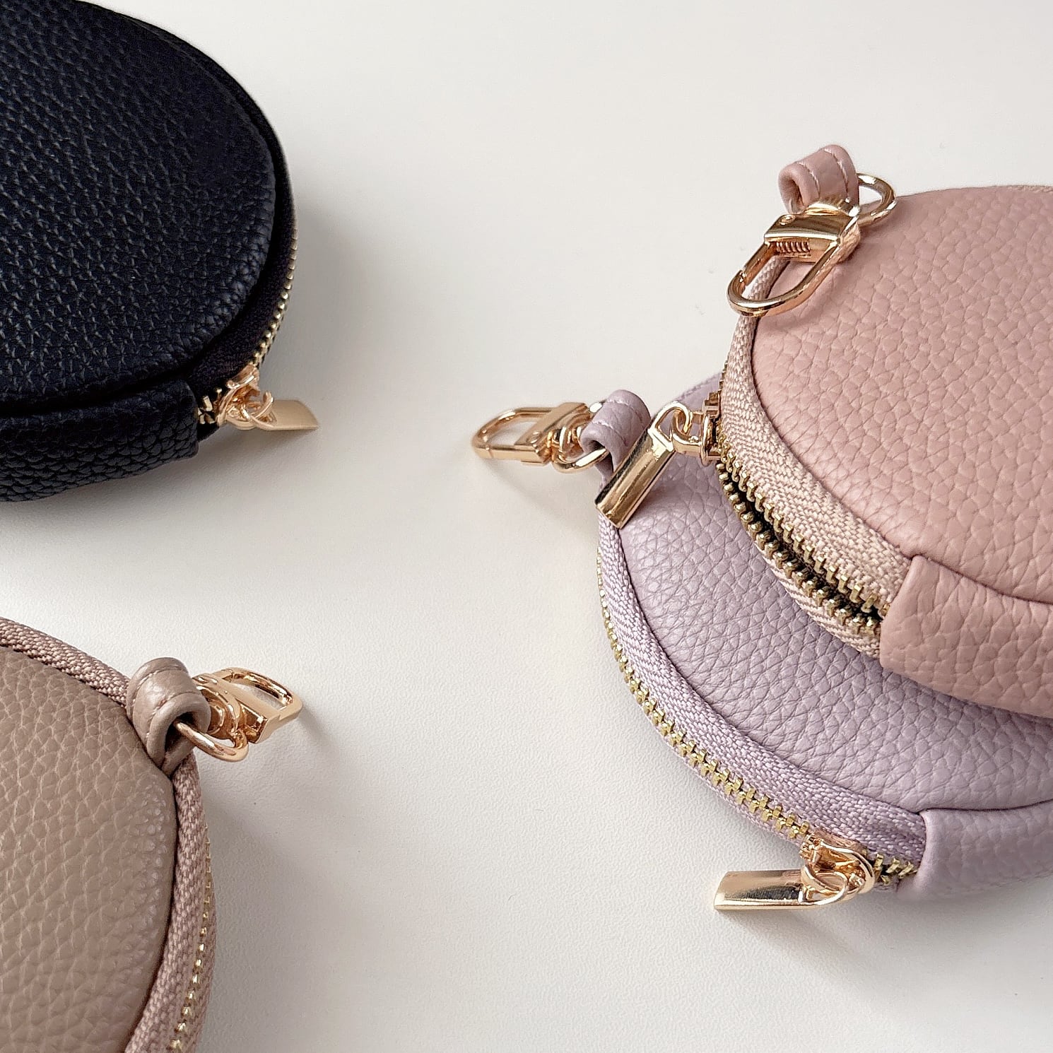 丸型 ミニポーチ くすみカラー 8色 ナスカン付き 可愛い 小銭入れ コインケース 小物入れ スマートキー AirPods リップ収納 ラウンドファスナー