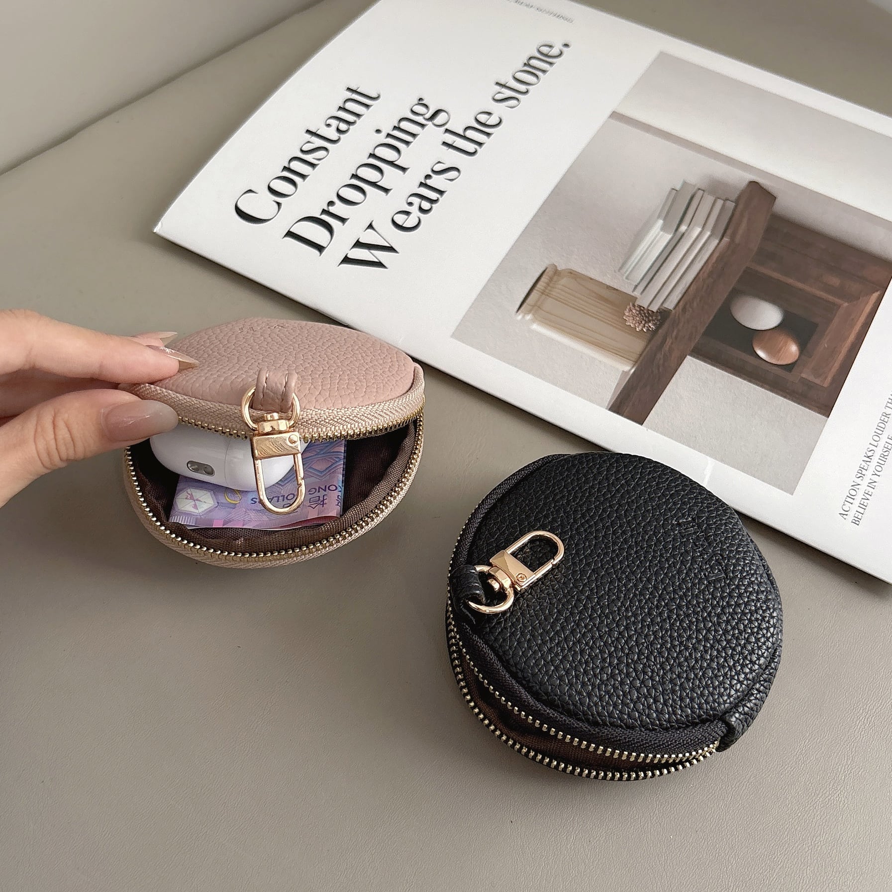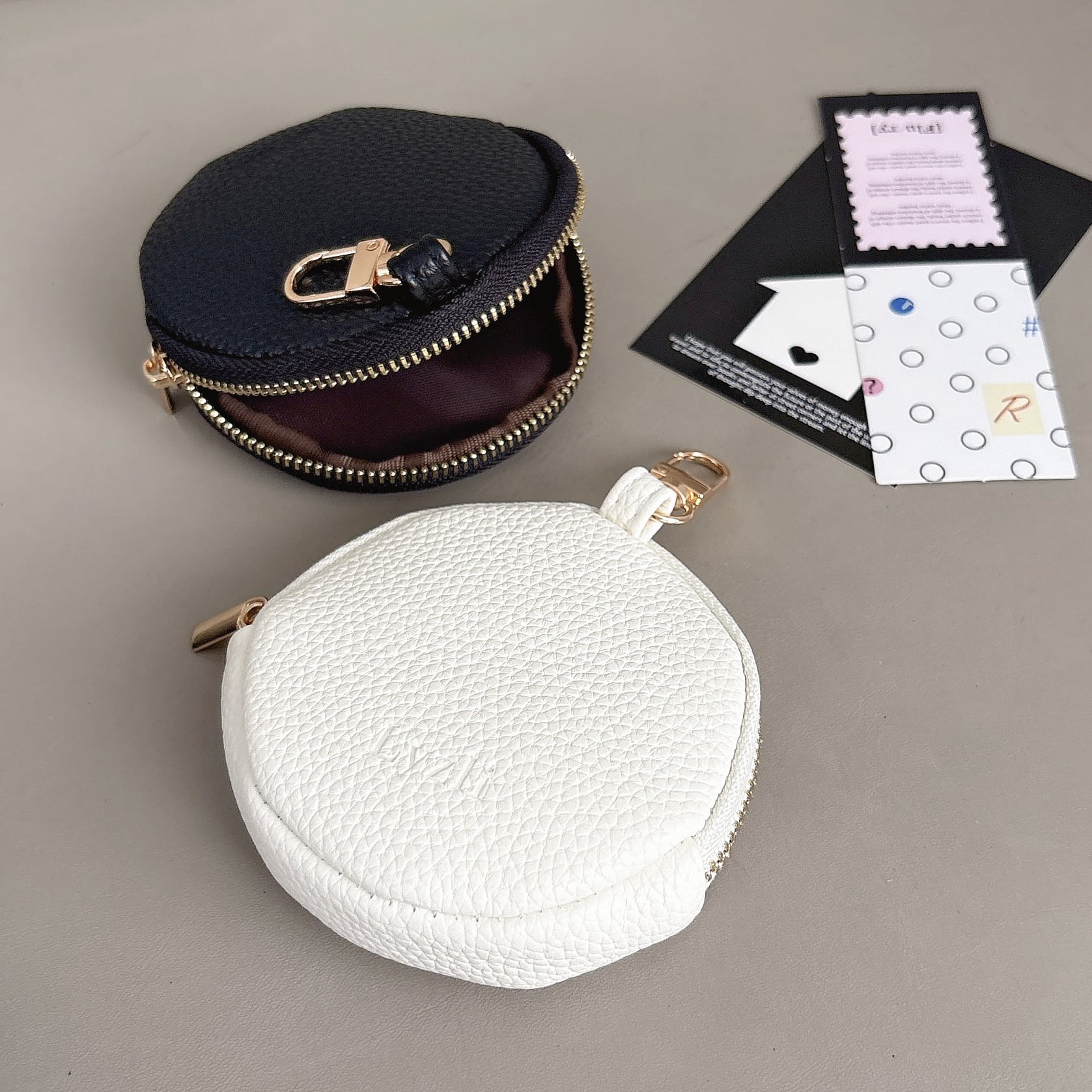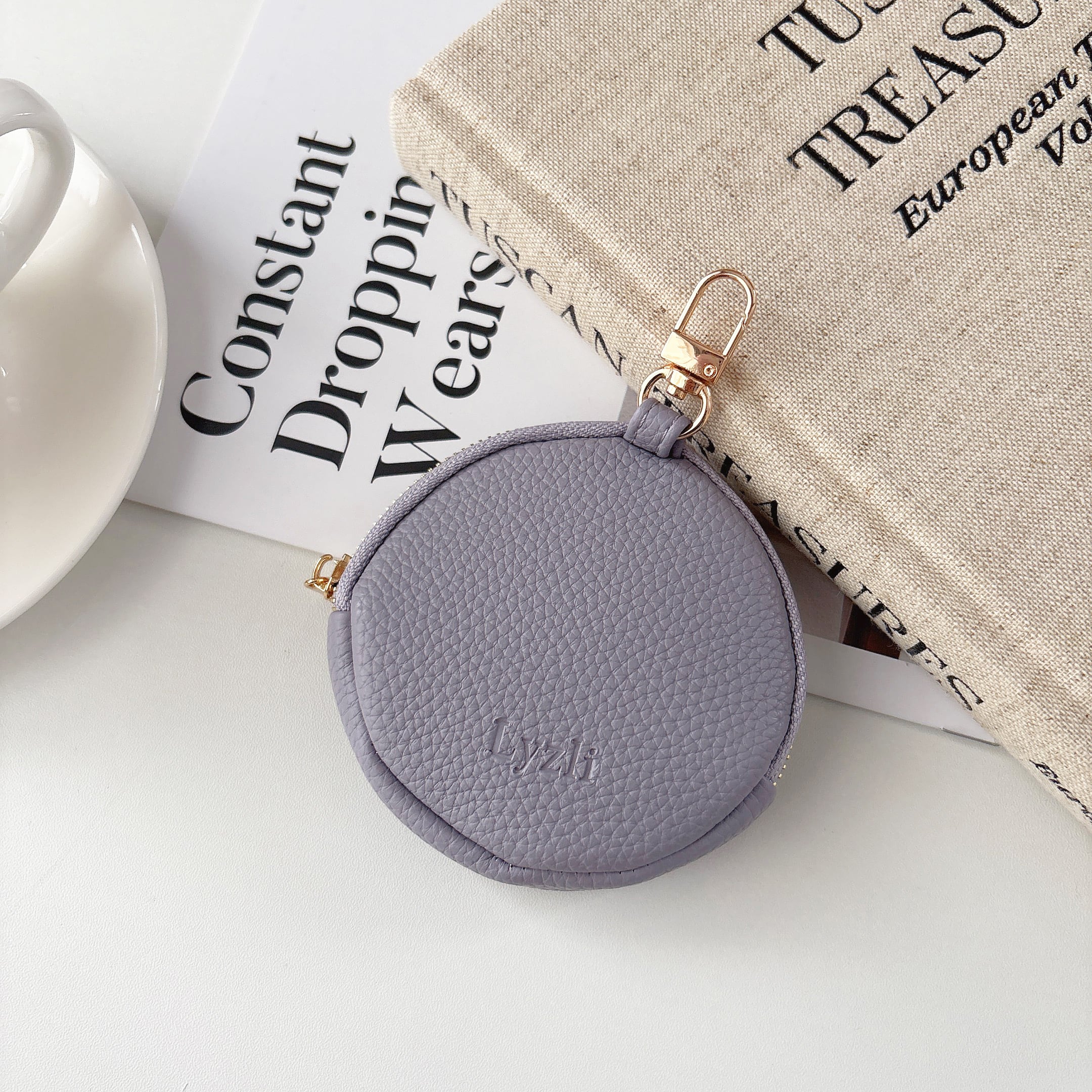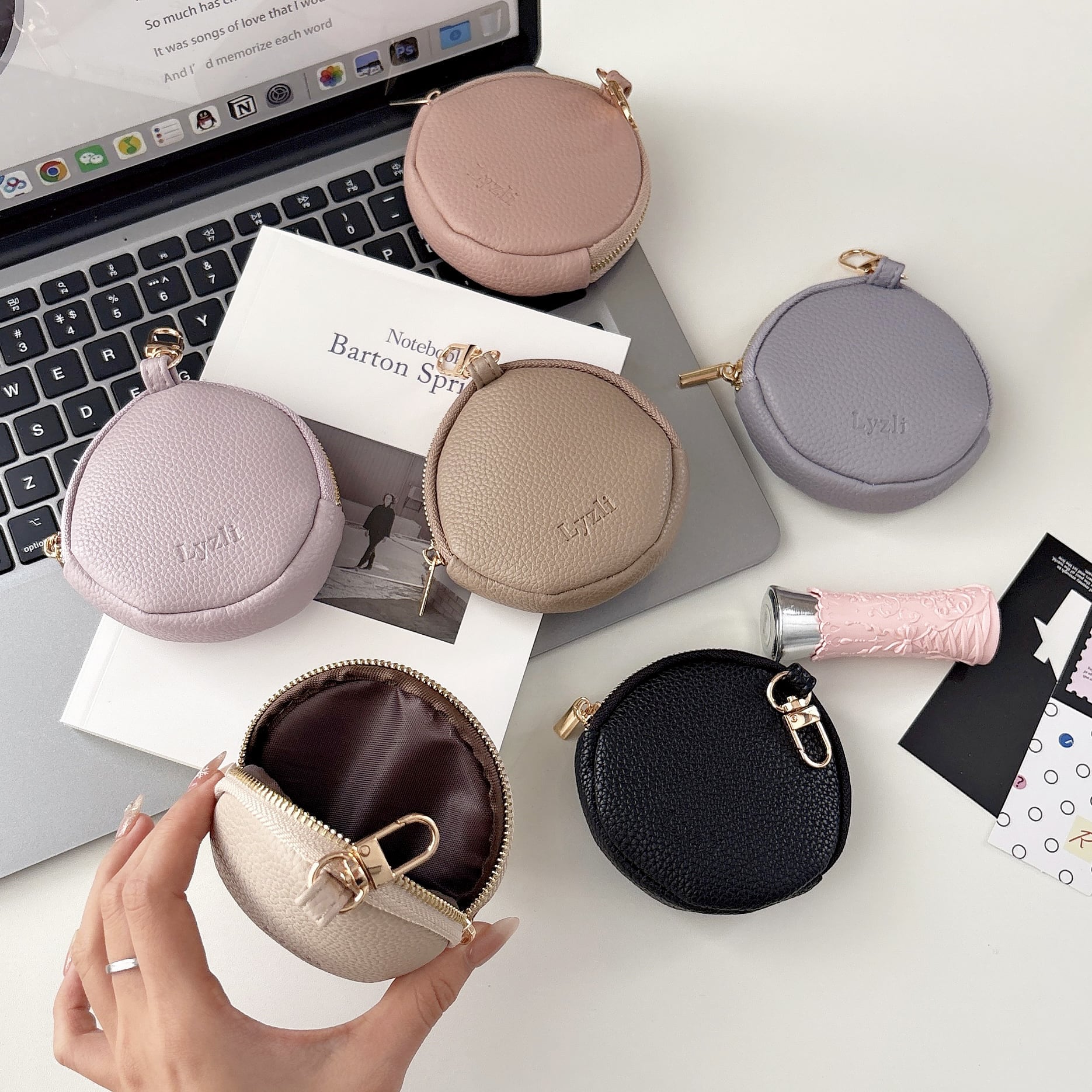 丸型 ミニポーチ くすみカラー 8色 ナスカン付き 可愛い 小銭入れ コインケース 小物入れ スマートキー AirPods リップ収納 ラウンドファスナー