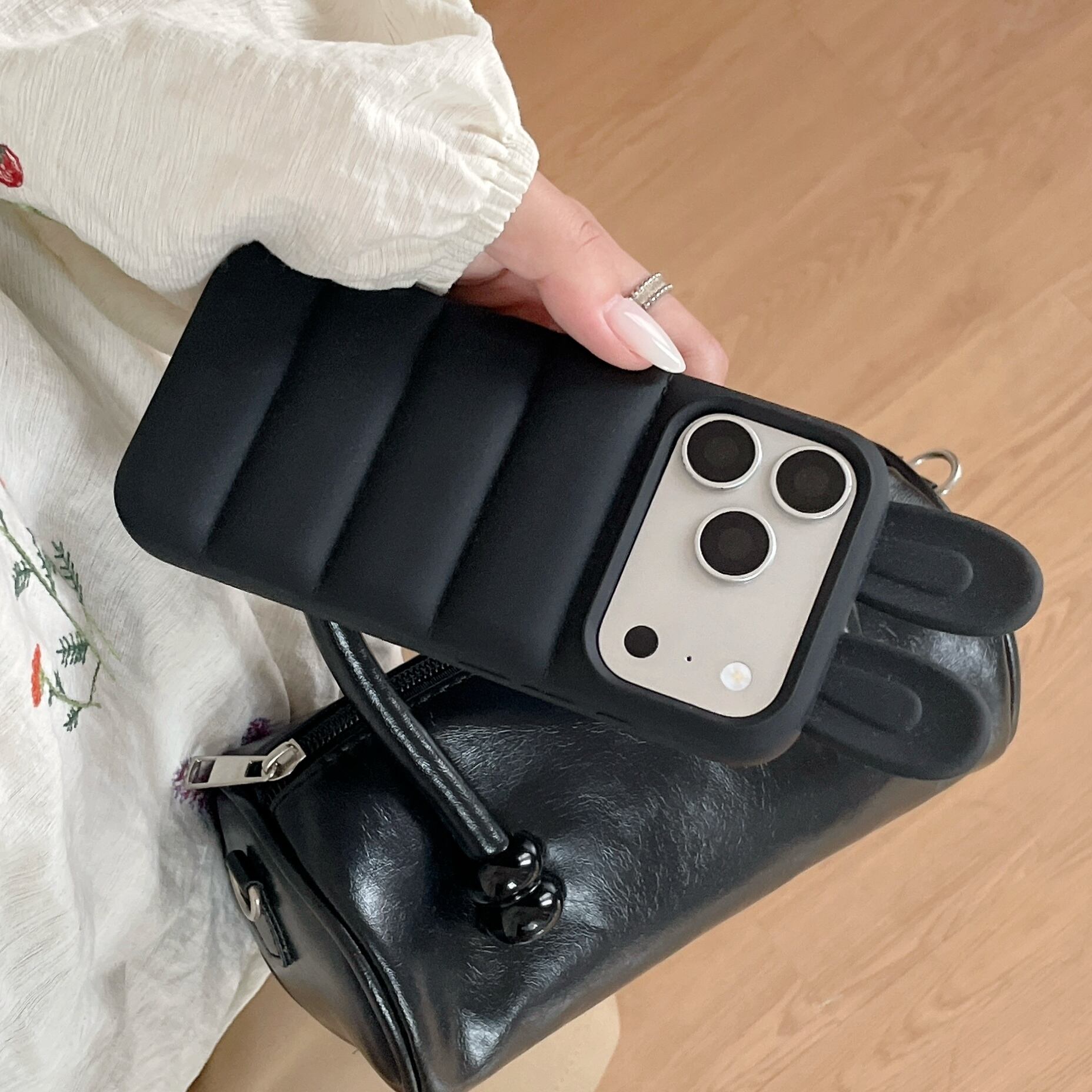 背面のキルティング状の凹凸は、手に持った際の滑り止めとしての役割も果たします。